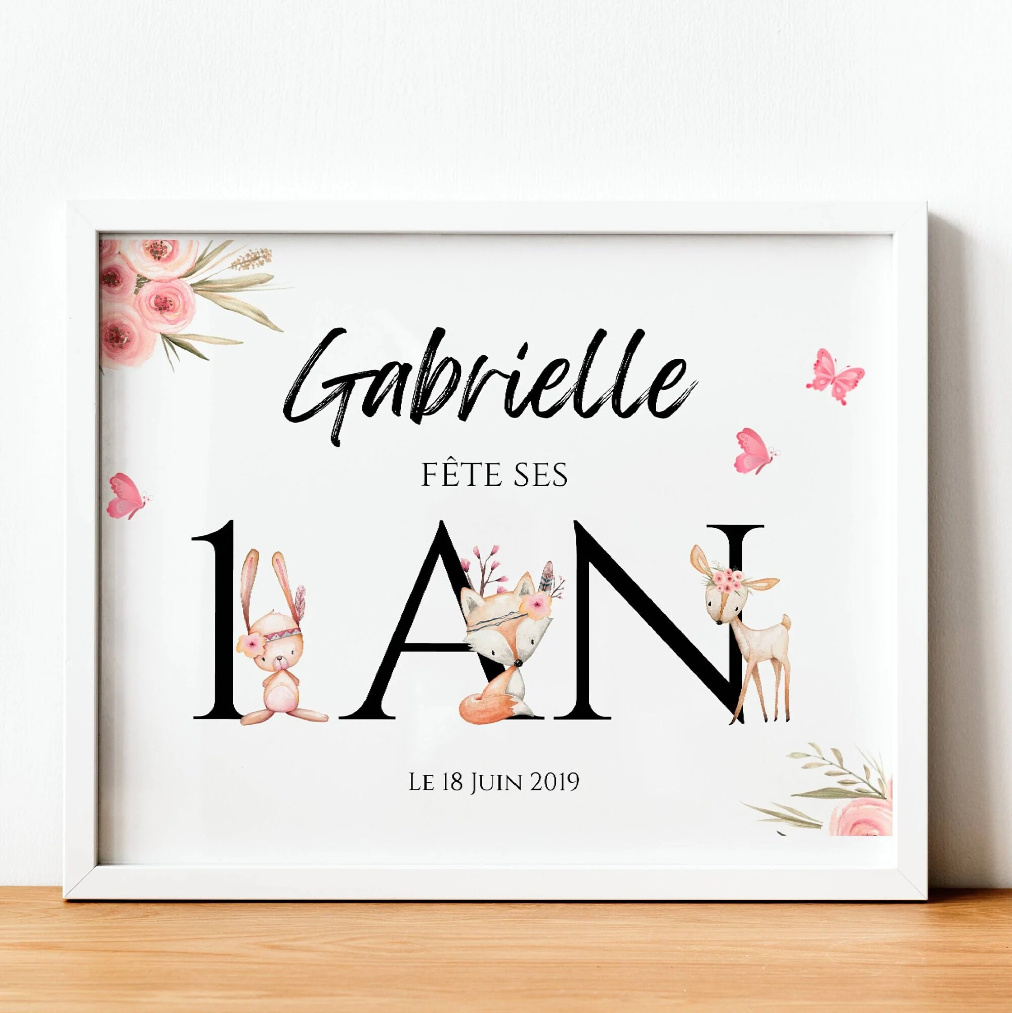 🎉 Affiche Bienvenue Personnalisée pour Anniversaire Enfant – Thème Animaux de la Forêt 🦊🌸