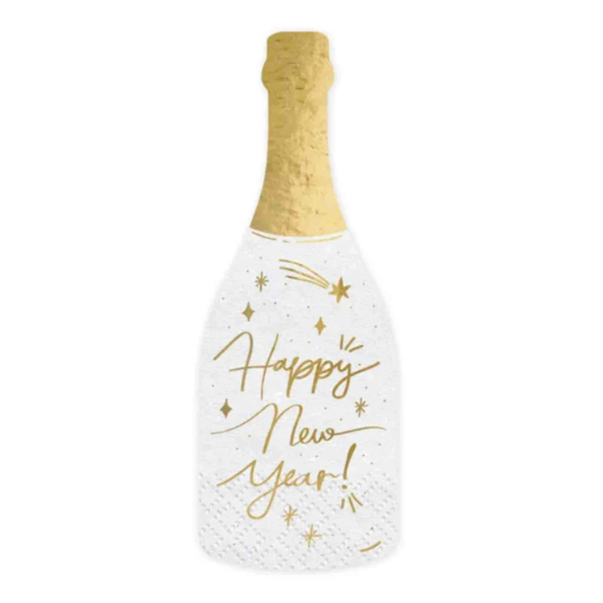 20 serviettes en forme de bouteille de Champagne Happy New Year