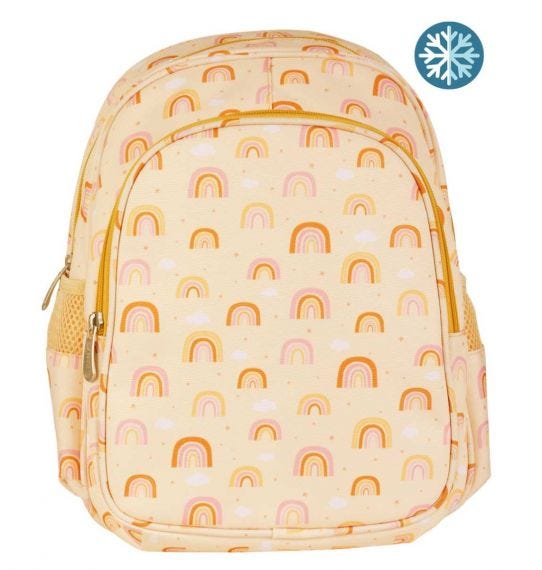 Votre petite fille se prépare à découvrir l‘école maternelle et vous voulez être sûr qu’elle sera prête avec un sac à dos de qualité pour faire ses premiers pas dans son école? Alors, faites lui plaisir et offrez lui ce joli petit bagage avec ses illustrations d’arcs en ciel oranges!