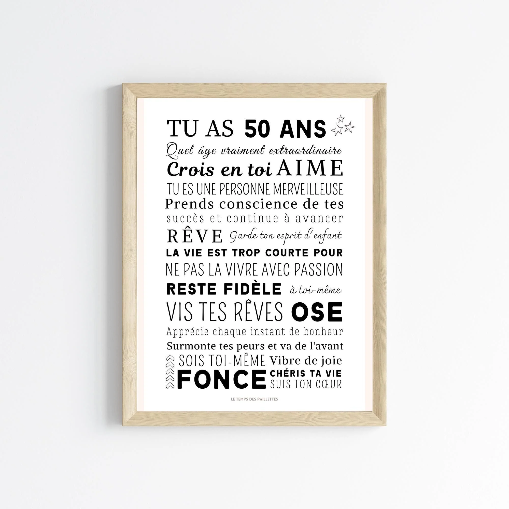 Affiche 50 ans – Carte 50 ème anniversaire – Décoration de fête d’anniversaire par Le Temps des Paillettes