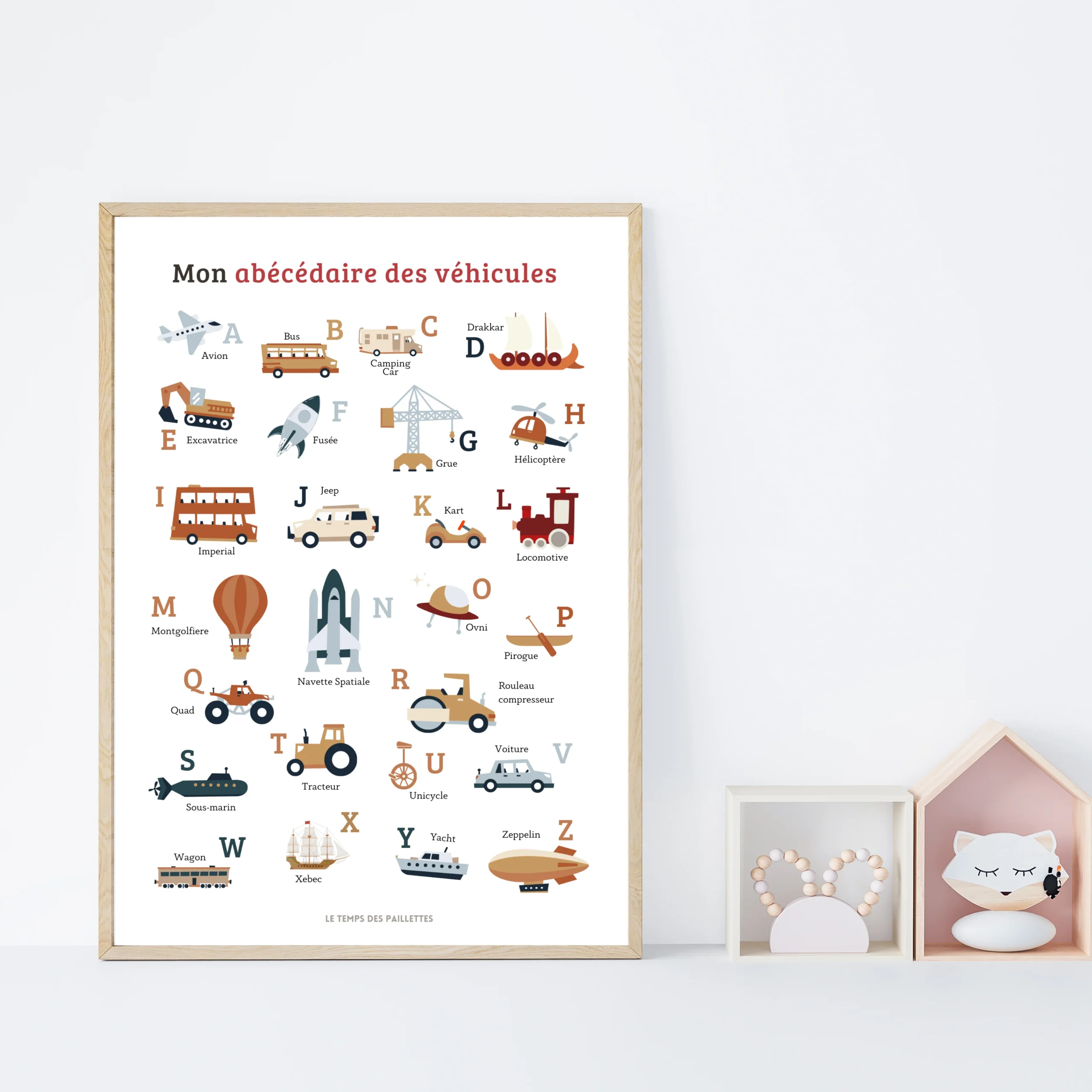 ❤️ Découvrez cette magnifique affiche abécédaire des véhicules en francais pour une jolie décoration de chambre d’enfant.