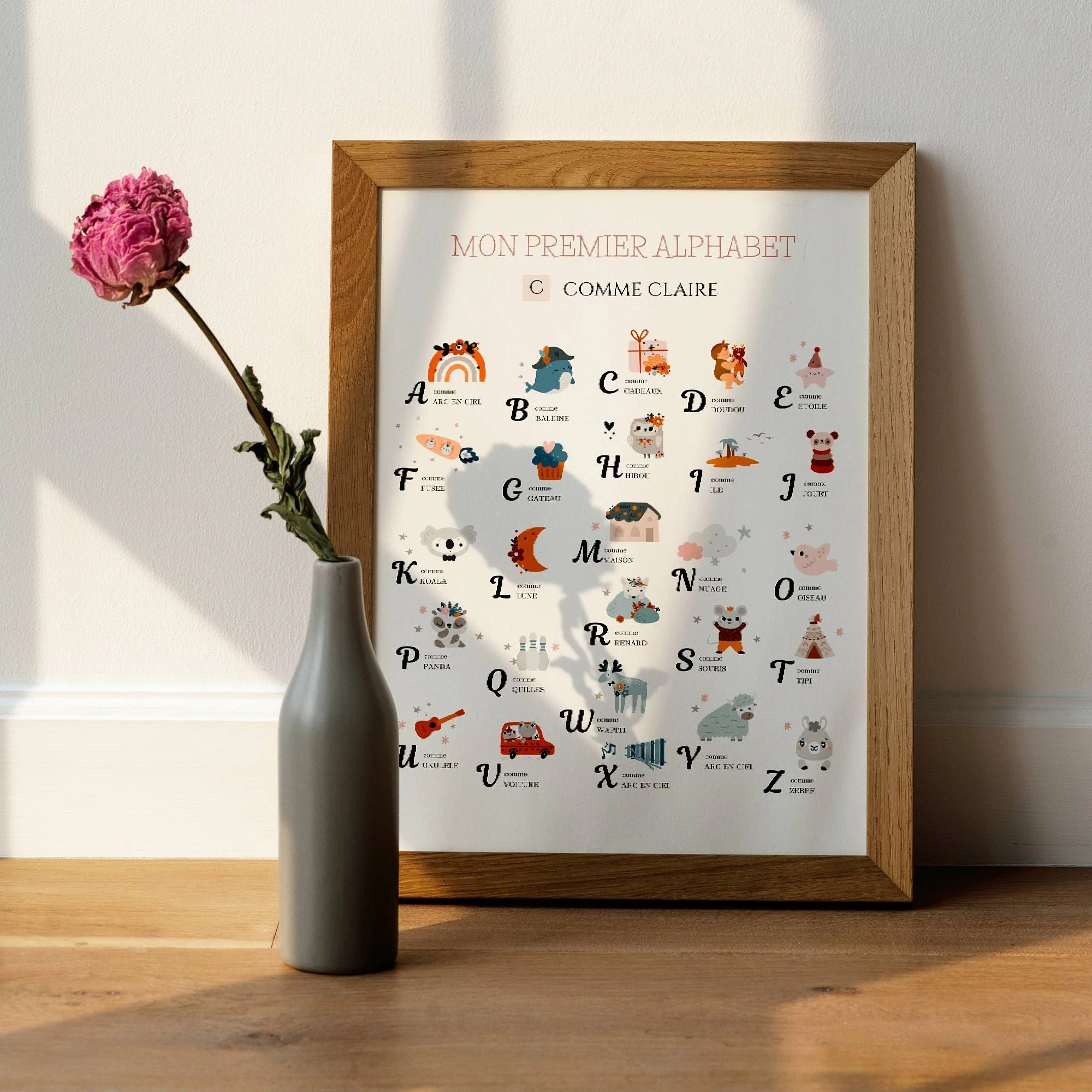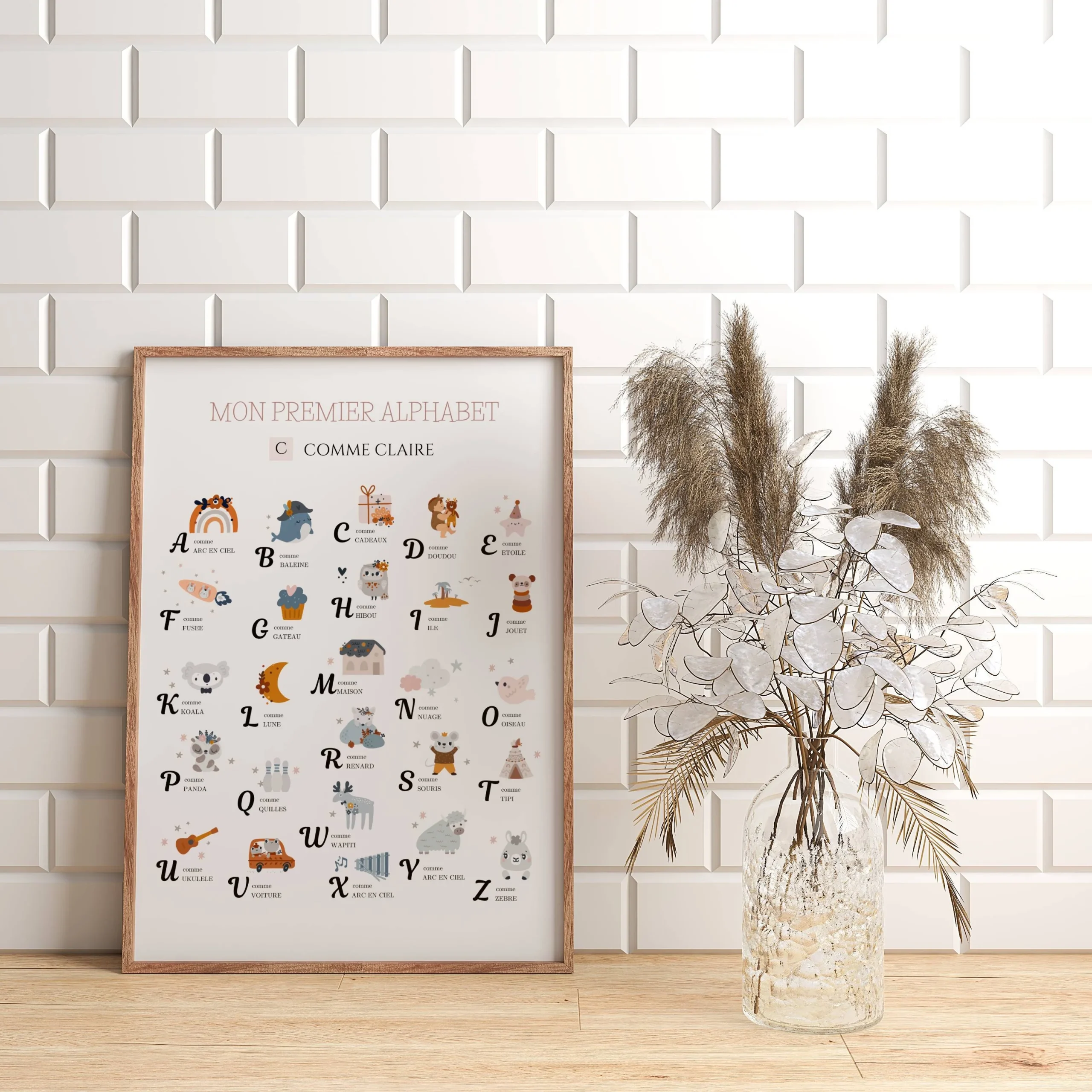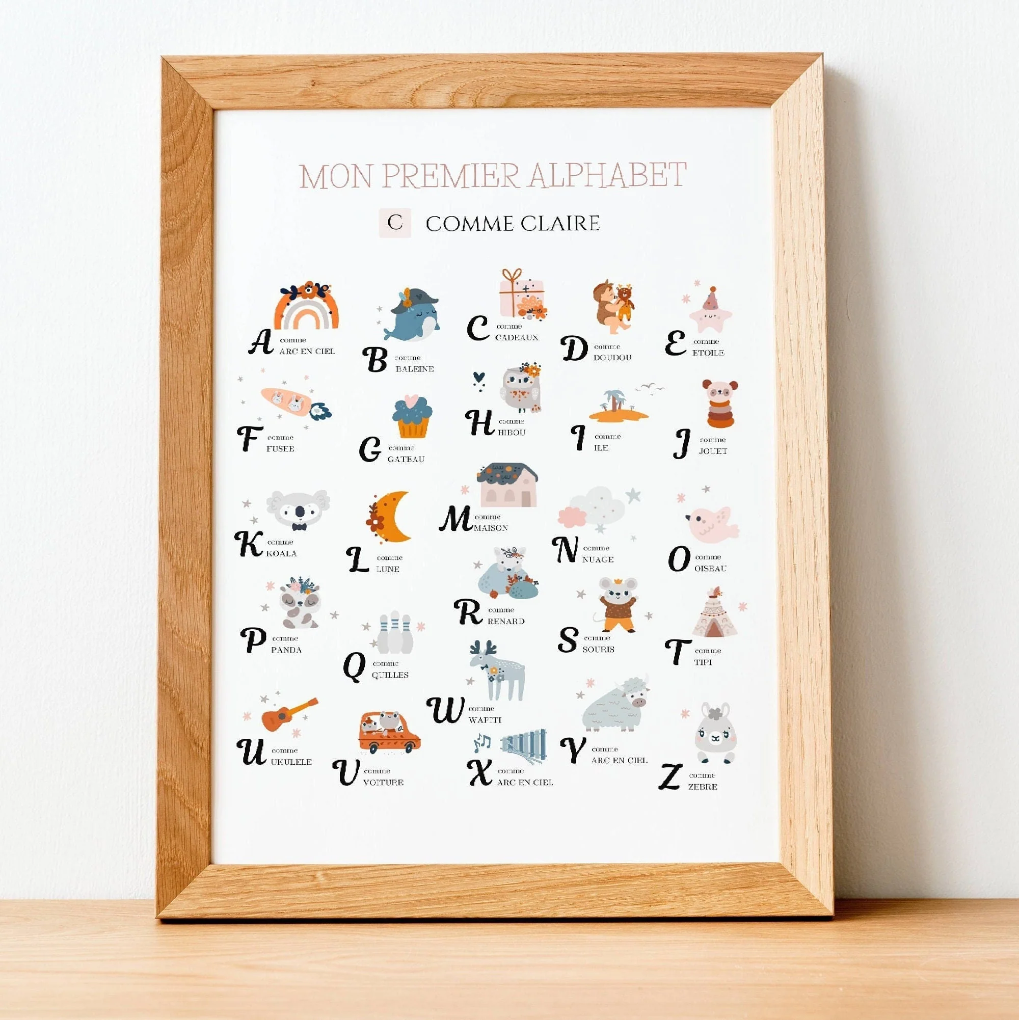 Affiche Alphabet Abécédaire personnalisable prénom- Chambre fille garçon – Illustration chambre enfant bébé par Le Temps des Paillettes