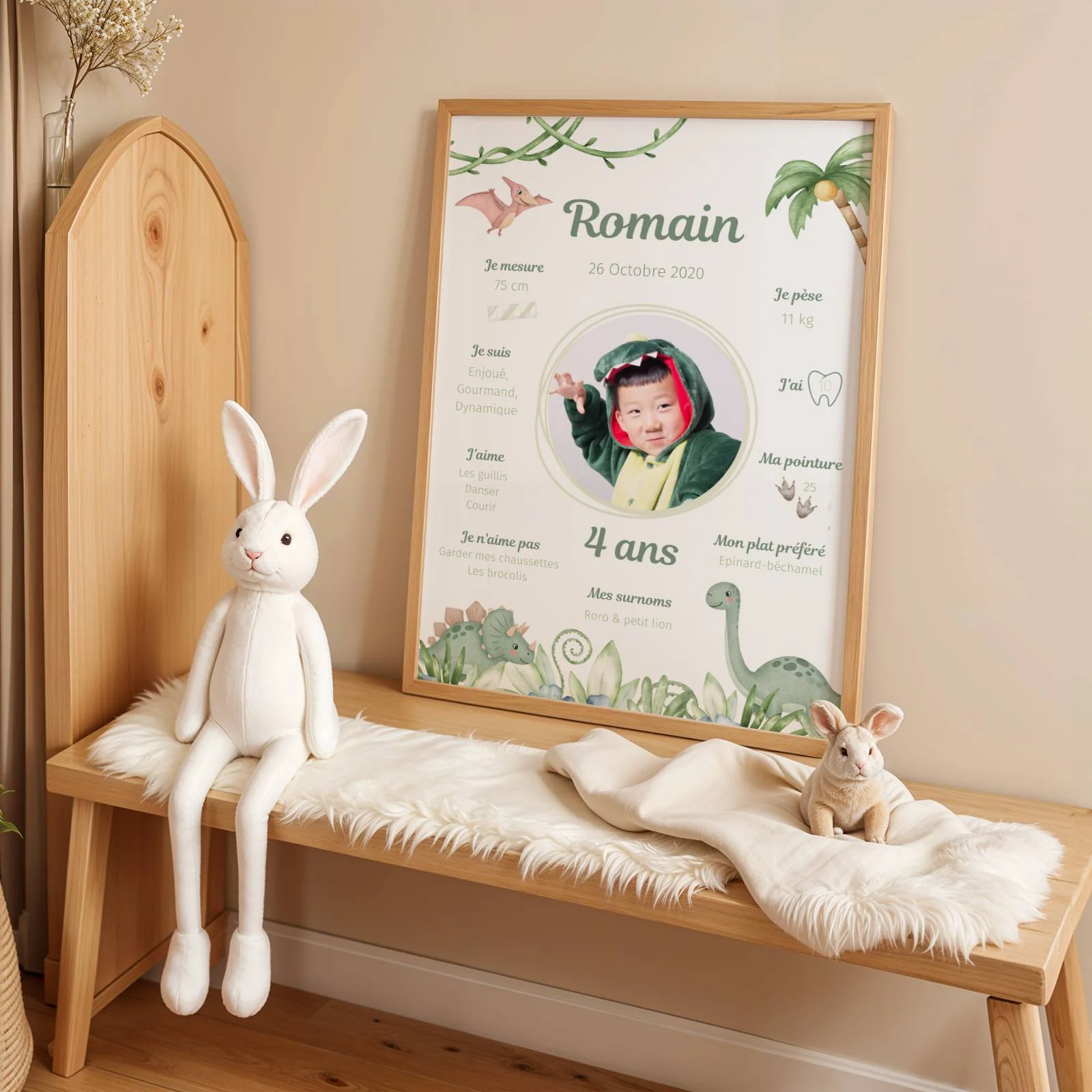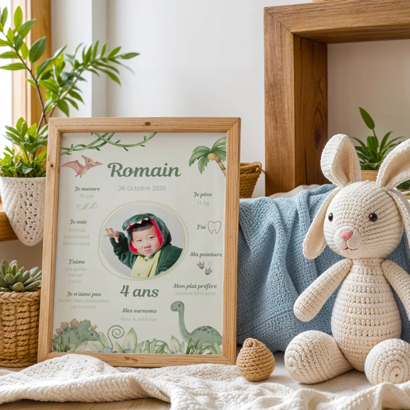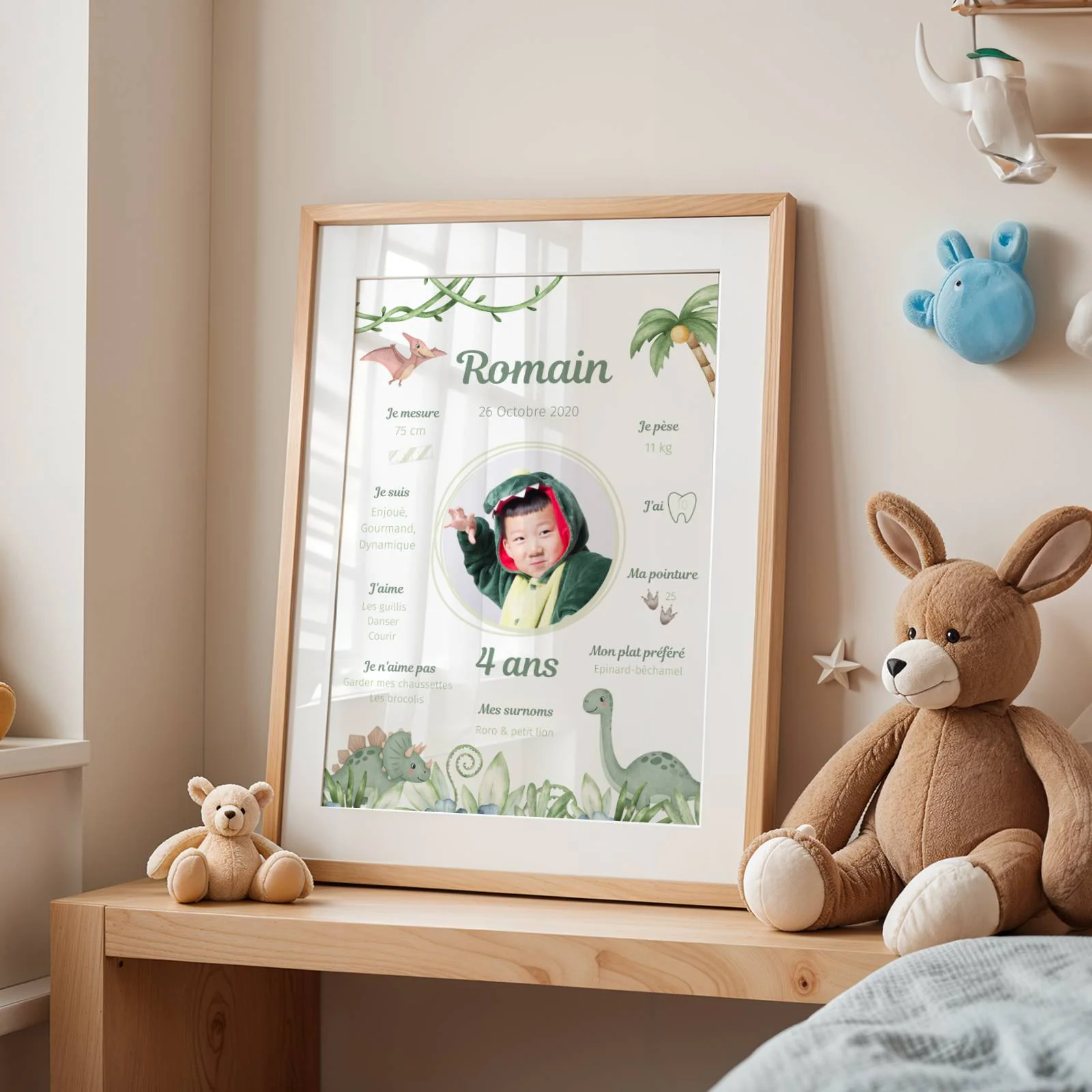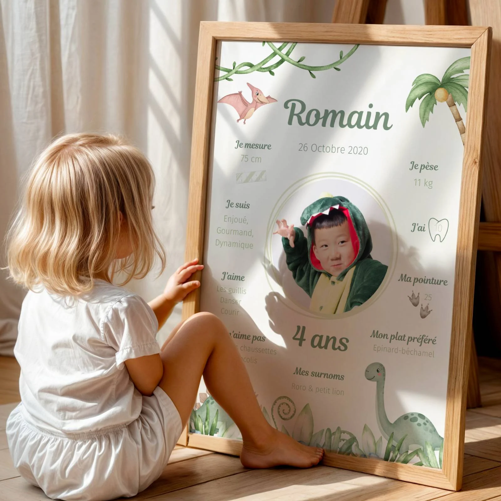 Offrez un cadeau d’anniversaire personnalisé avec cette affiche anniversaire thème dinosaure , parfaite pour célébrer un 1er anniversaire, un baptême, ou tout simplement pour décorer la table d’anniversaire et garder un souvenir inoubliable.