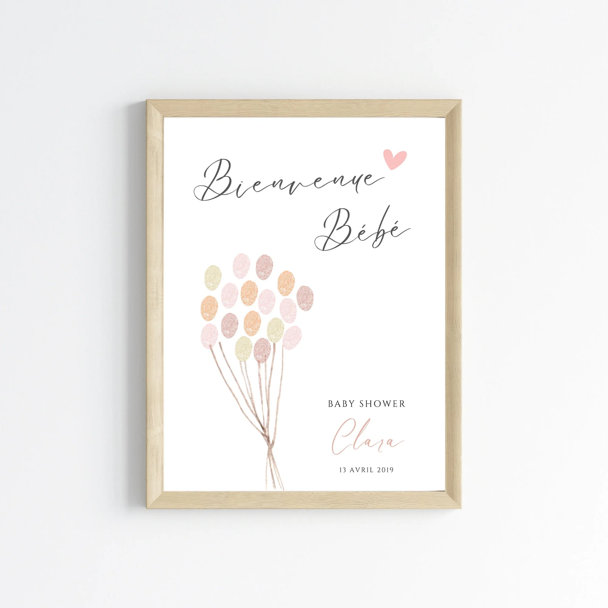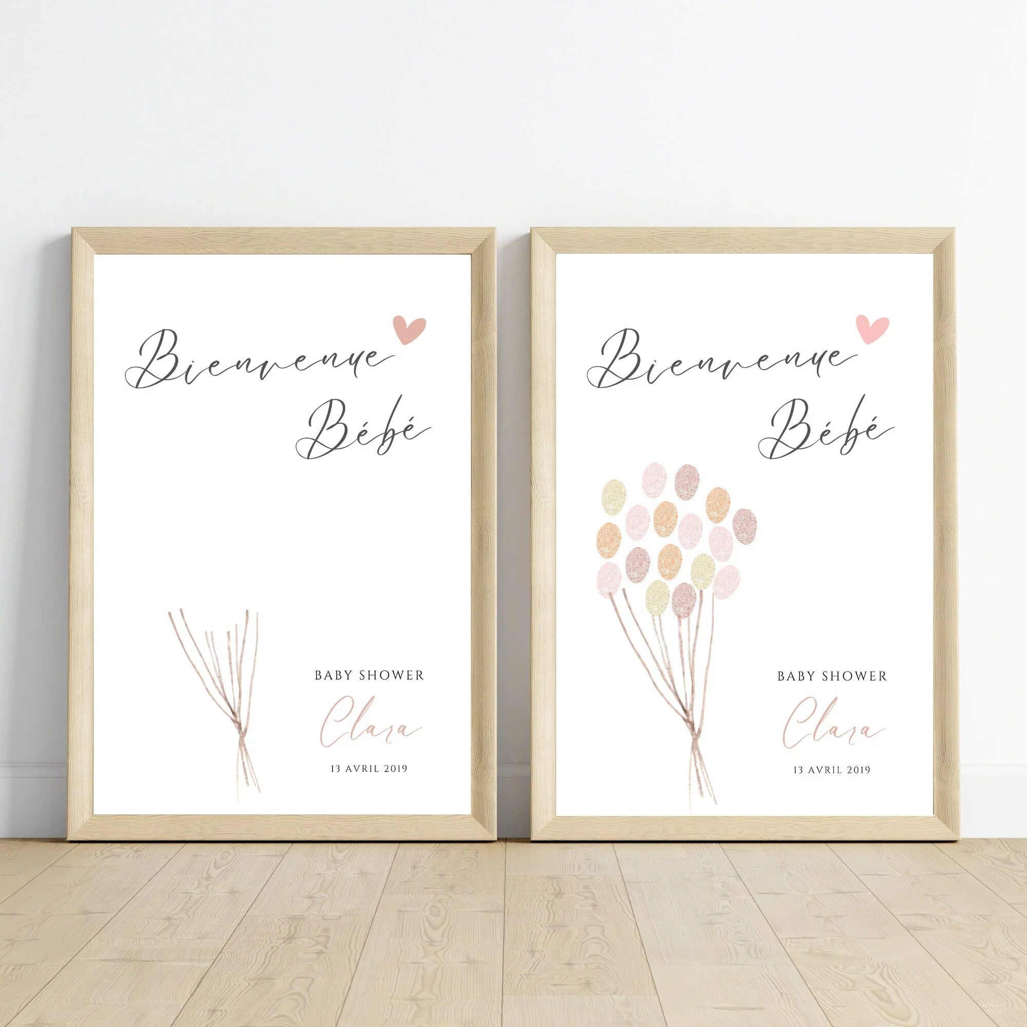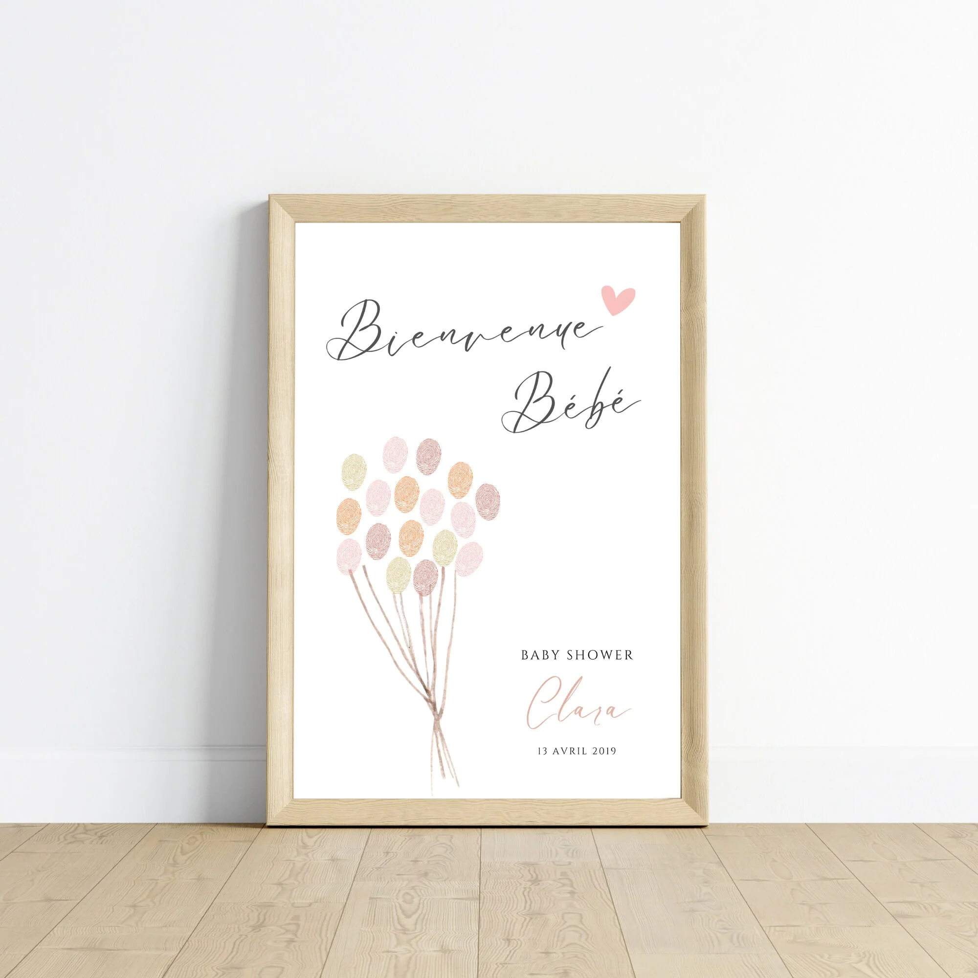 Affiche arbre à empreintes baby shower ballon – Déco anniversaire baptême personnalisée fille rose par le Temps des Paillettes