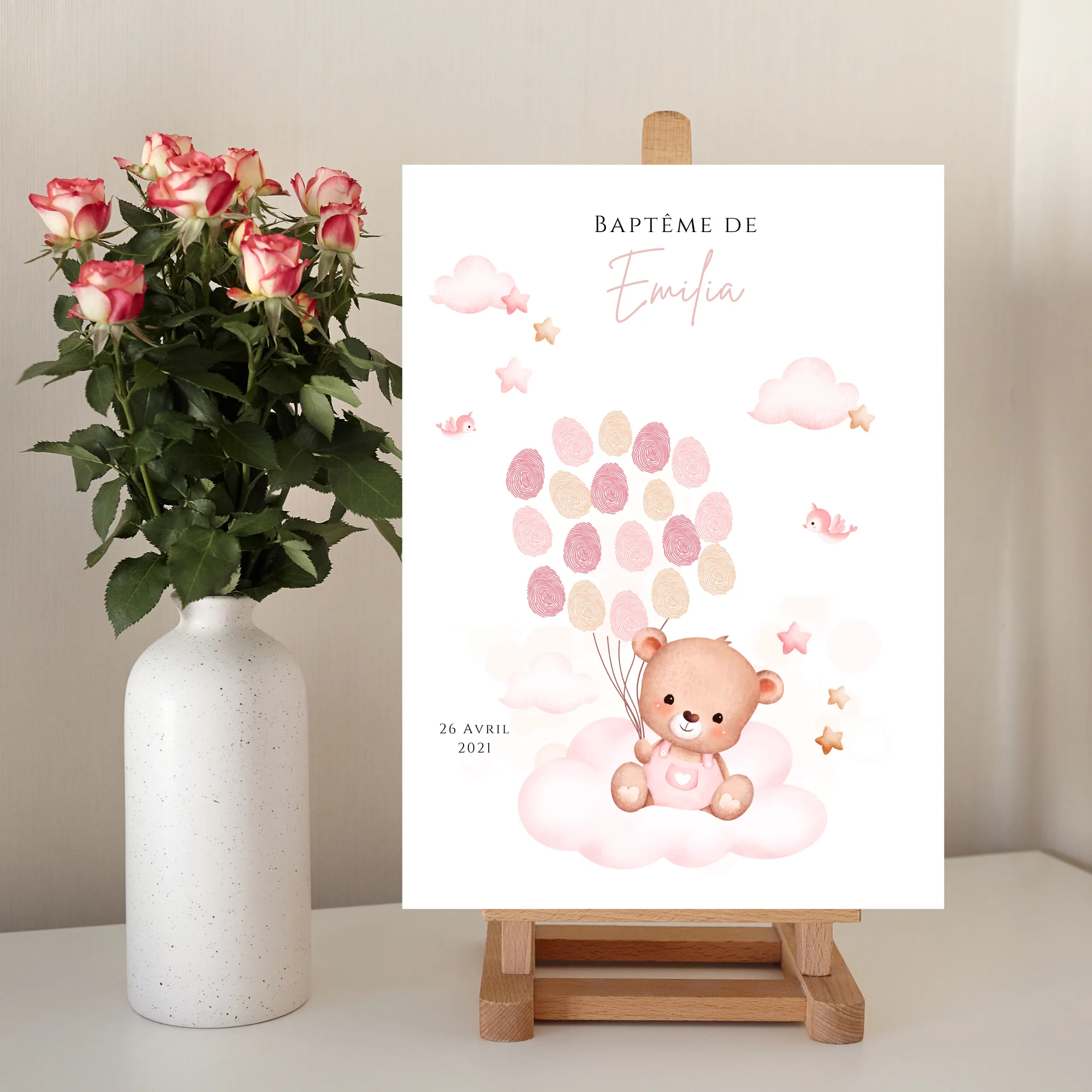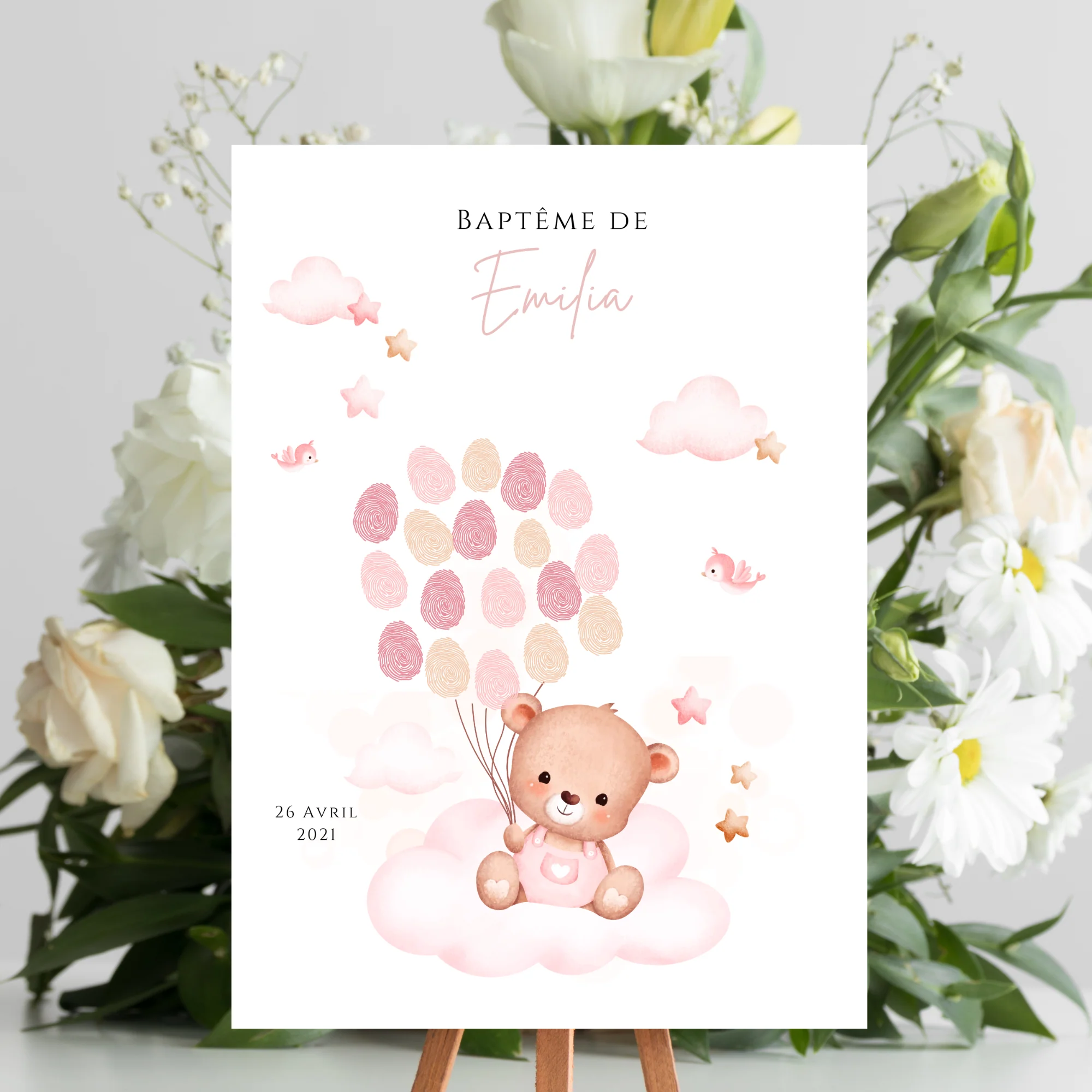 ❤️ Joli modèle d’arbre à empreinte pour le baptême ou anniversaire de votre enfant. L’affiche est décorée avec un ours rose reposant sur un nuage. Les affiches à empreinte sont un concept unique et original qui ajoute une touche personnelle et mémorable à toute occasion spéciale, comme un baptême ou anniversaire. Le principe est simple […]