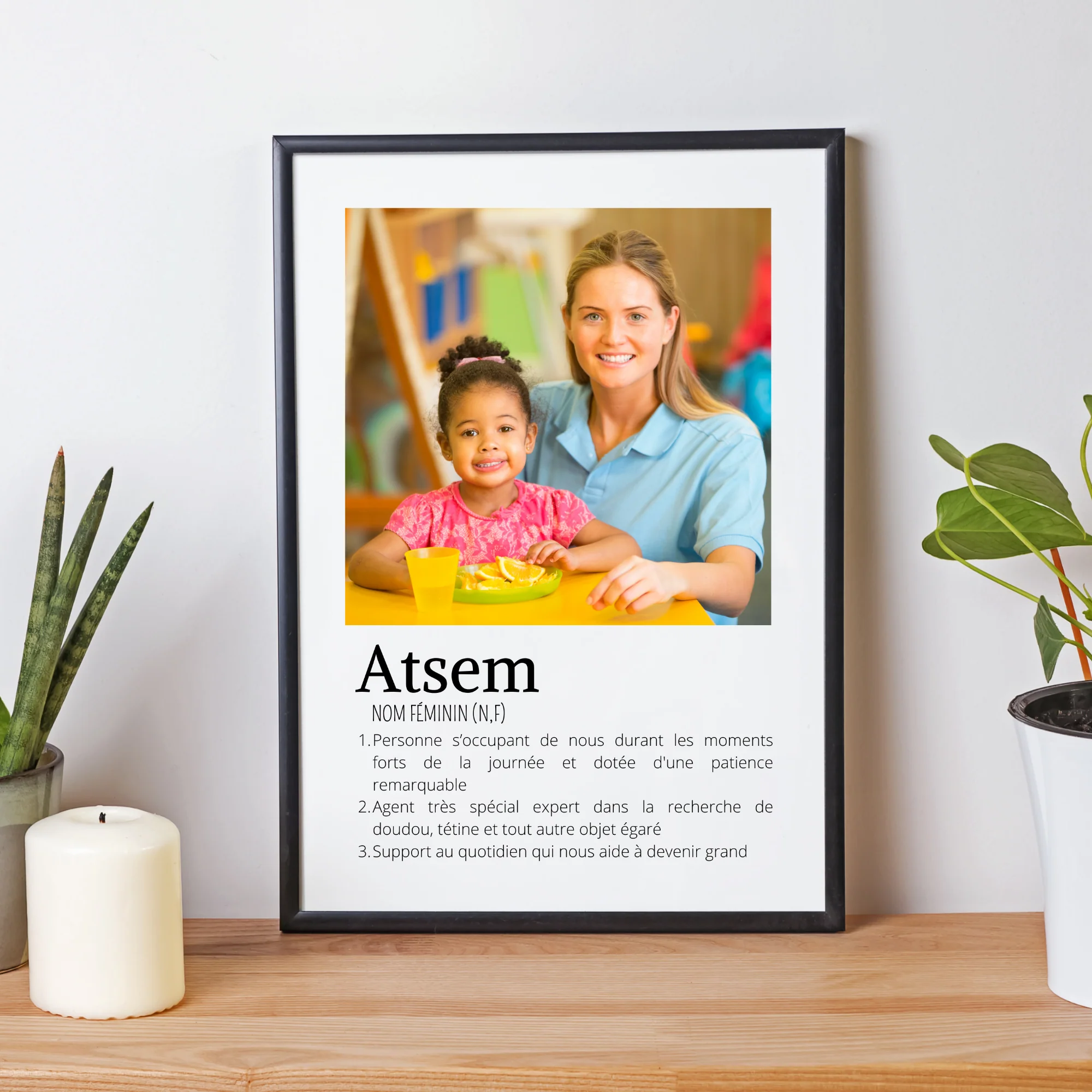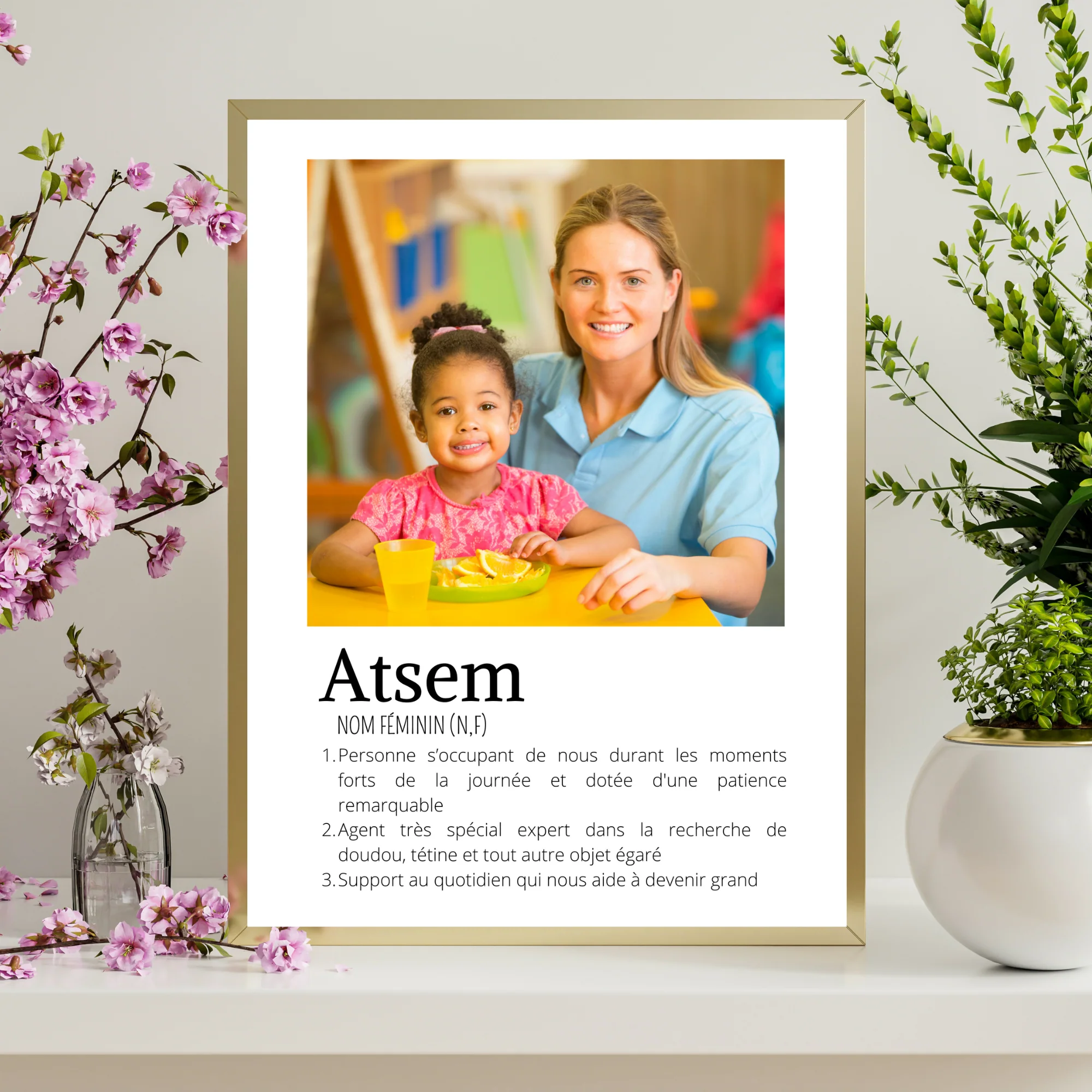 ❤️ Jolie affiche pour atsem personnalisée avec une photo et la définition du mot atsem.