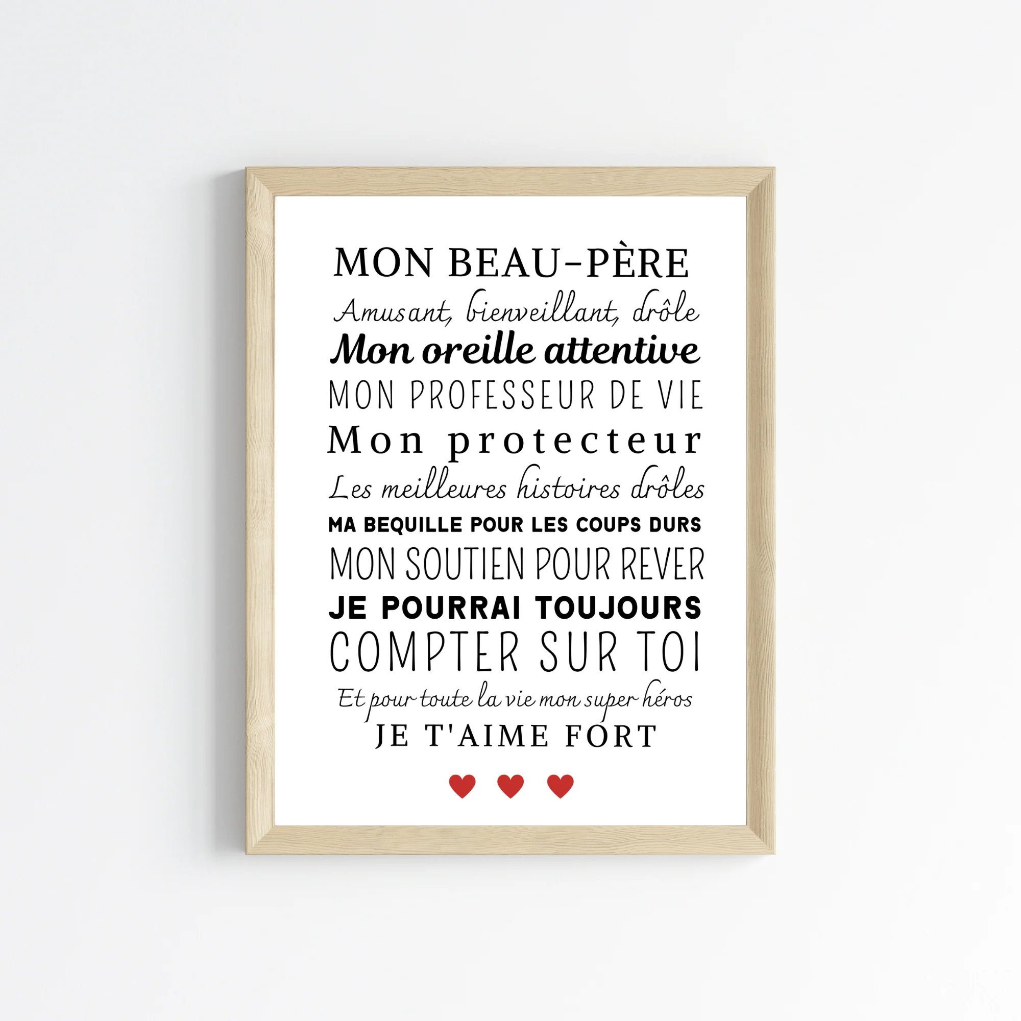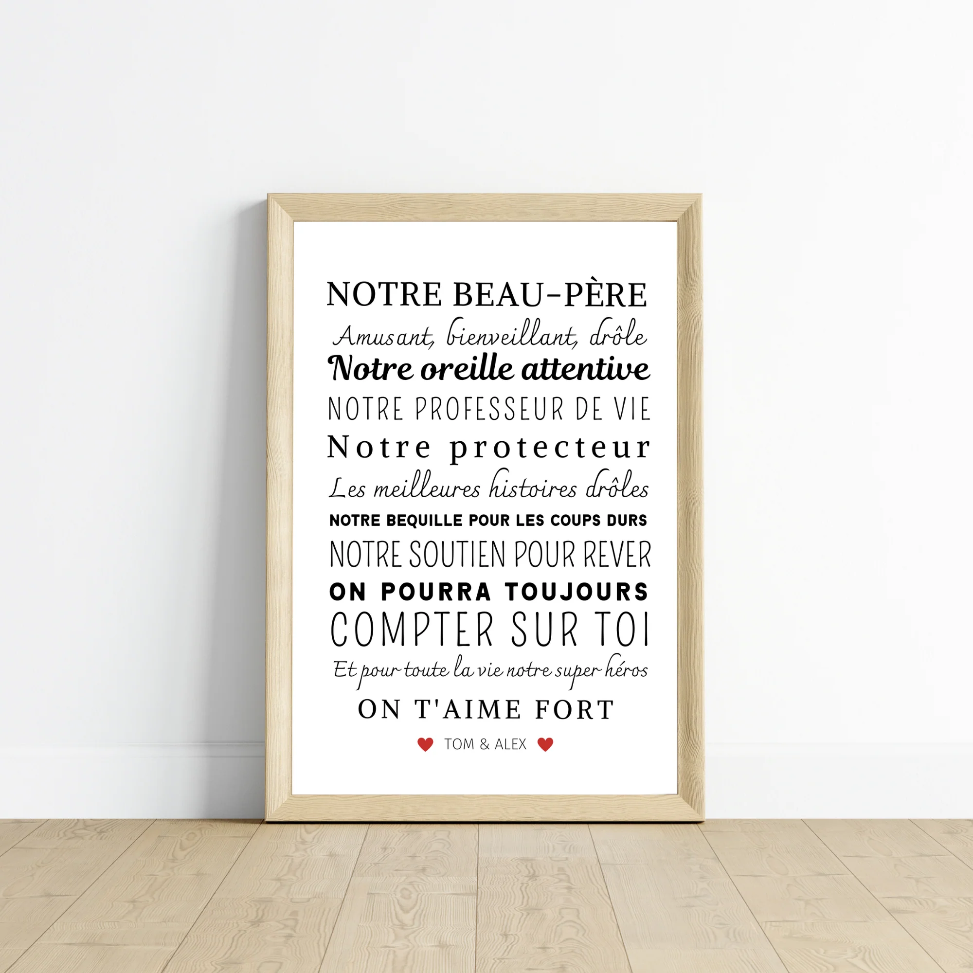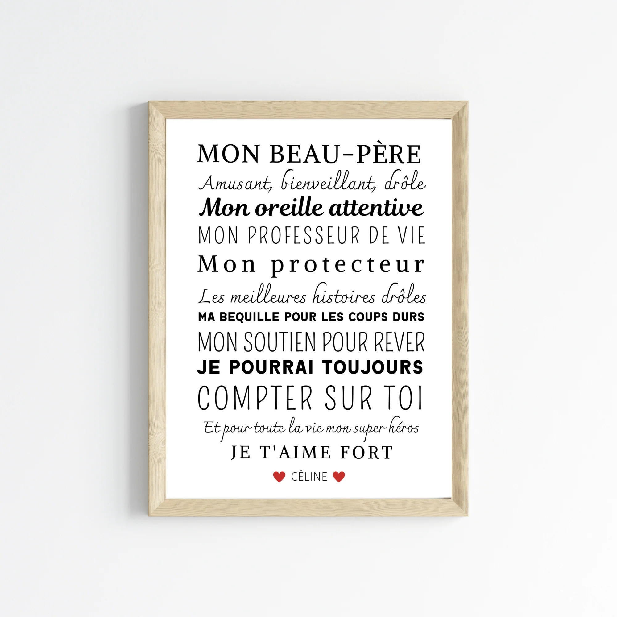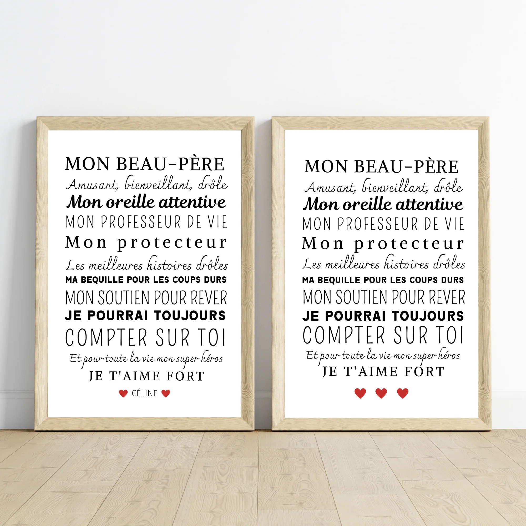 ❤️ Jolie affiche personnalisée pour un beau-père avec des phrases décrivant la relation père-enfant