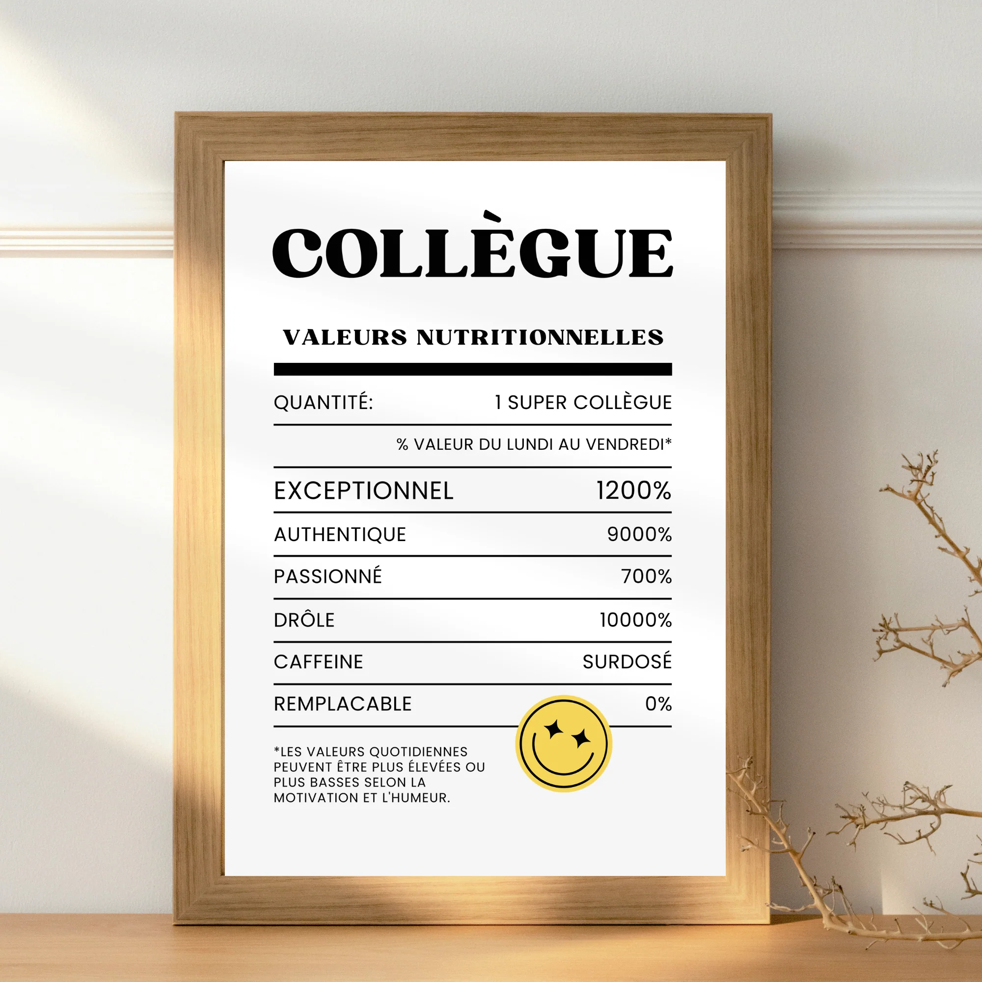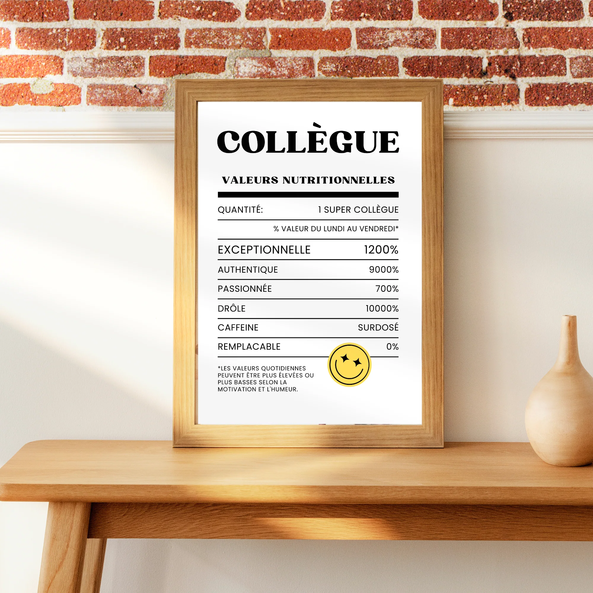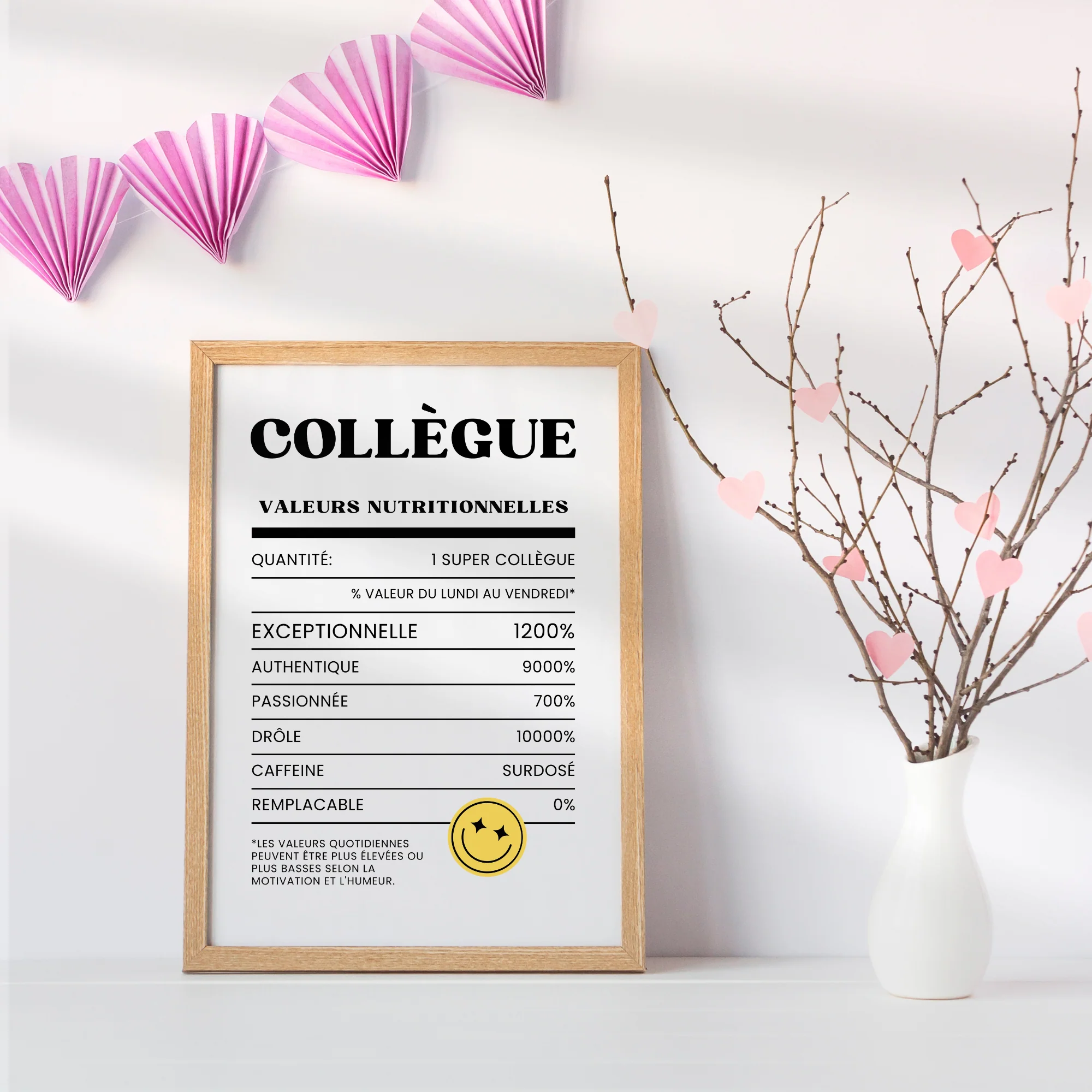 Affiche Collègue Valeurs nutritionnelles – affiche humoristique cadeau collègue