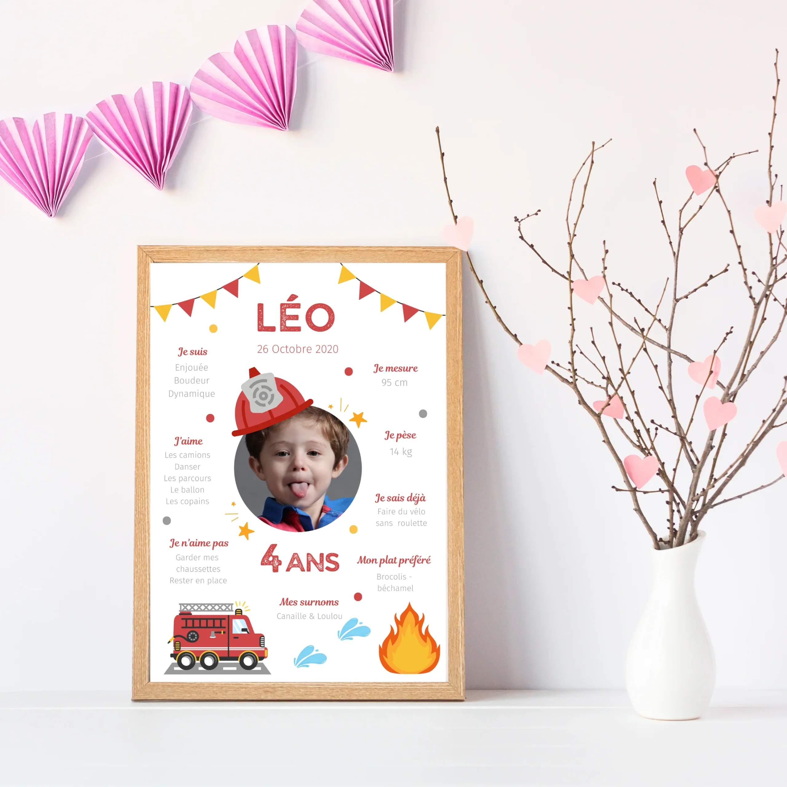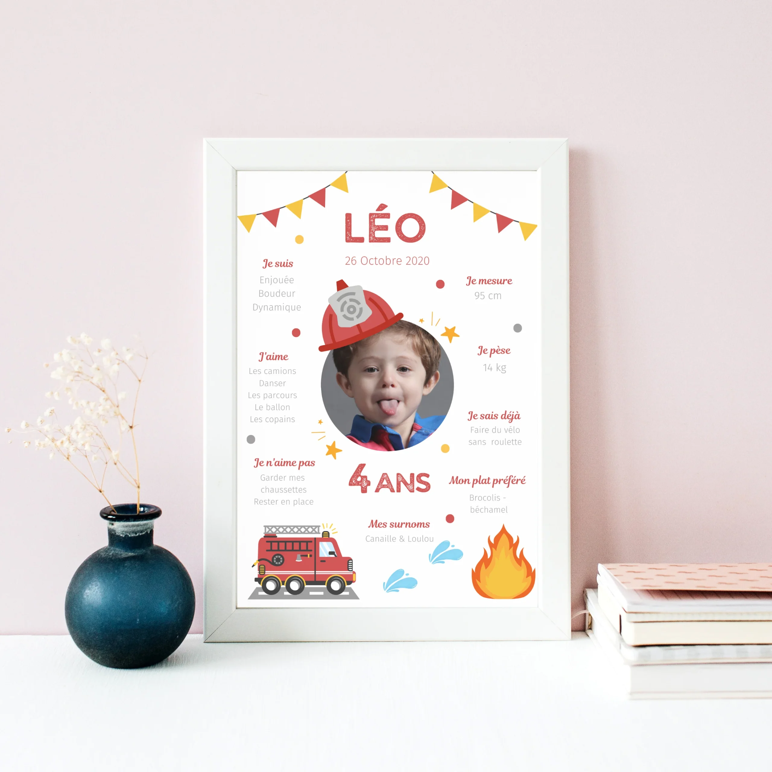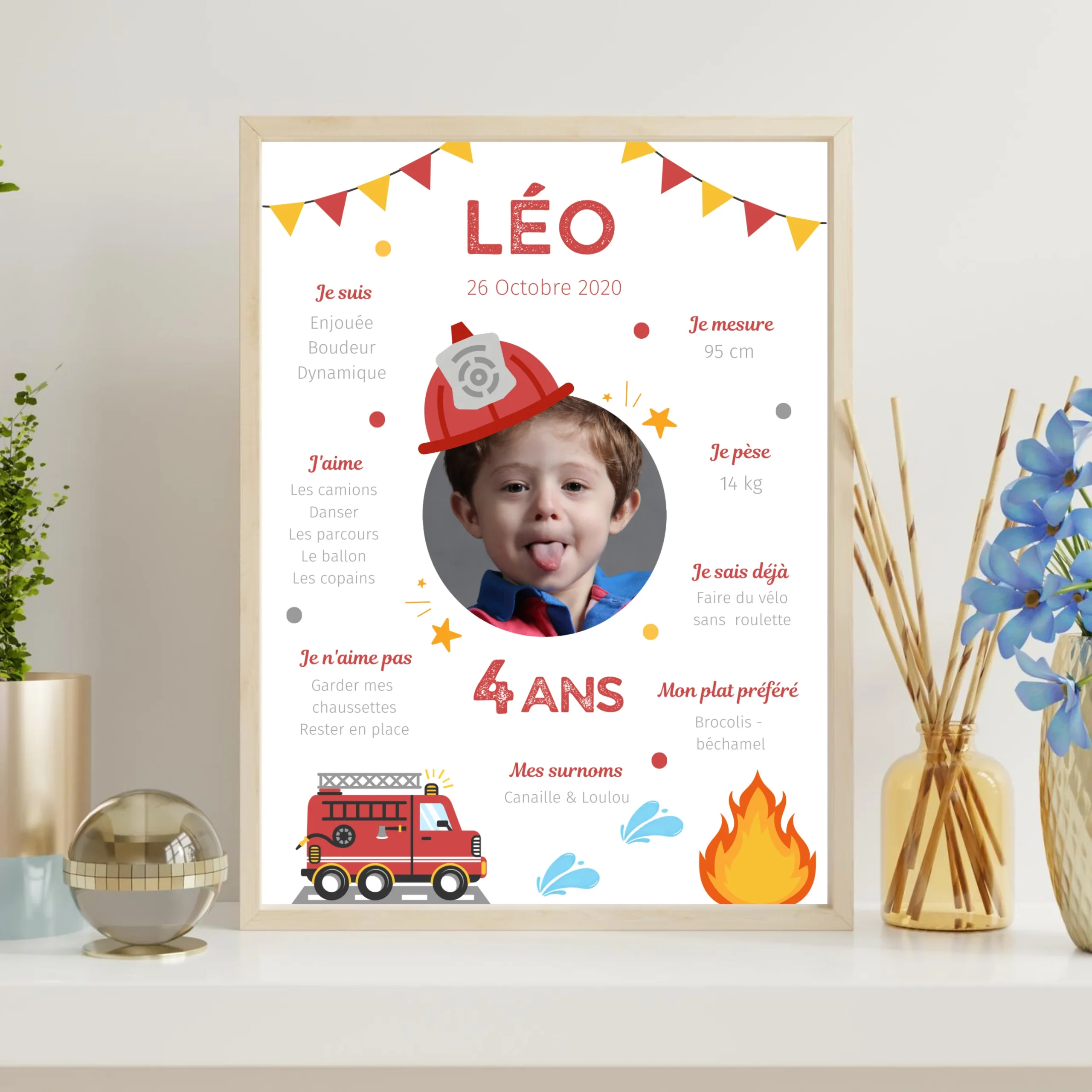 Affiche d’anniversaire personnalisée sur le thème Pompier – Cadeau Unique et Original