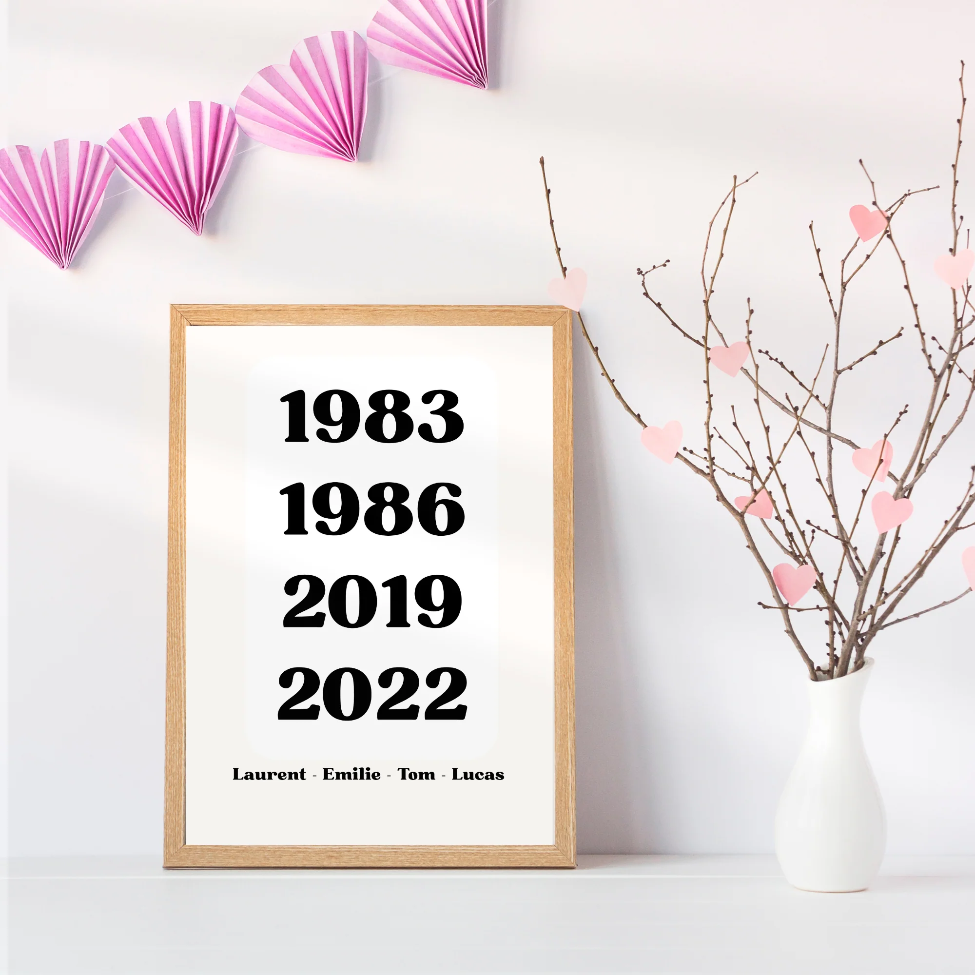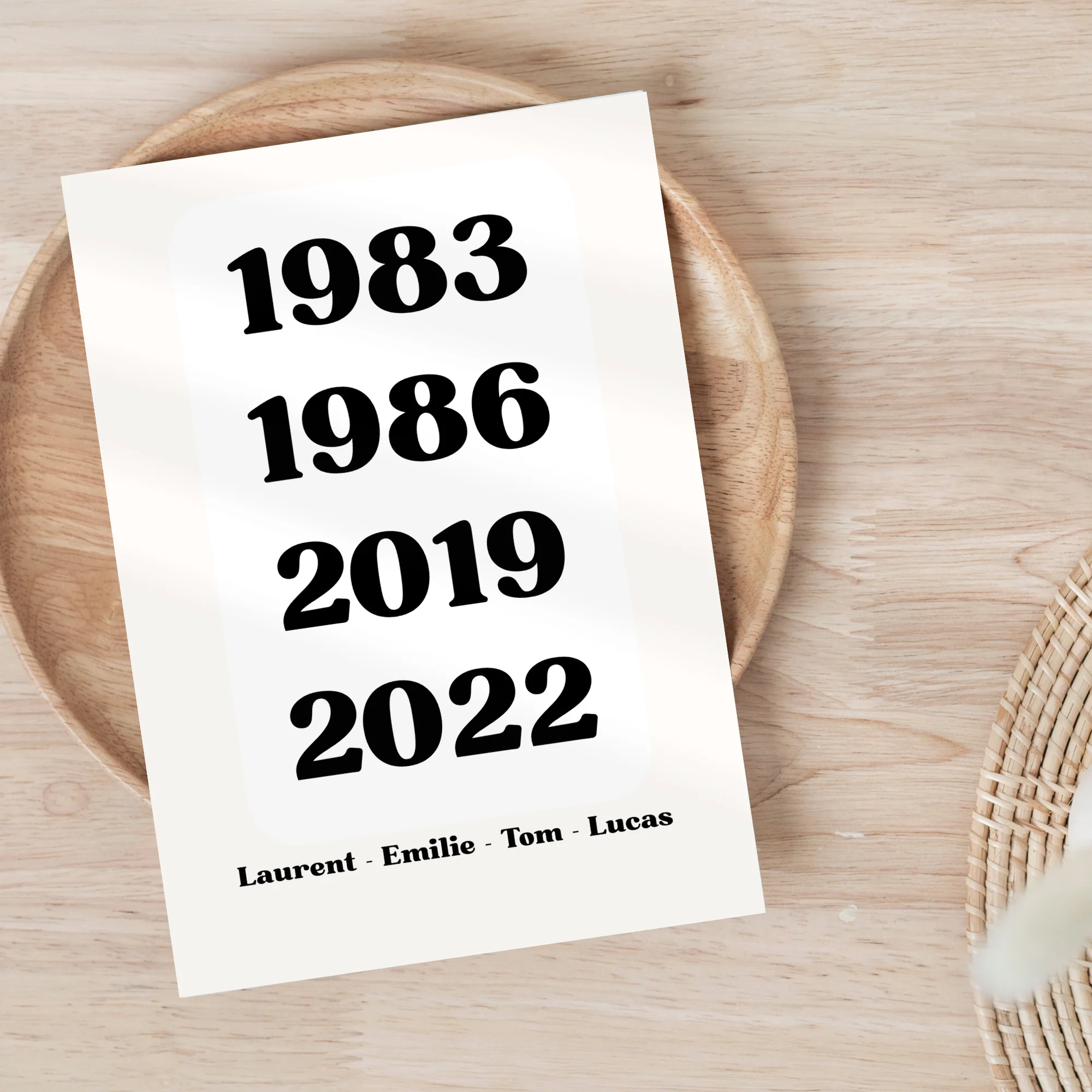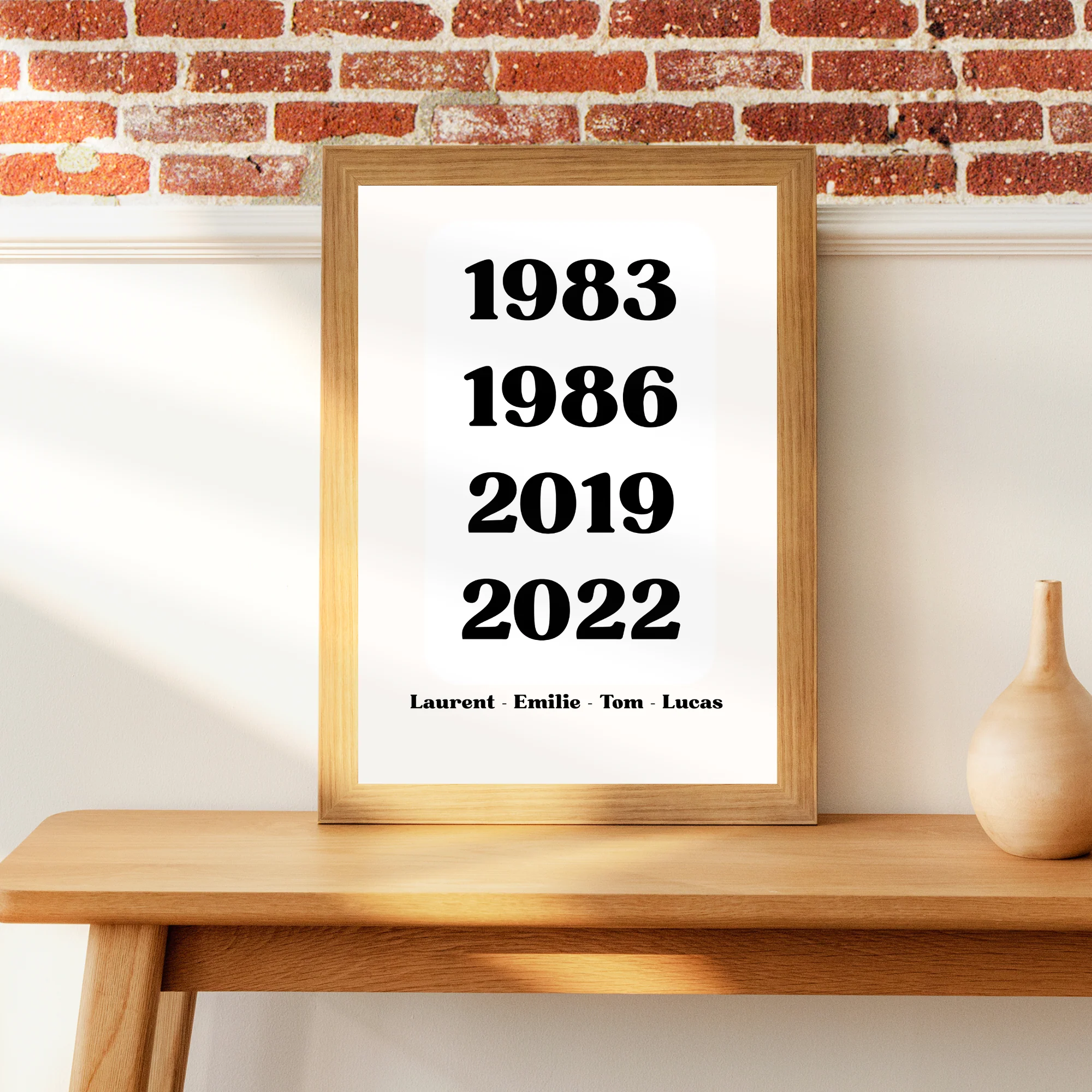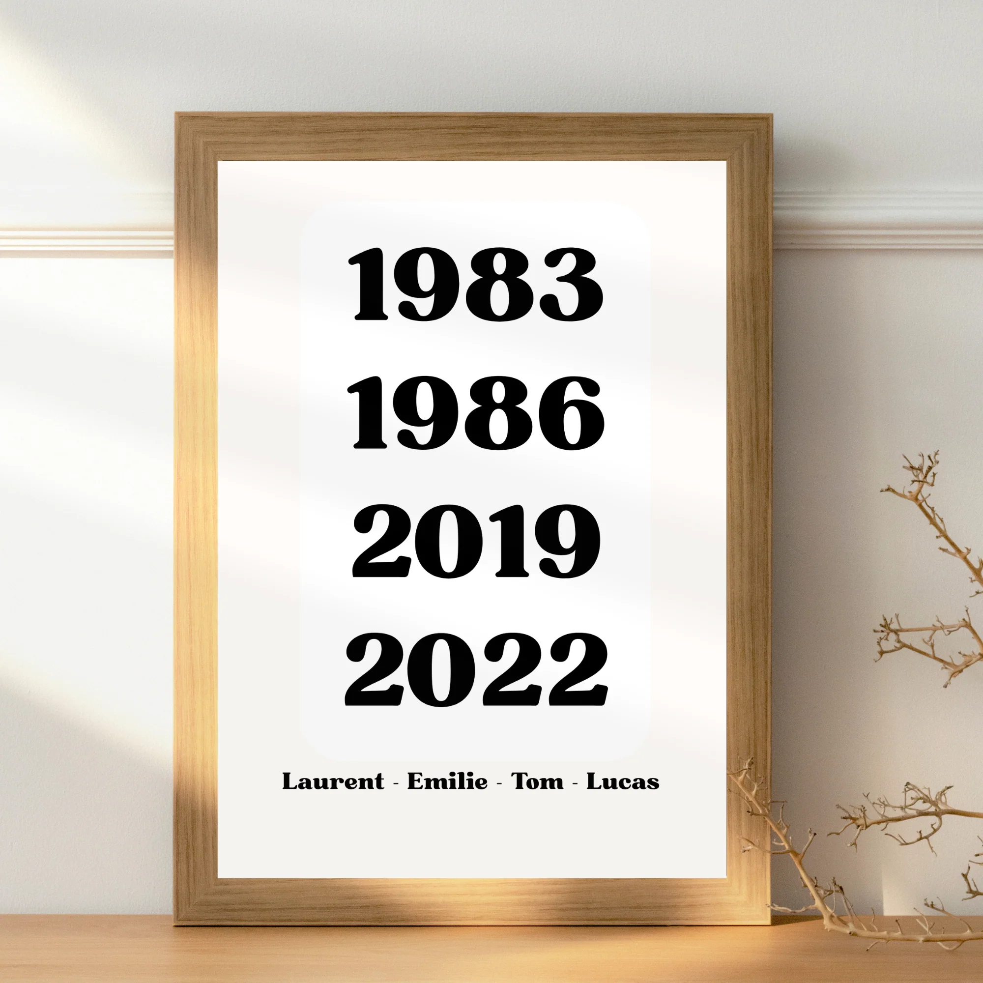 Affiche « Dates famille » – Poster dates de naissance personnalisé Noir