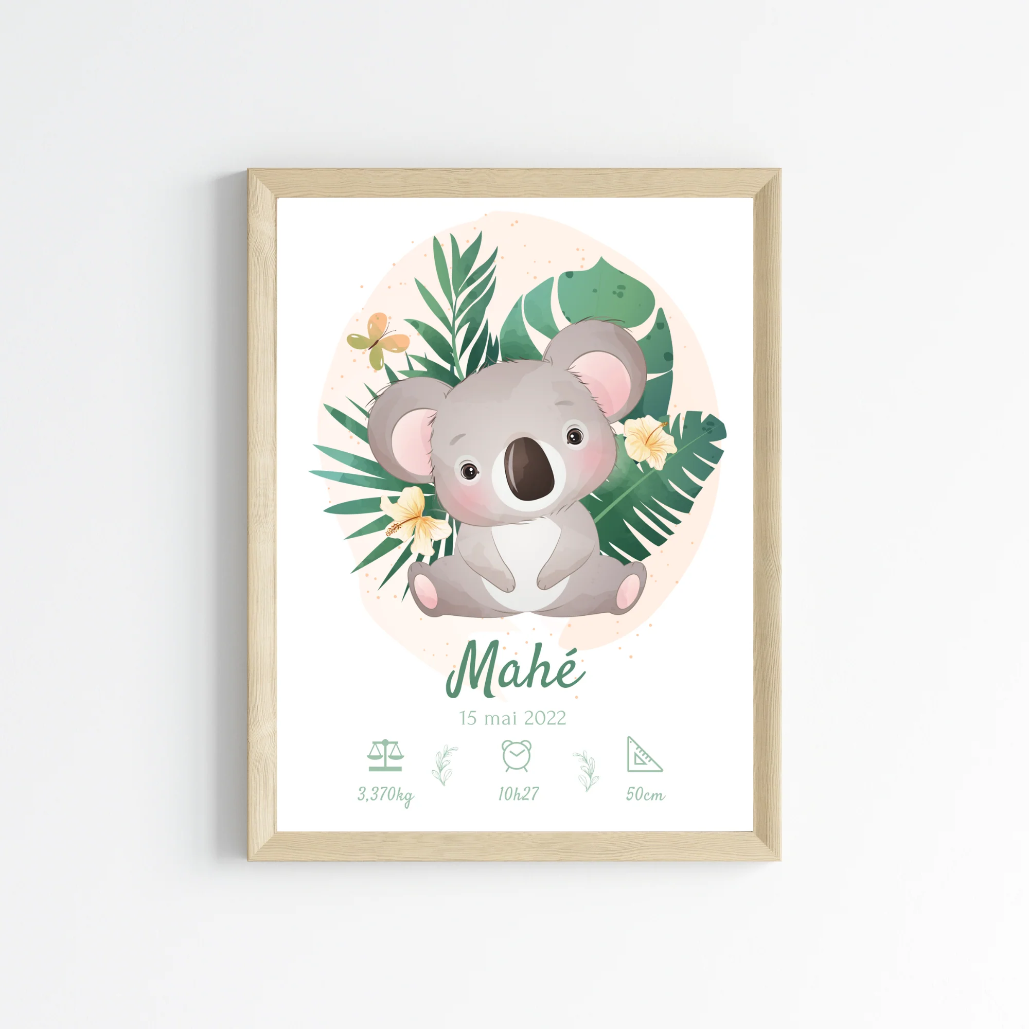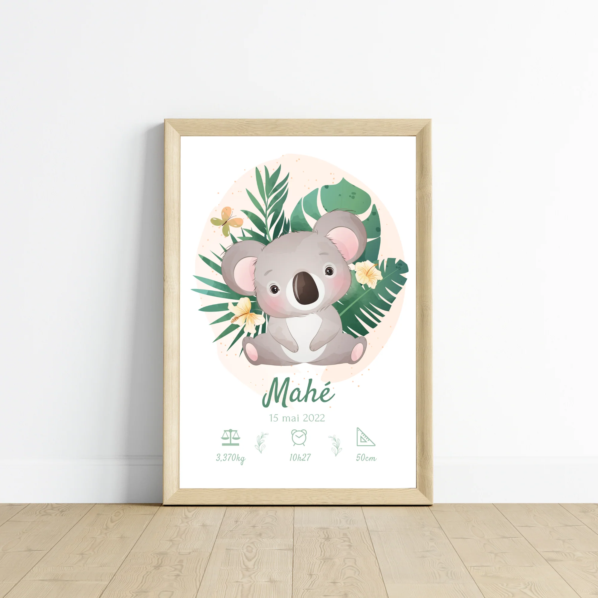 Affiche de naissance koala tropical – Cadeau de naissance personnalisé