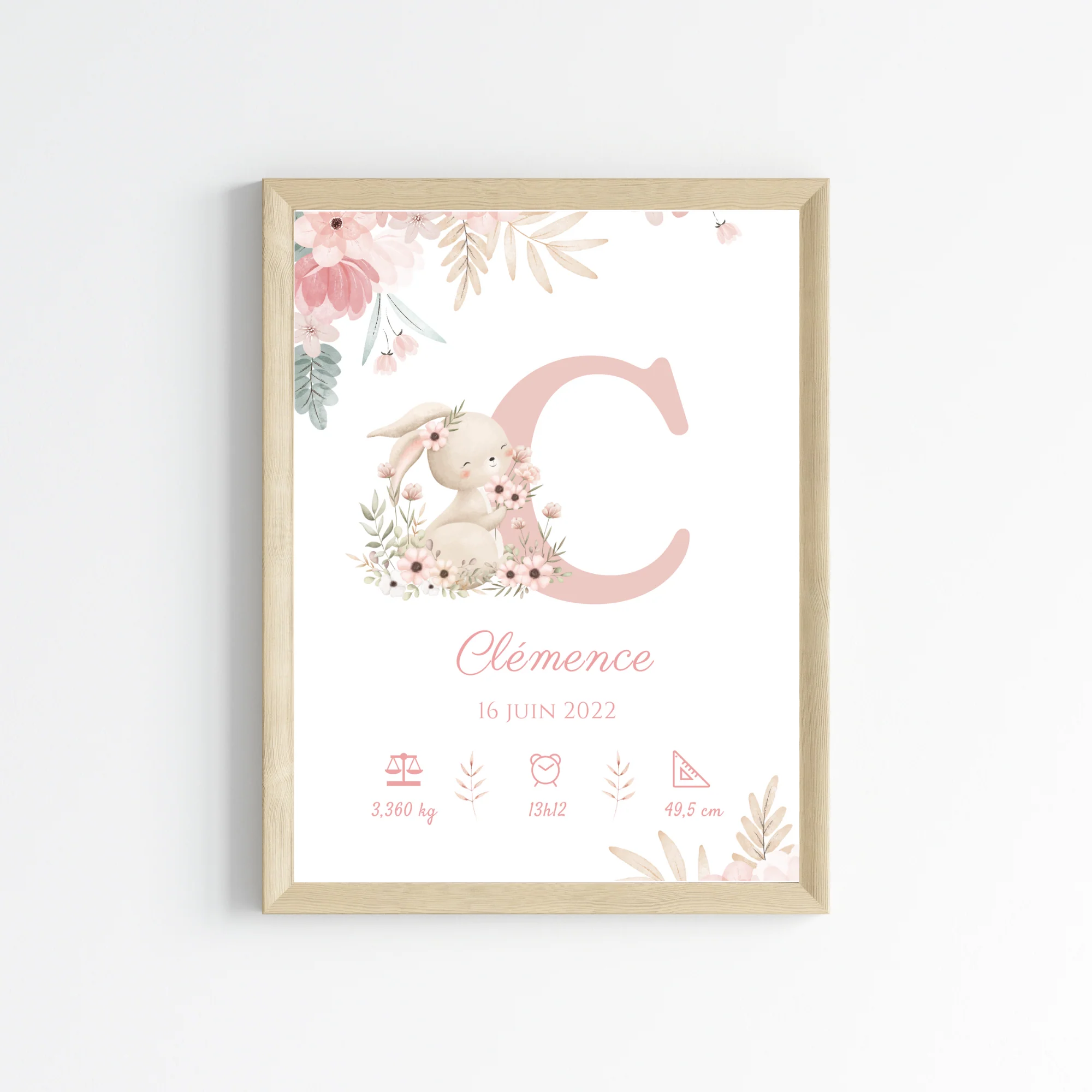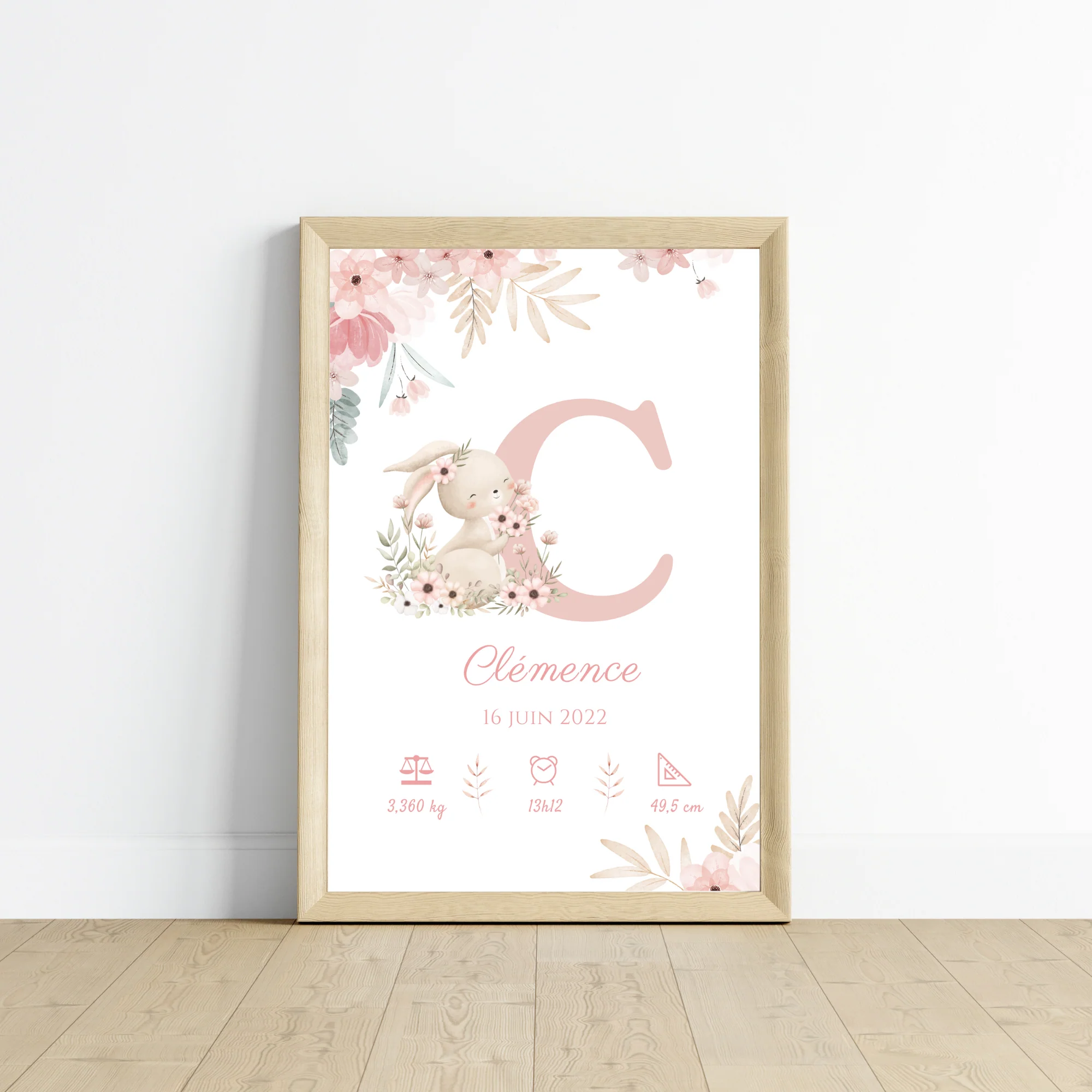 Affiche de naissance lapin – Cadeau de naissance personnalisé