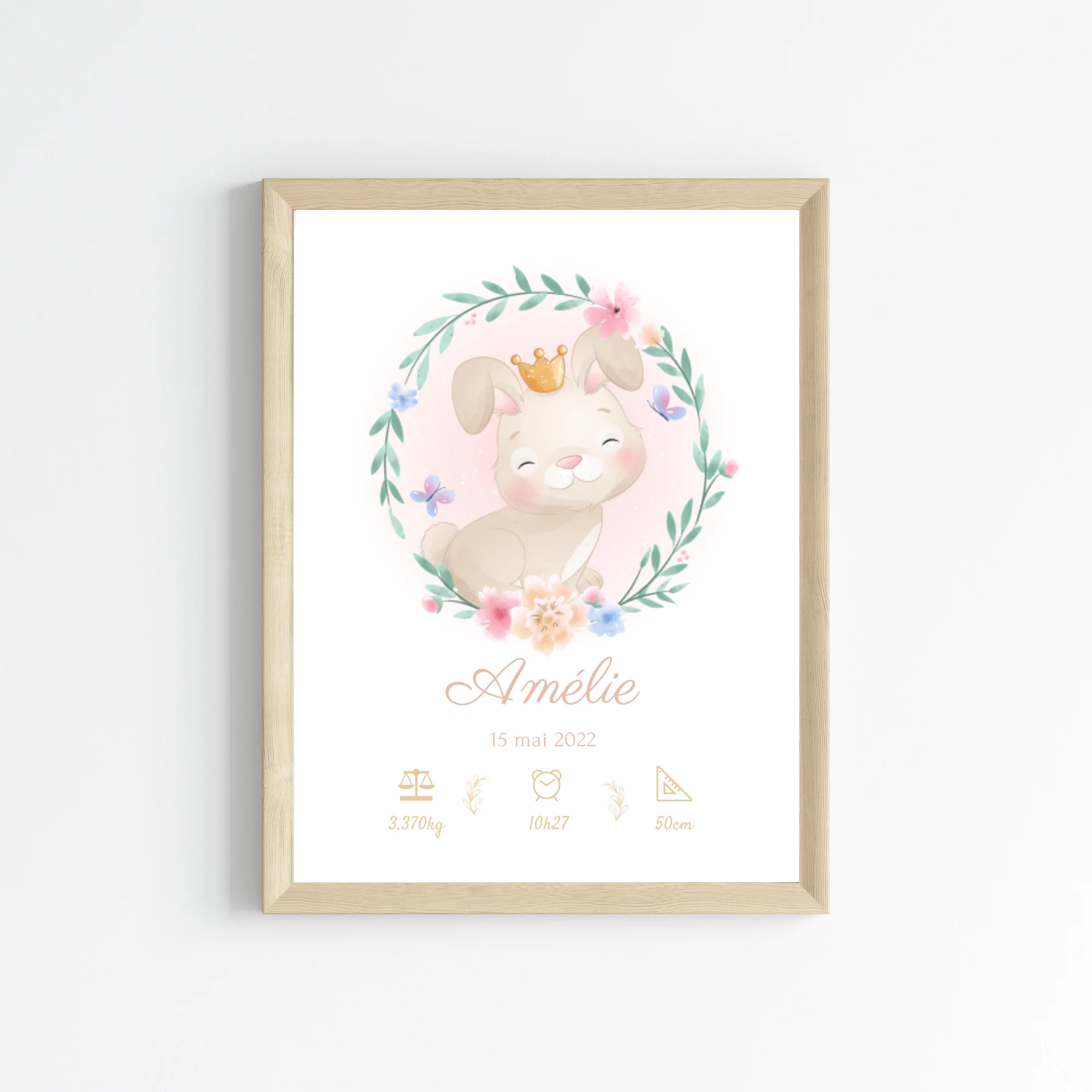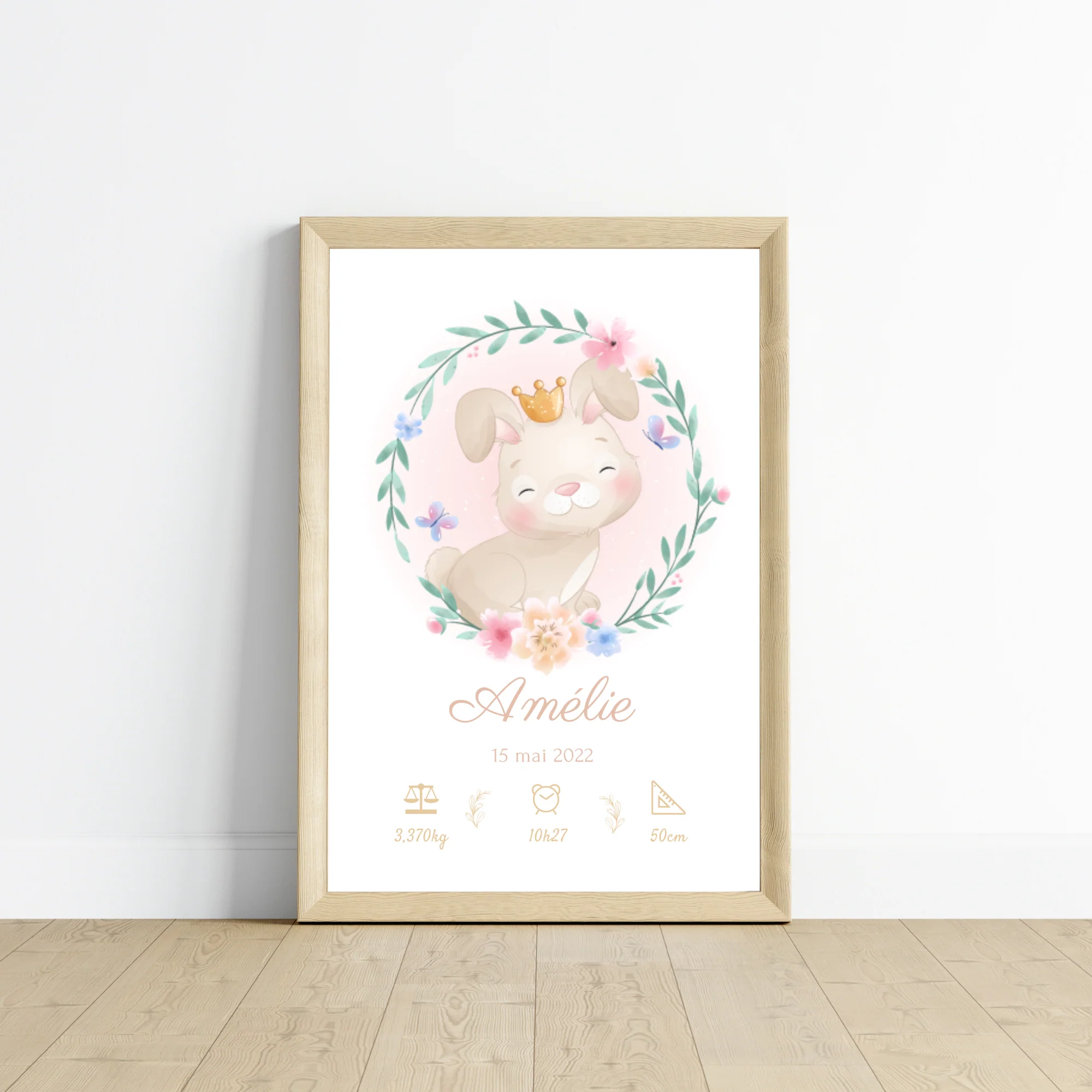 Affiche de naissance lapin – Cadeau de naissance personnalisé