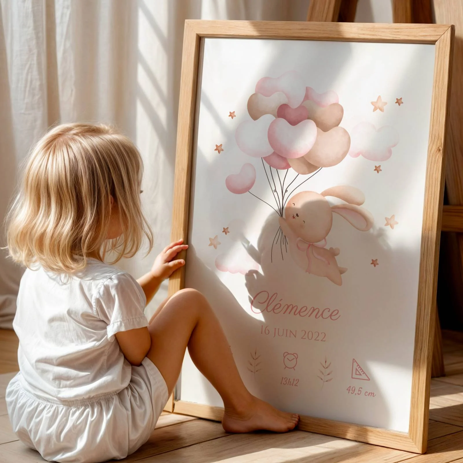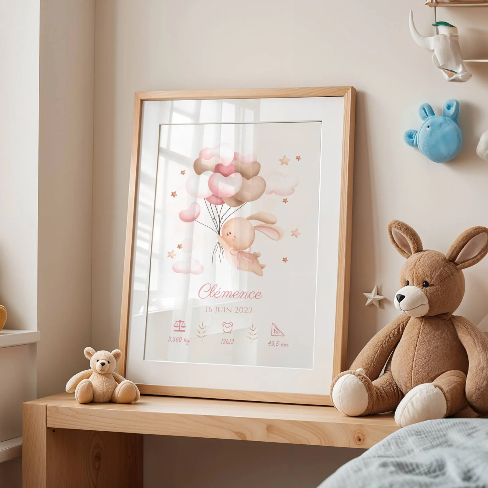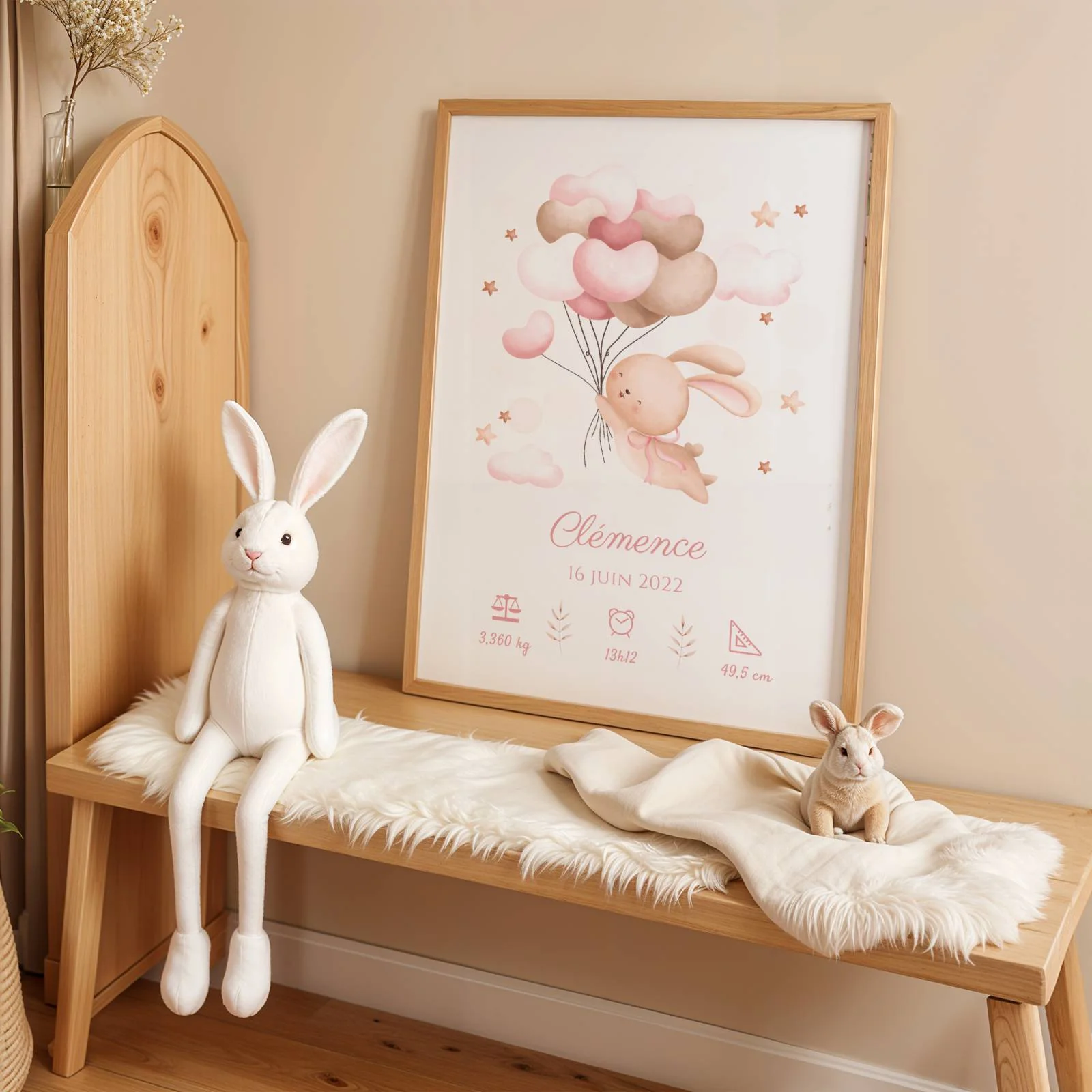 Affiche de naissance lapin – Décoration chambre bébé personnalisé