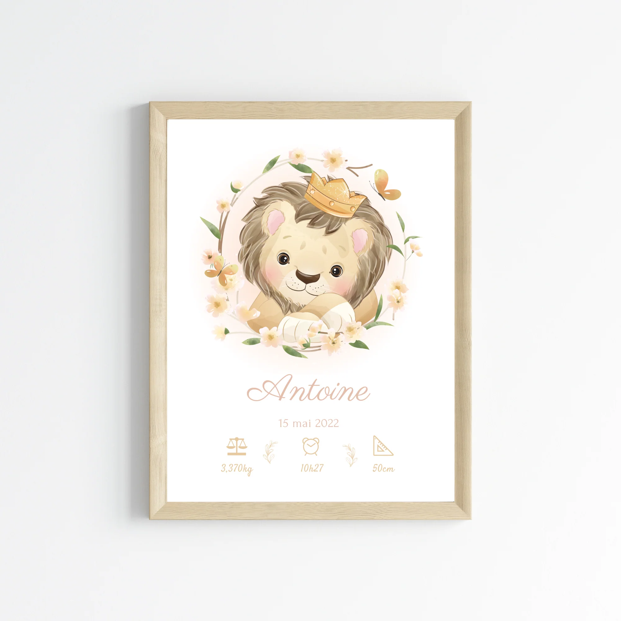 Affiche de naissance lion – Cadeau de naissance personnalisé