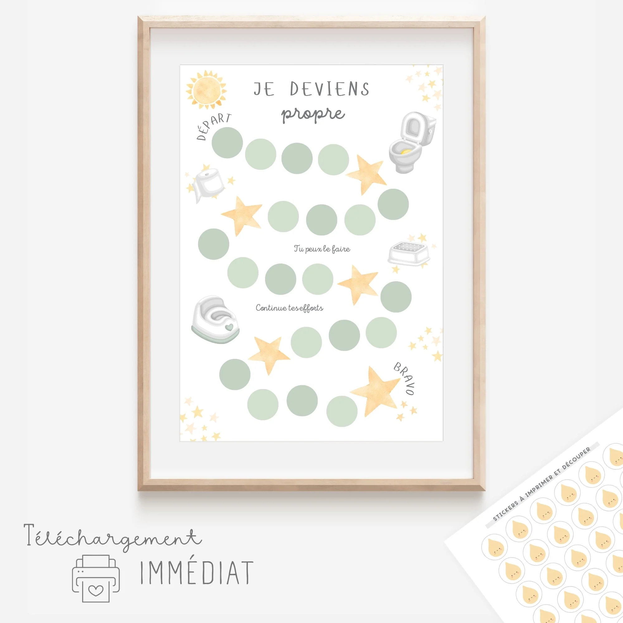 Et si la propreté devenait une vraie petite aventure ? Avec notre affiche de propreté, accompagnez votre enfant dans cet apprentissage. Chaque fois que votre enfant essaiera d’aller sur le pot ou les toilettes, il posera une vignette sur son affiche. À chaque étape, célébrez ses progrès, il sera fier de lui !