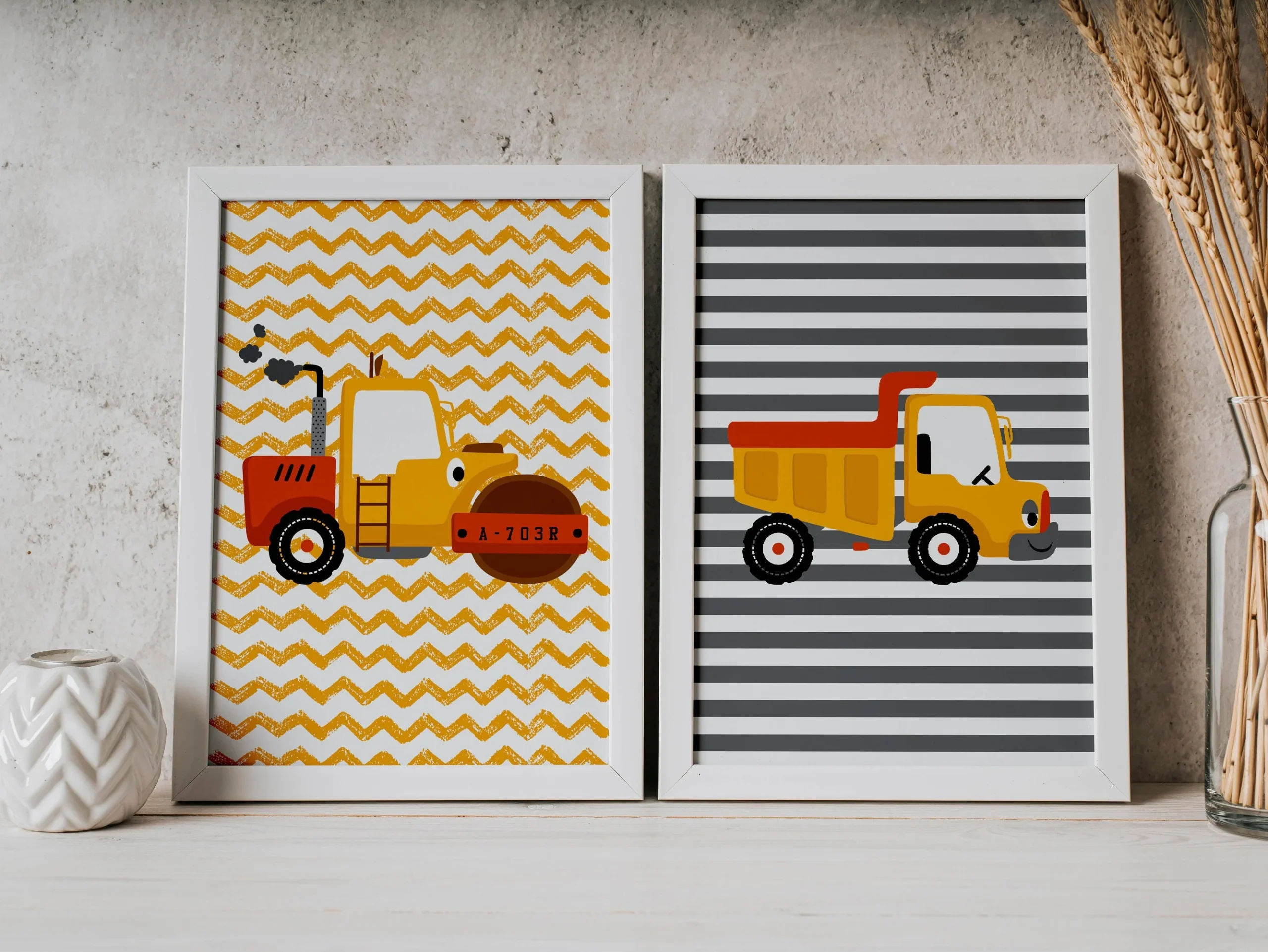affiche enfant engins de chantier, affiche enfant véhicules, affiche enfant voitures, affiche enfant camions par Le Temps des Paillettes