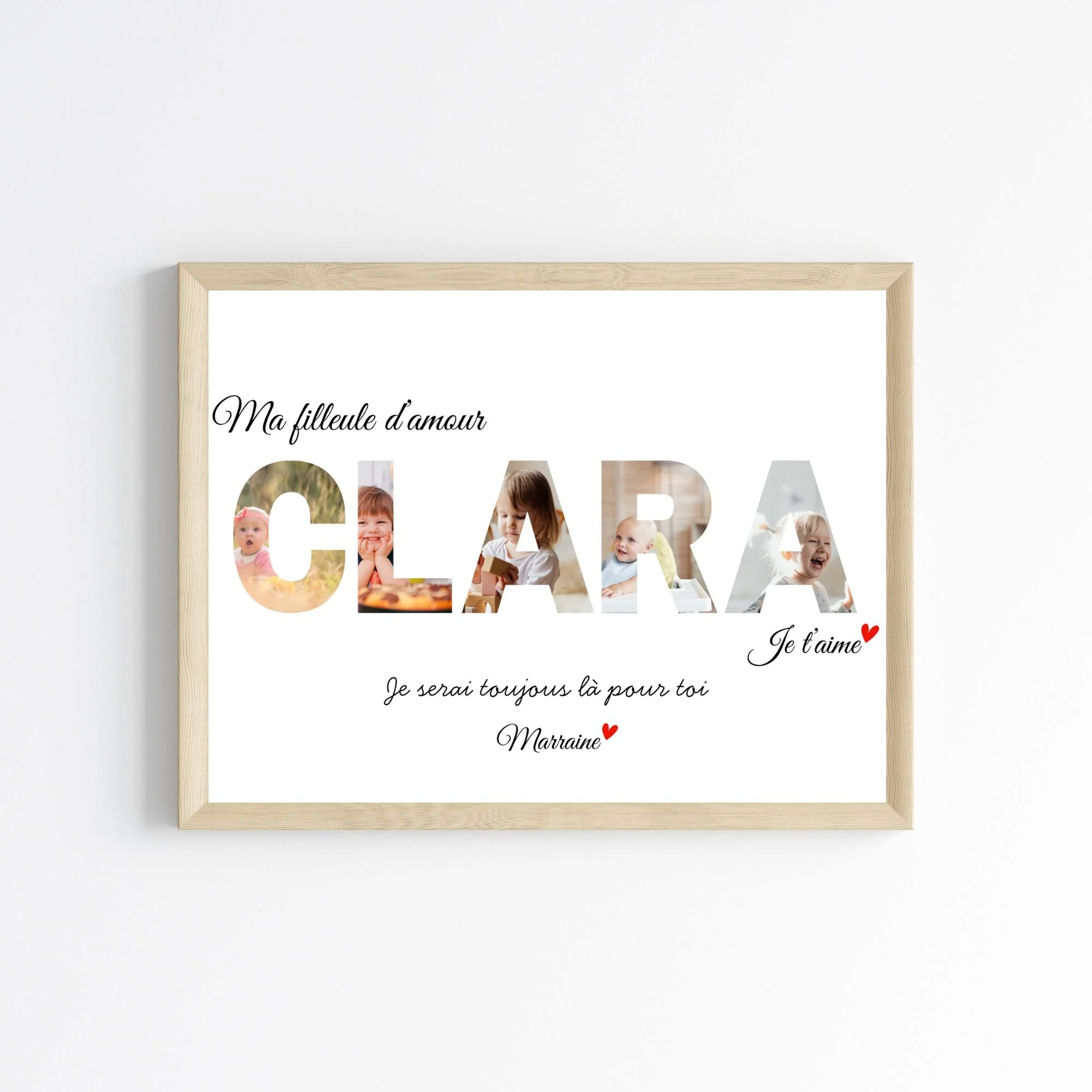 ❤️ Affiche prénom personnalisée avec photos – Idée cadeau unique pour filleul ou filleule