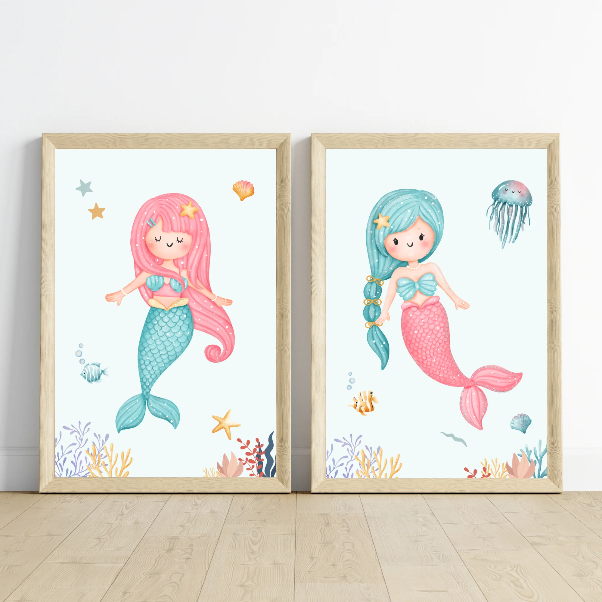 🧜♀️ Jolie set de 3 affiches pour petite fille sur le thème des sirènes et du monde aquatique !