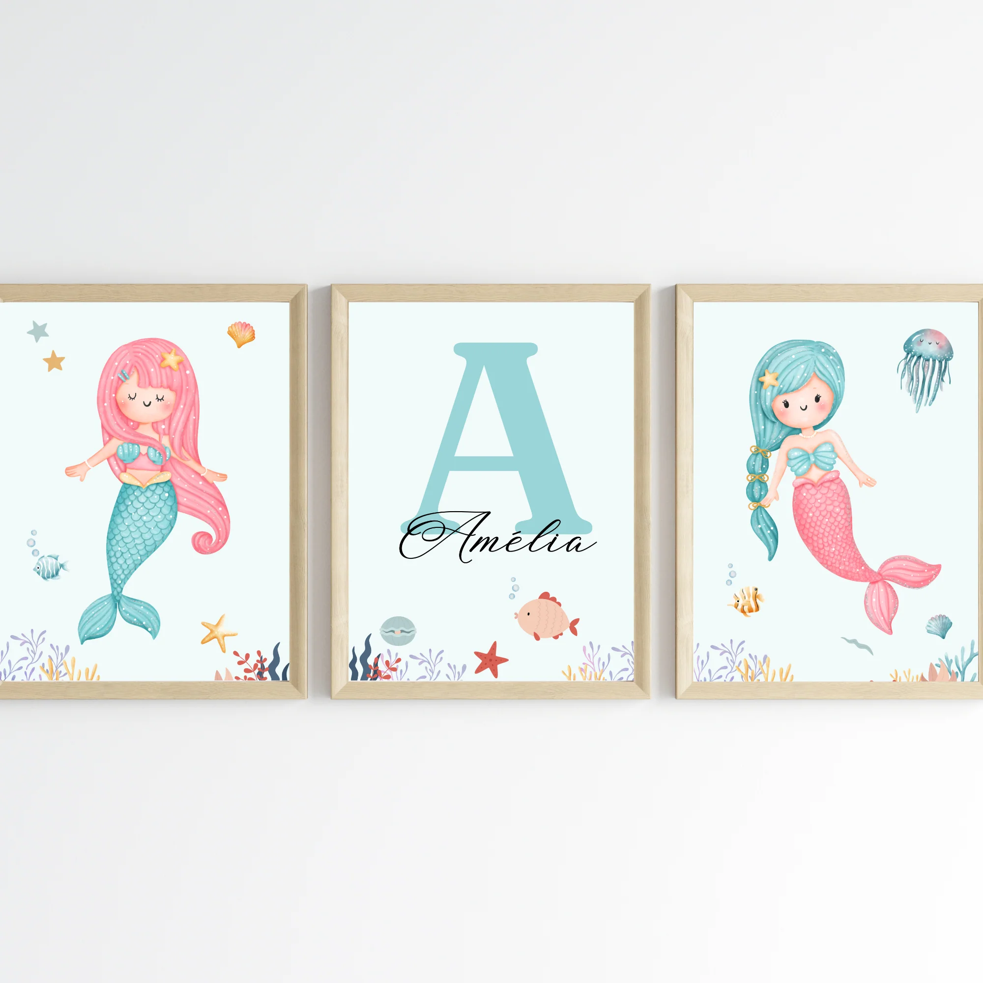 Affiche enfant sirène – Déco fille océan – Trio affiches A4 SANS CADRE