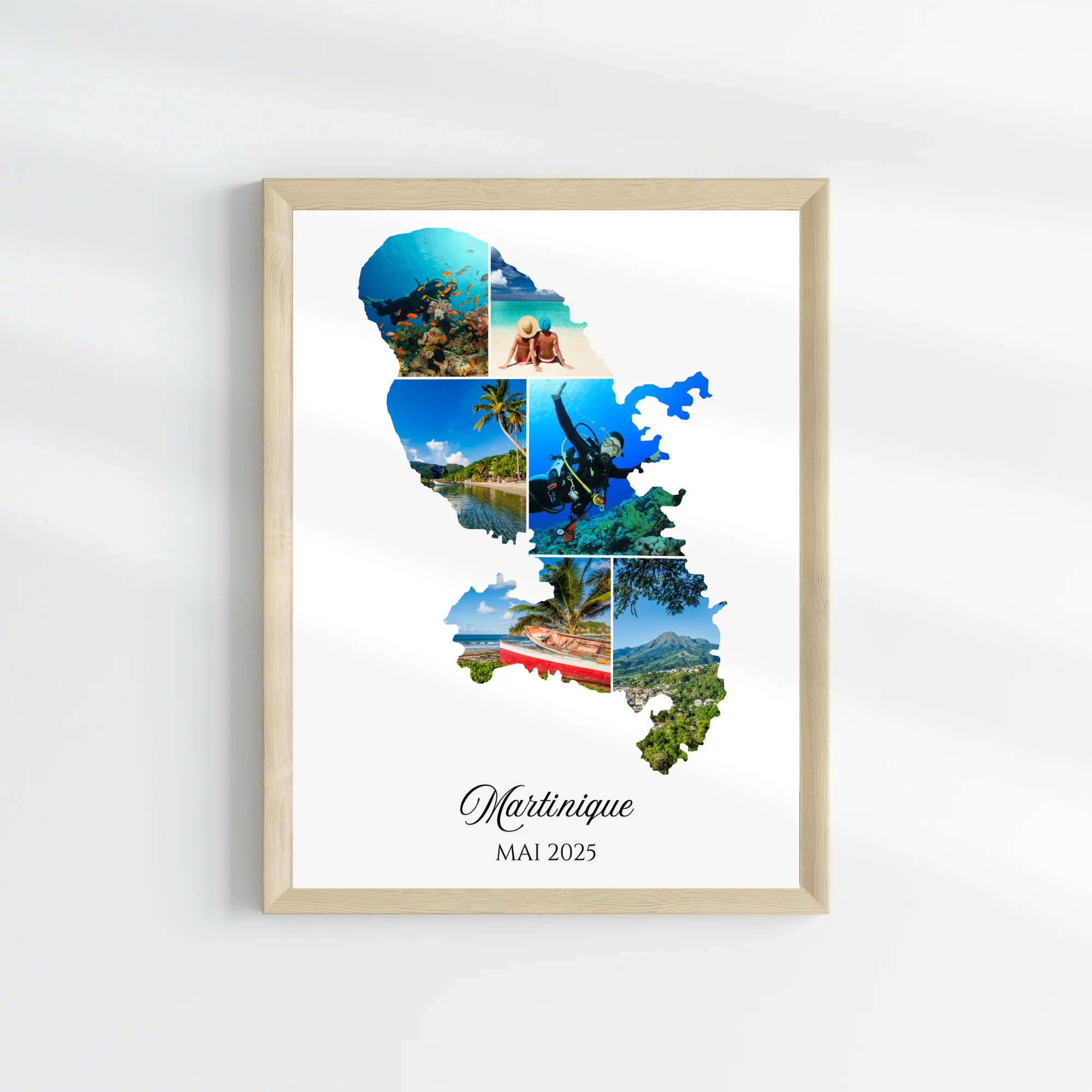 Affiche photos Île de Martinique personnalisée – Carte & collage photo Martinique