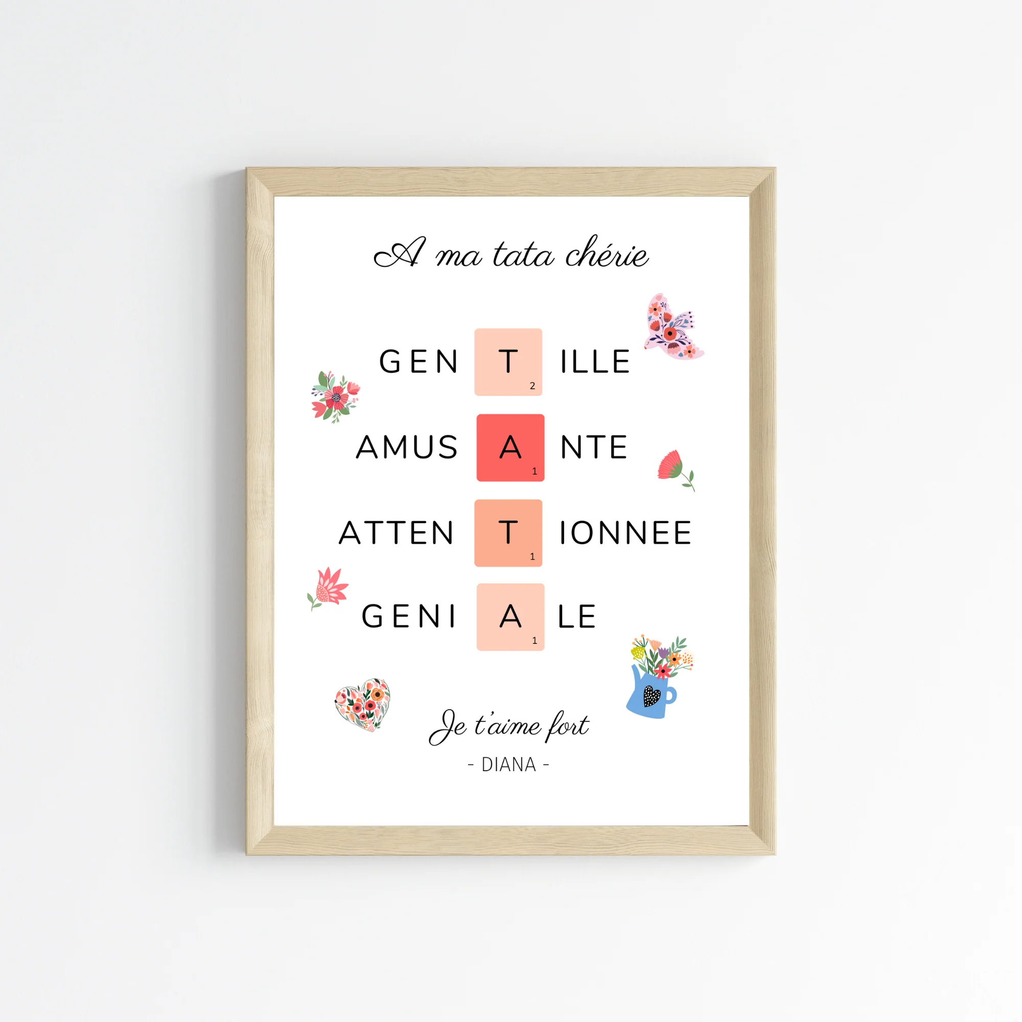 Affiche tata scrabble personnalisée – cadeau pour tata personnalisé par Le Temps des Paillettes