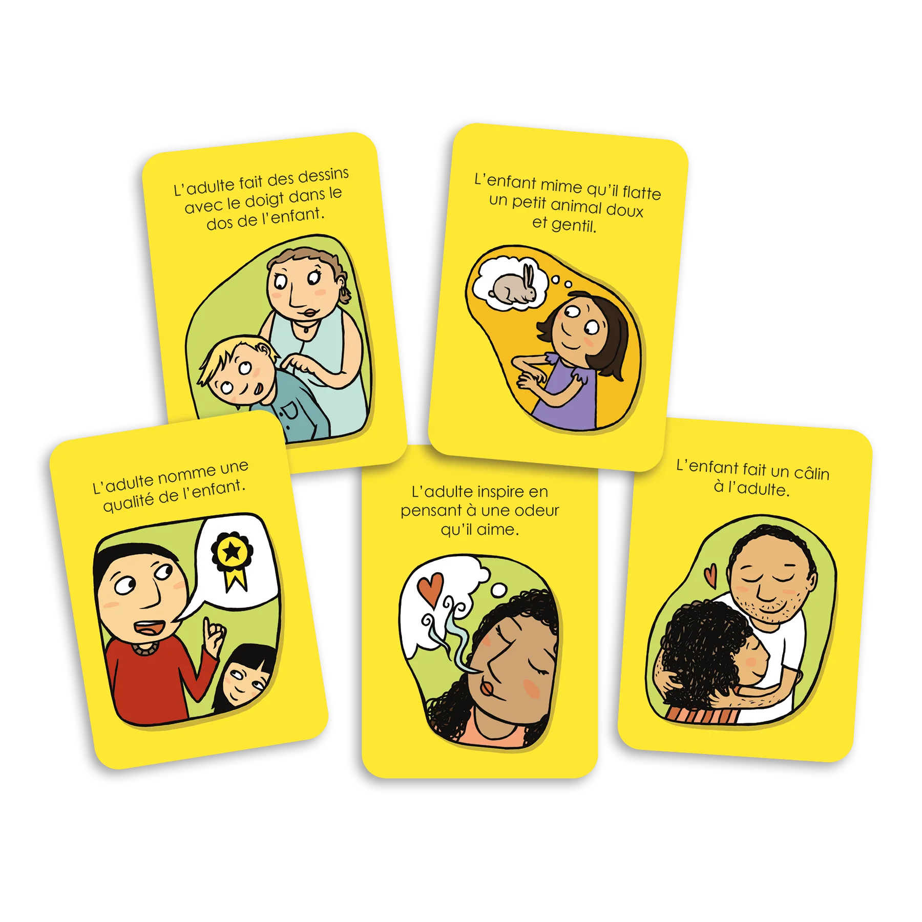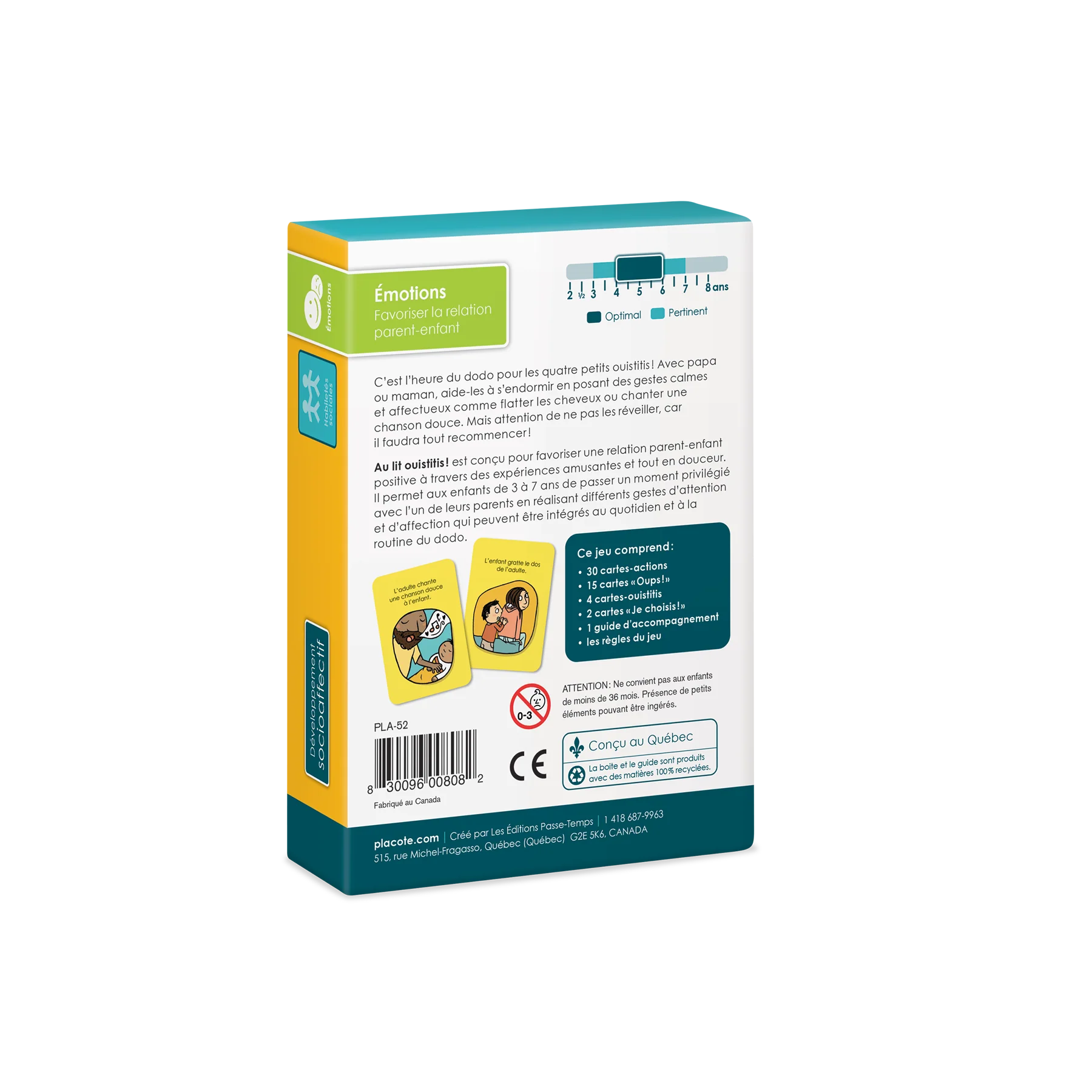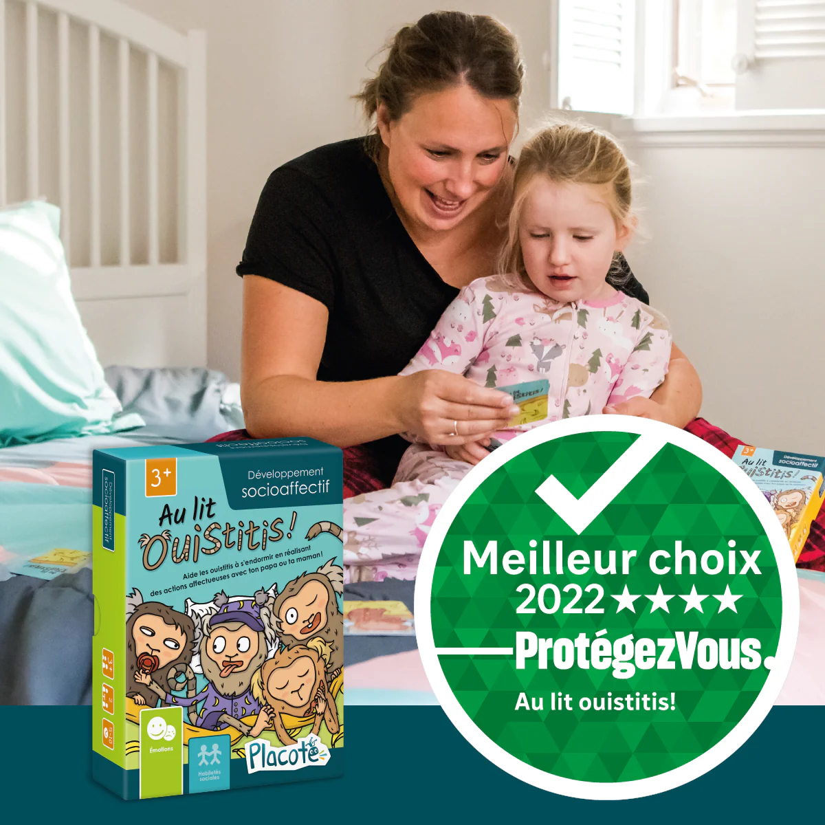 Au lit ouistitis! est conçu pour favoriser une relation parent-enfant positive à travers des expériences amusantes et tout en douceur. Il permet aux enfants de 3 à 7 ans de passer un moment privilégié avec l’un de leurs parents en réalisant différents gestes d’attention et d’affection qui peuvent être intégrés au quotidien et à la routine du dodo, comme chanter une chanson douce, flatter les cheveux et masser les mains et le dos.