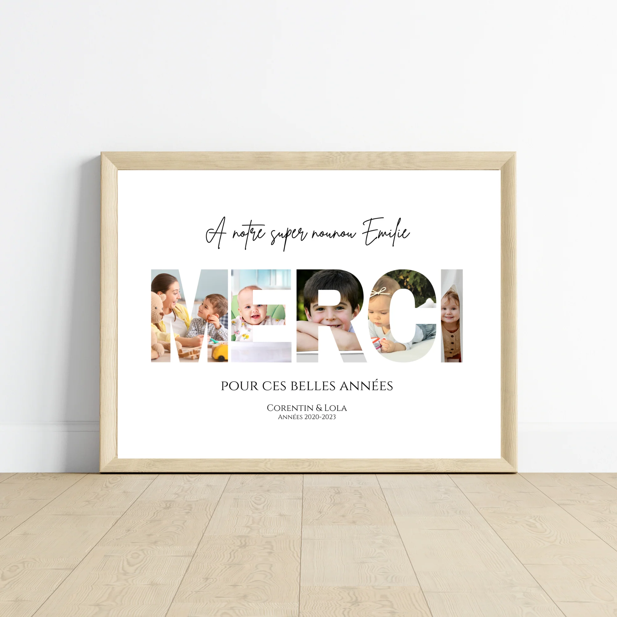 ❤️ Cadre photo MERCI personnalisée – Idée Cadeau unique pour crèche et nounou 🎨 Chaque lettre du mot MERCI est créée avec une incrustation des photos des enfants, formant un souvenir émouvant et original. Ajoutez le nom de la crèche, le prénom de la nounou et des enfants pour une personnalisation complète. 🎁 Idée cadeau […]
