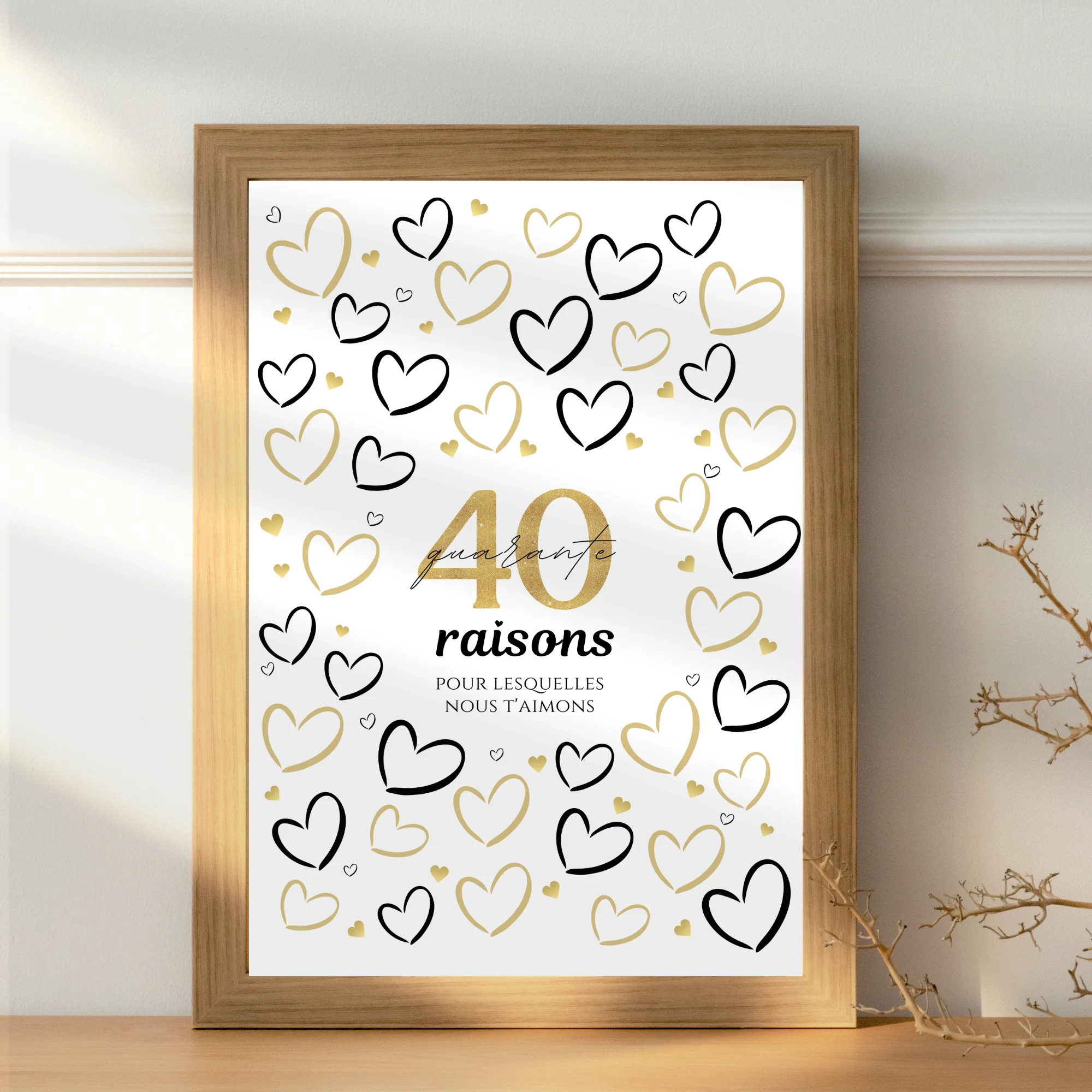 Carte Anniversaire 40 ans – Affiche raisons pour lesquelles nous t’aimons