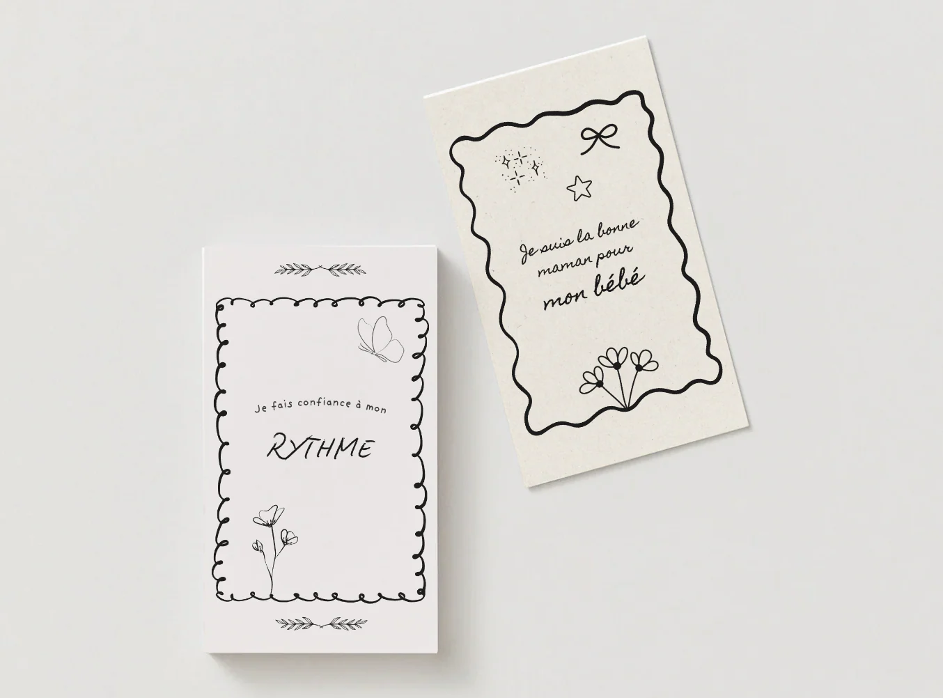 Il contient 30 cartes d’affirmations au design chaleureux (typographie moderne + motifs floraux discrets) à modifier directement dans Canva (si tu le souhaites).