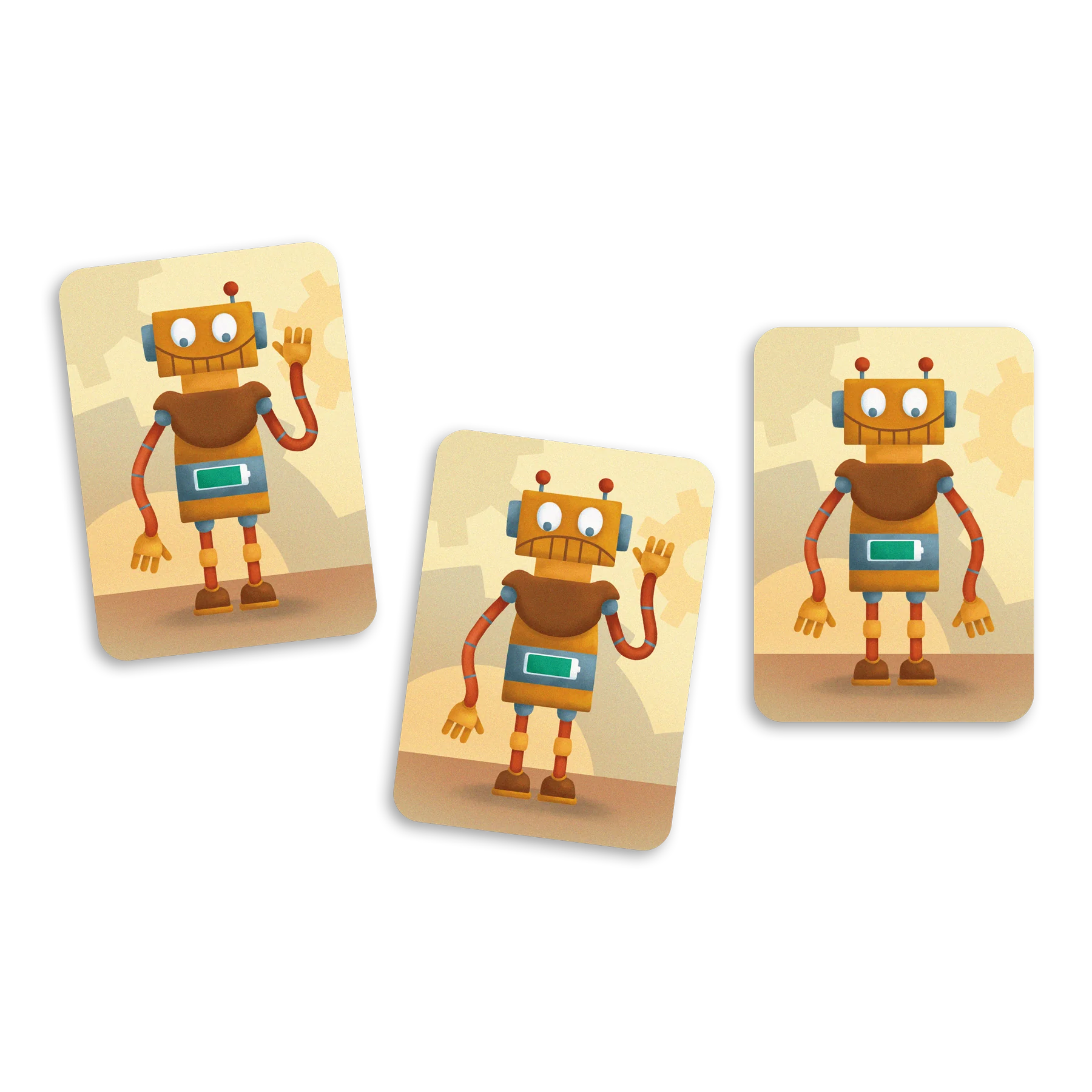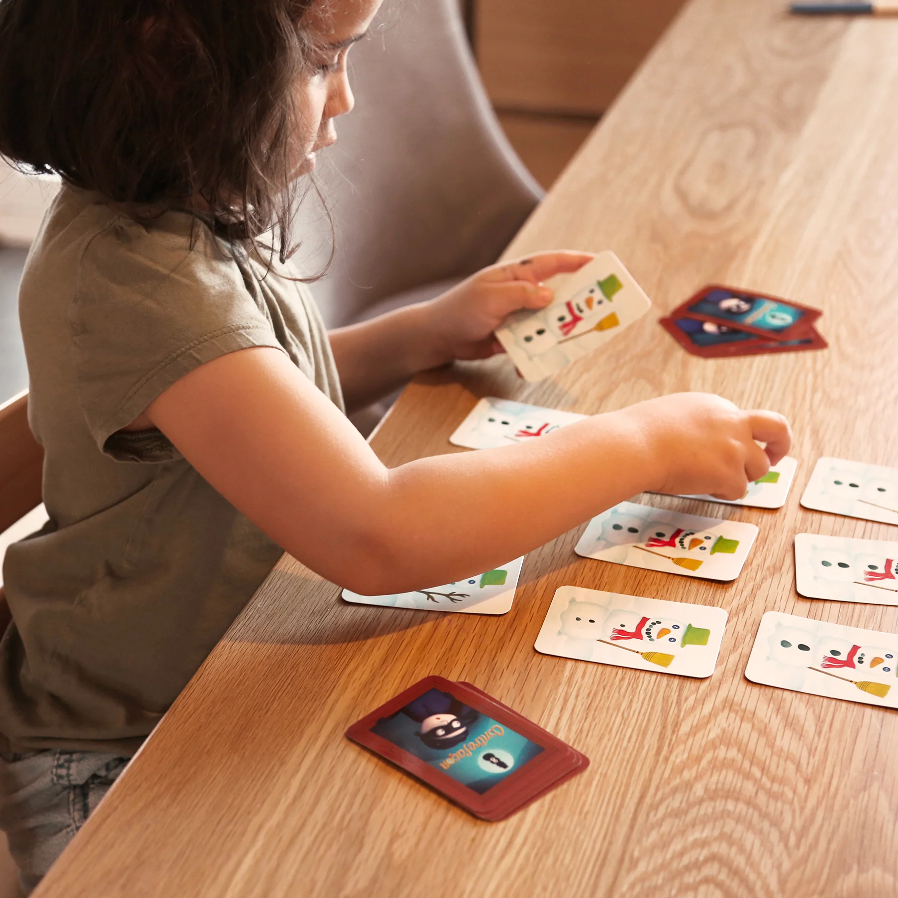Le jeu comprend 84 cartes et propose quatre niveaux de difficulté avec des différences de plus en plus subtiles entre les images. La comparaison d’images sollicite également un engagement de la mémoire à court terme chez l’enfant. En effet, pour devenir habile dans le jeu, le joueur gagne à mémoriser les caractéristiques qui distinguent les images afin d’orienter sa recherche. Cette particularité du jeu le distingue d’ailleurs d’un jeu plus classique de recherche visuelle et le rend un peu plus difficile que le jeu Placote Chasseurs en herbe.