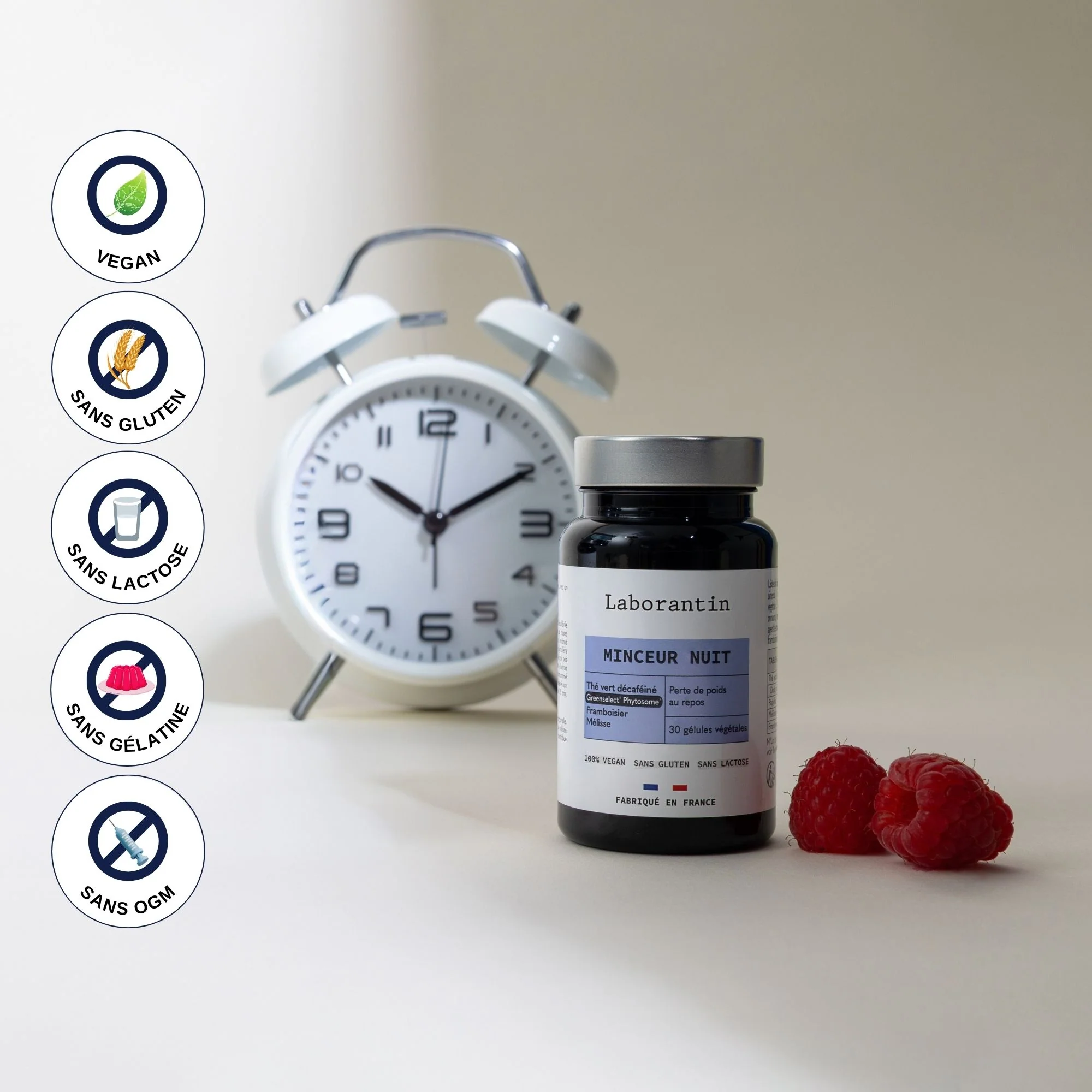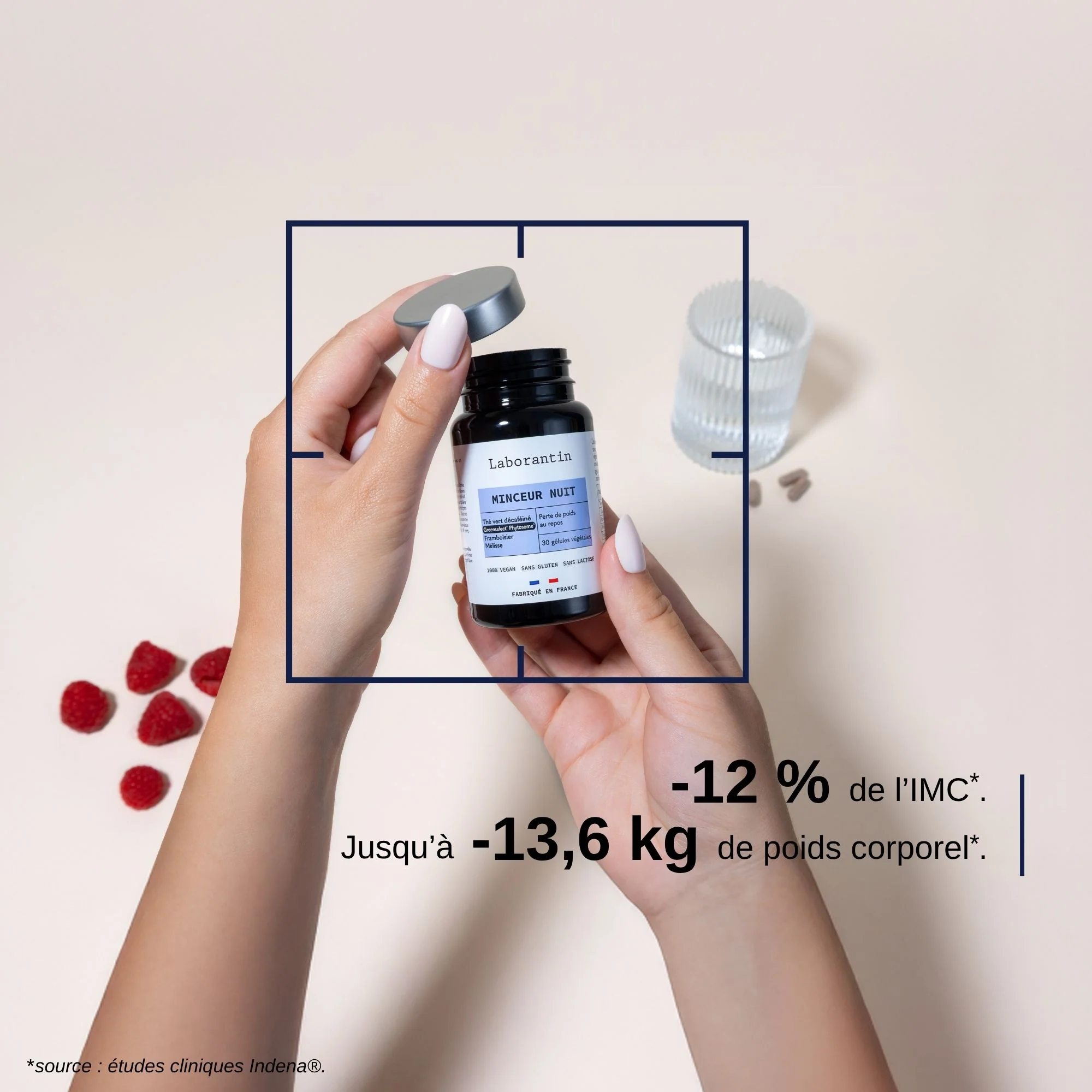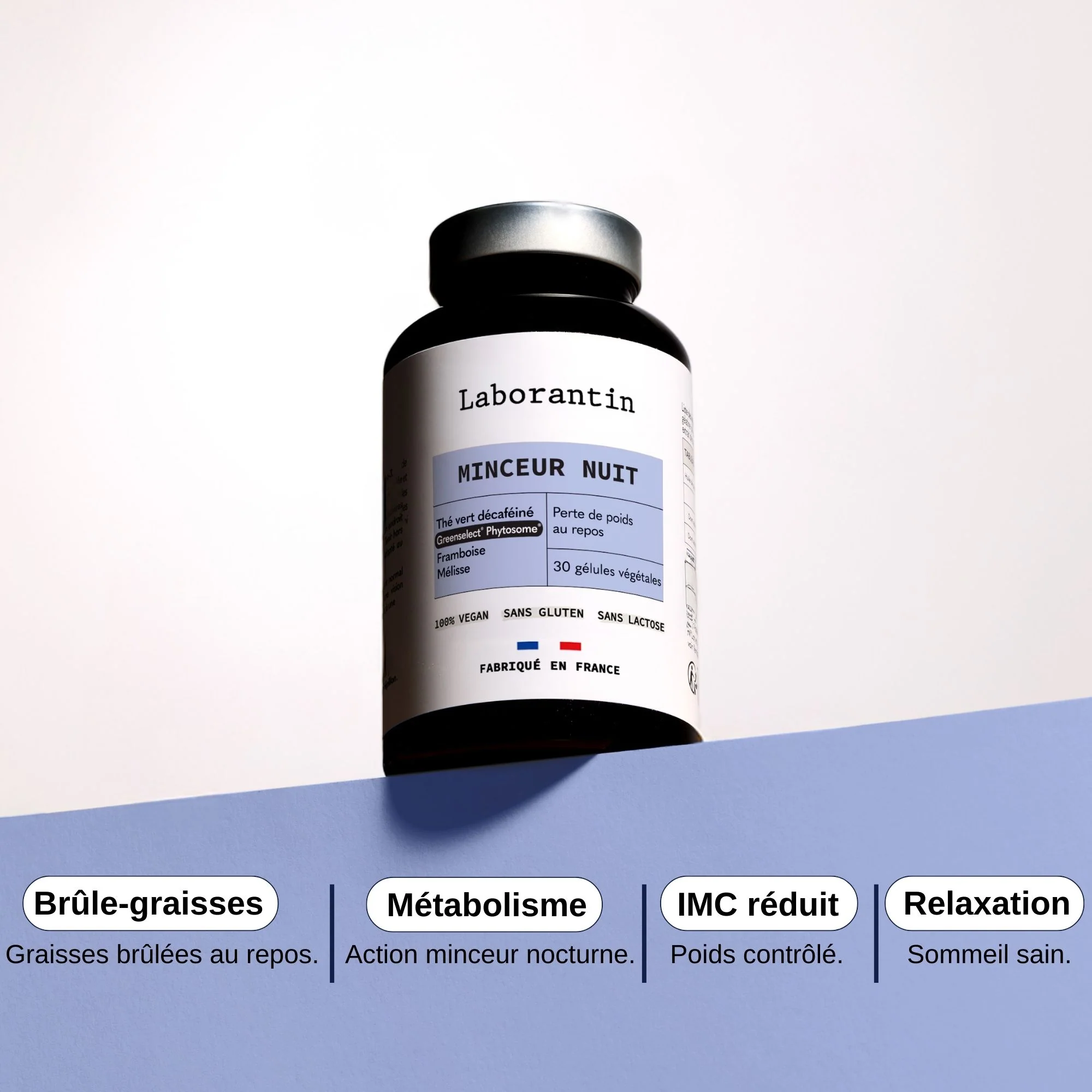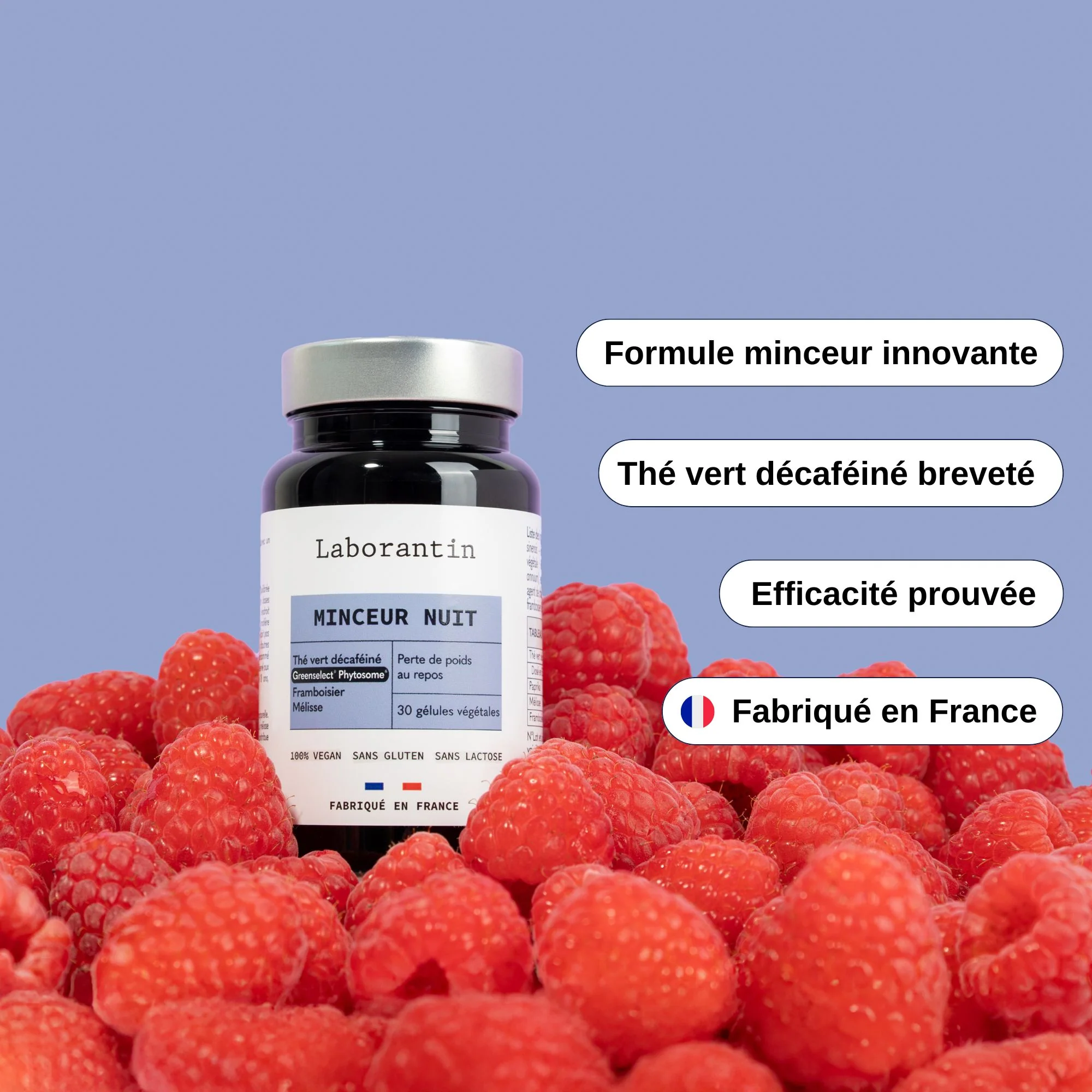 Fit Nuit associe la mélisse, la framboise, le paprika et l’extrait breveté de thé vert décaféiné Greenselect® Phytosome®, dans une formule pensée pour soutenir l’équilibre du corps durant la nuit. Cette synergie contribue à une silhouette plus harmonieuse et à une sensation de légèreté au réveil, tout en participant à une meilleure récupération.