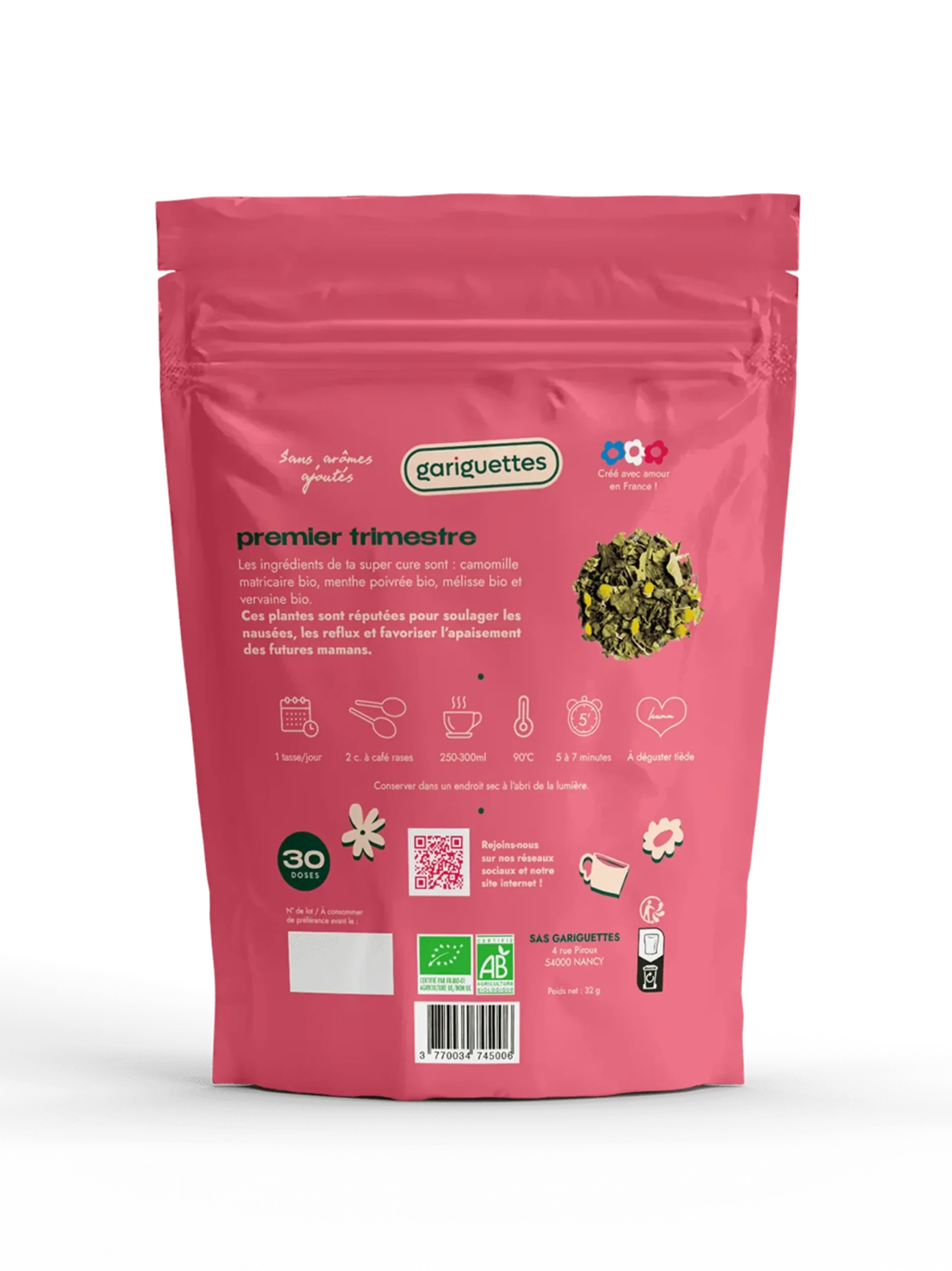 Notre tisane pour le premier trimestre de grossesse est conçue pour accompagner et soulager les femmes enceintes.