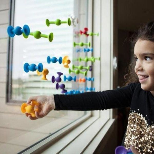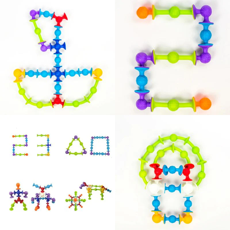 Fabriqué entièrement en silicone à 100%, sans danger pour les enfants. Le jouet à ventouses est polyvalent et ouvert . Il permet ainsi la création sans limite de tout objet de toutes formes possibles. La facilité de construction ne sera limitée que par l’imagination de votre enfant. Pièce par pièce, il peut construire son propre monde imaginaire.