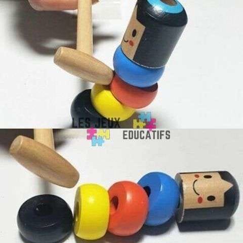 En plus d’amuser votre enfant, ce jouet japonais va jouer un important rôle dans les capacités de précisons de votre enfant. C’est simple, pour abattre le petit bonhomme en bois, l’enfant va essayer de frapper au bon moment et au bon endroit. Il acquiert ainsi, avec ce jouet enfant, un sens de précision beaucoup plus développé.