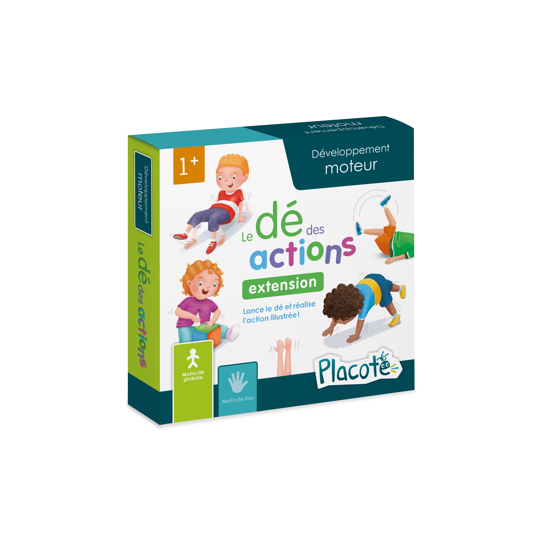Le dé des actions est conçu pour aider les enfants de 1 à 6 ans à développer leurs compétences motrices. Cette extension du jeu Le dé des premiers mots offre 60 nouvelles cartes-images réparties en 4 niveaux qui peuvent être insérées dans les pochettes du dé. Les illustrations représentent des actions à effectuer pour stimuler le développement d’habiletés motrices (ex. : ramper, s’accroupir, se tenir en équilibre, sauter). Le jeu contribue ainsi à l’acquisition de compétences fondamentales pour le développement de la motricité globale de l’enfant.