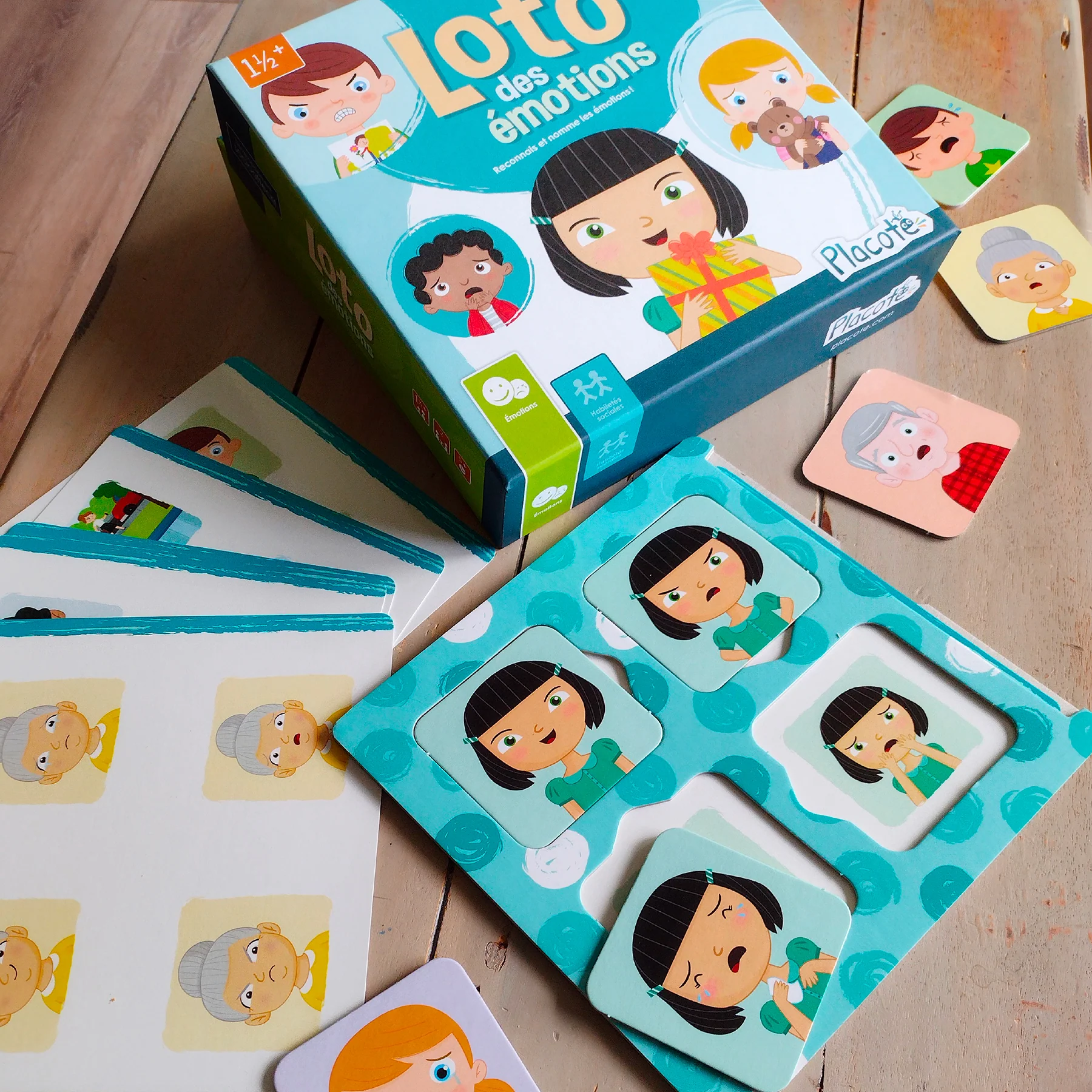 Loto des émotions est conçu pour aider les enfants de 1½ an à 4 ans à reconnaitre et à nommer des émotions. Il leur apprend aussi que tout le monde vit des émotions, que celles-ci ont différentes causes et qu’une même situation peut générer plusieurs émotions.