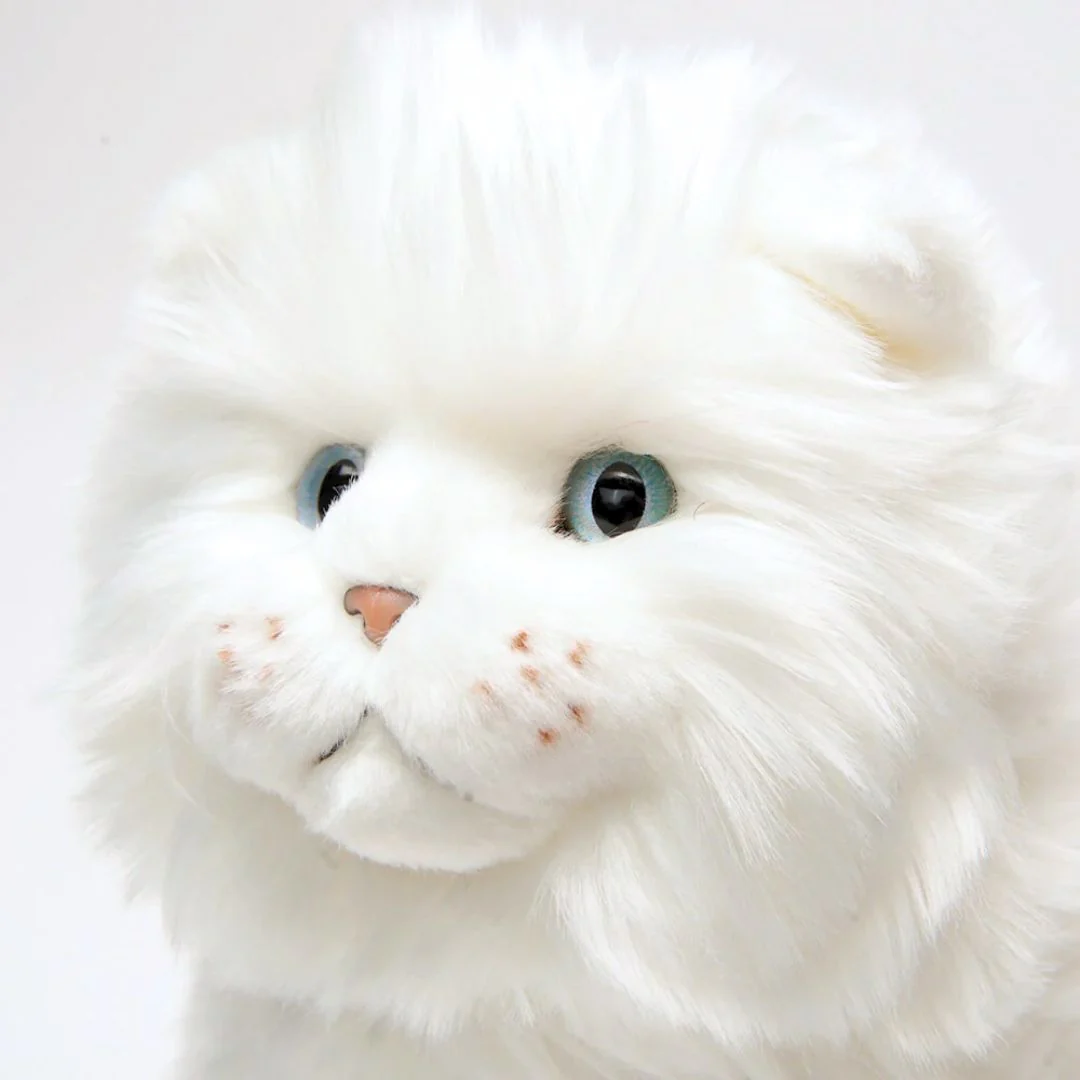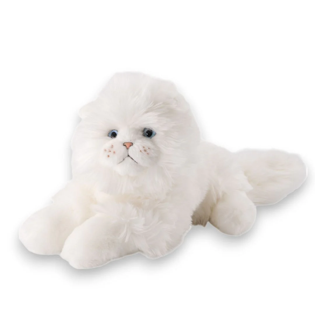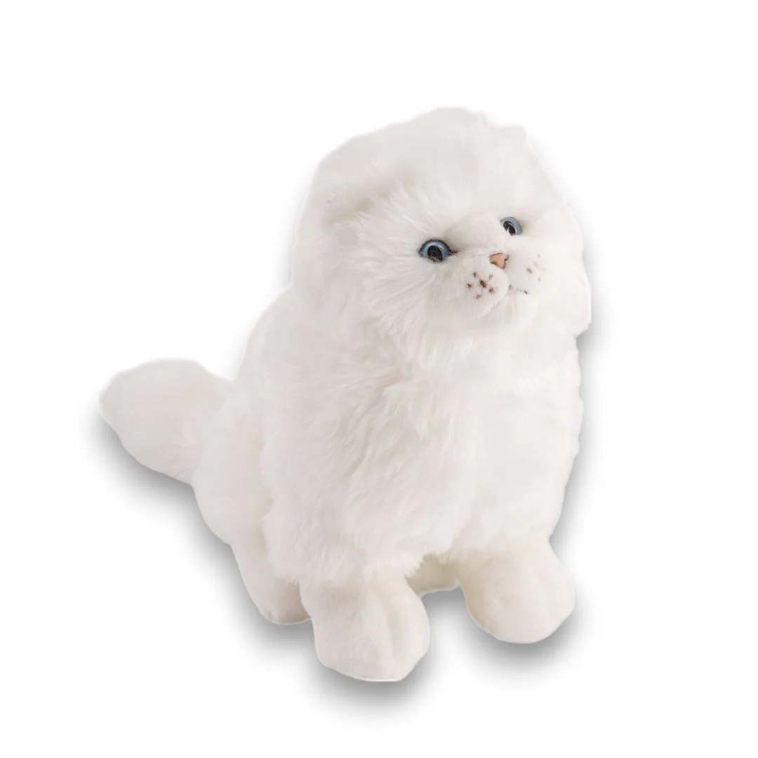 Je suis Oscar, le chat en peluche blanc de la Pelucherie, le souverain incontesté des câlins et l’aristocrate des ronrons.