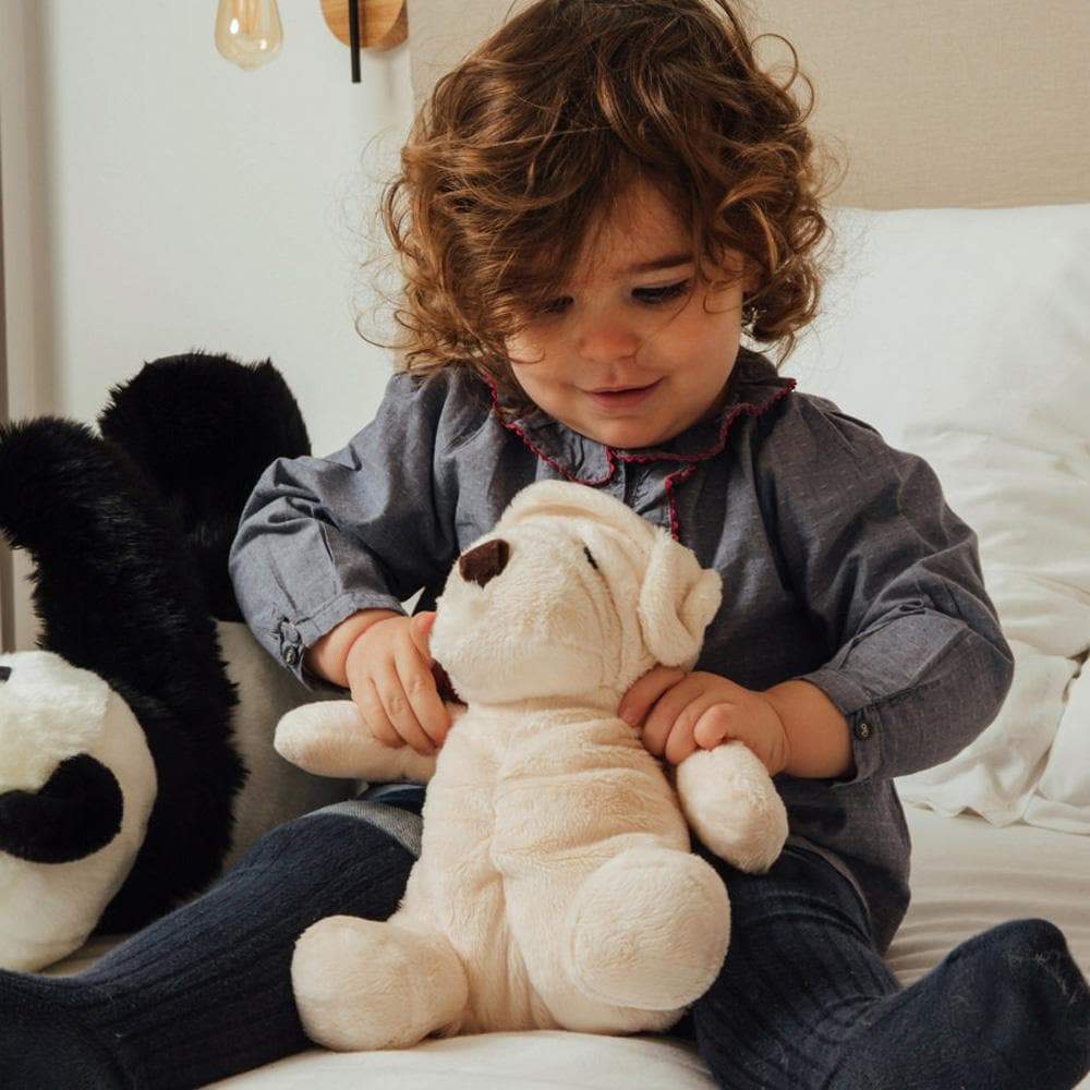 Je suis le chien en peluche Albert, le plus chou de tous les doudous ! Entièrement cousu à la main, j’ai été fabriqué avec amour par mes couturières italiennes, qui m’ont pensé dans les moindres détails. Mon poil hypoallergénique effet velour, les plis de mon front, mes oreilles repliées et mon petit museau feutré me donnent une apparence inimitable, et font de moi le parfait jouet en peluche pour les bébés !