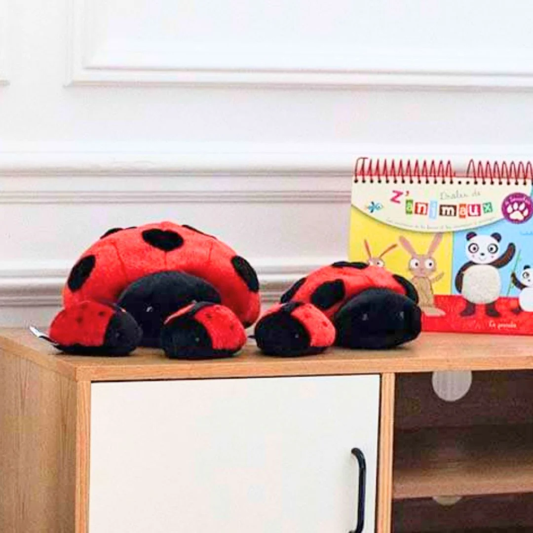 La peluche coccinelle que je suis viens également en plusieurs tailles selon vos besoins. En version mini, je peux me glisser partout et vous accompagner pour vous porter chance au quotidien. Mais si vous préférez un animal en peluche pour décorer une chambre ou une salle de jeu, mes versions taille moyenne et grande taille seront parfaites !