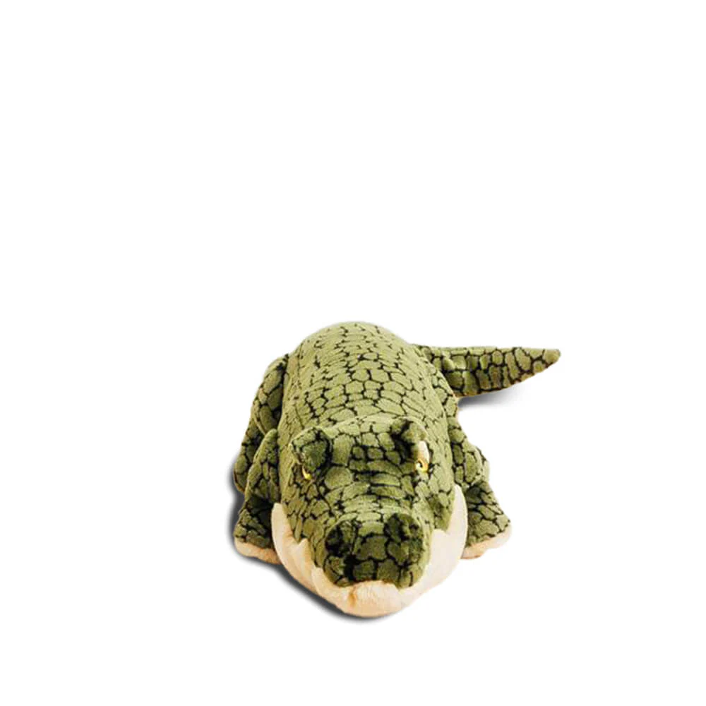 Salut, moi c’est Balthazar, la plus belle des peluches crocodiles ! Grâce à mes couturières travaillant à la main les tissus de meilleure qualité, j’ai un regard doré et perçant souligné par mes paupières proéminentes en cuir, ma ligne de dents finement tracée et mon pelage doux et soyeux imite fidèlement les écailles d’un vrai crocodile. On me croirait tout droit sorti de la jungle ou de la savane !