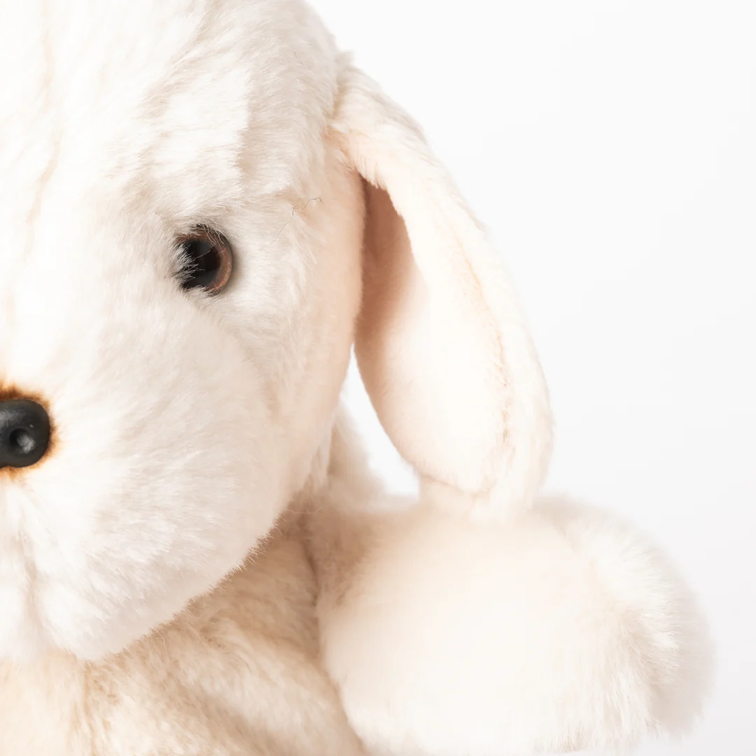 Je suis Marius, le chien labrador en peluche de tous les amoureux des canidés ! Mes couturières italiennes m’ont donné une apparence très réaliste. Mon regard doux et mon petit museau dessiné en crayon te donnerons des étoiles dans les yeux. Je suis fidèle et coquin et je serai toujours là pour toi.