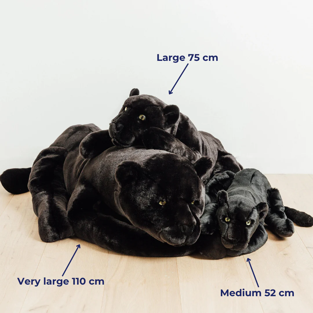 En petit, moyen, grand ou géant, il a fallu plusieurs heures de travail pour me donner vie. Mon pelage noir, mes nombreux points de couture me donnent toute mon expression et mon museau feutré font de moi une peluche intemporelle qui t’accompagnera des années !