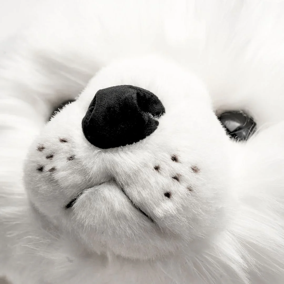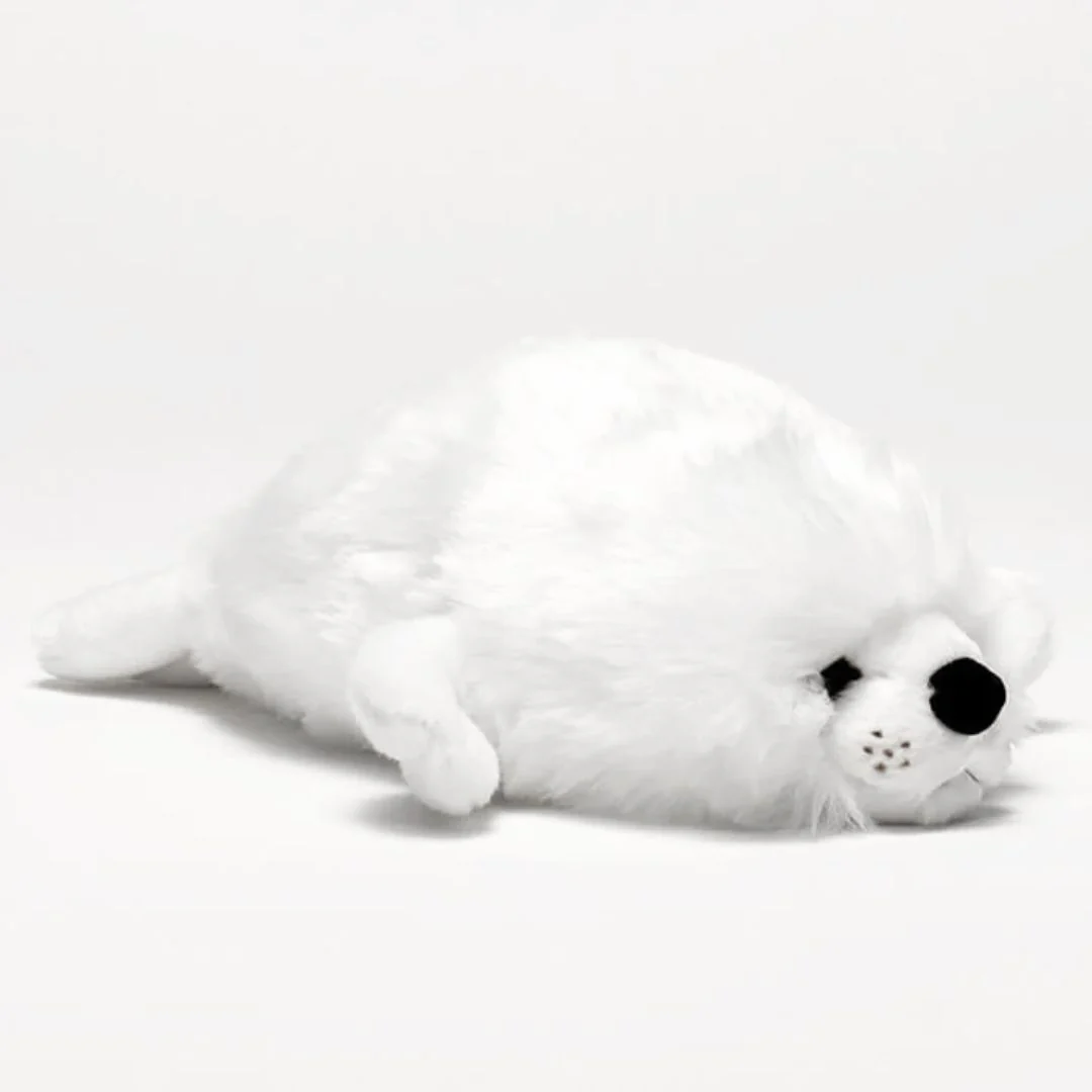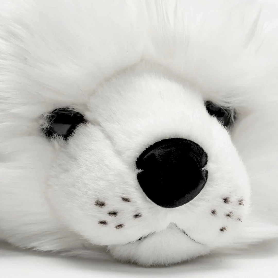 Je suis Arsène, l’adorable phoque en peluche ! Fruit du labeur minutieux de mes couturières italiennes, je saurais te faire fondre avec mon poil blanc et soyeux, mes moustaches joliment dessinées, mon regard expressif et tendre et mon beau museau en feutrine. Optimisé pour les câlins, j’ai la forme parfaite pour me blottir contre toi, alliant mollesse et douceur. Bref, je suis le compagnon idéal pour les tout petits et un doudou parfait pour des moments de tendresse inoubliables.