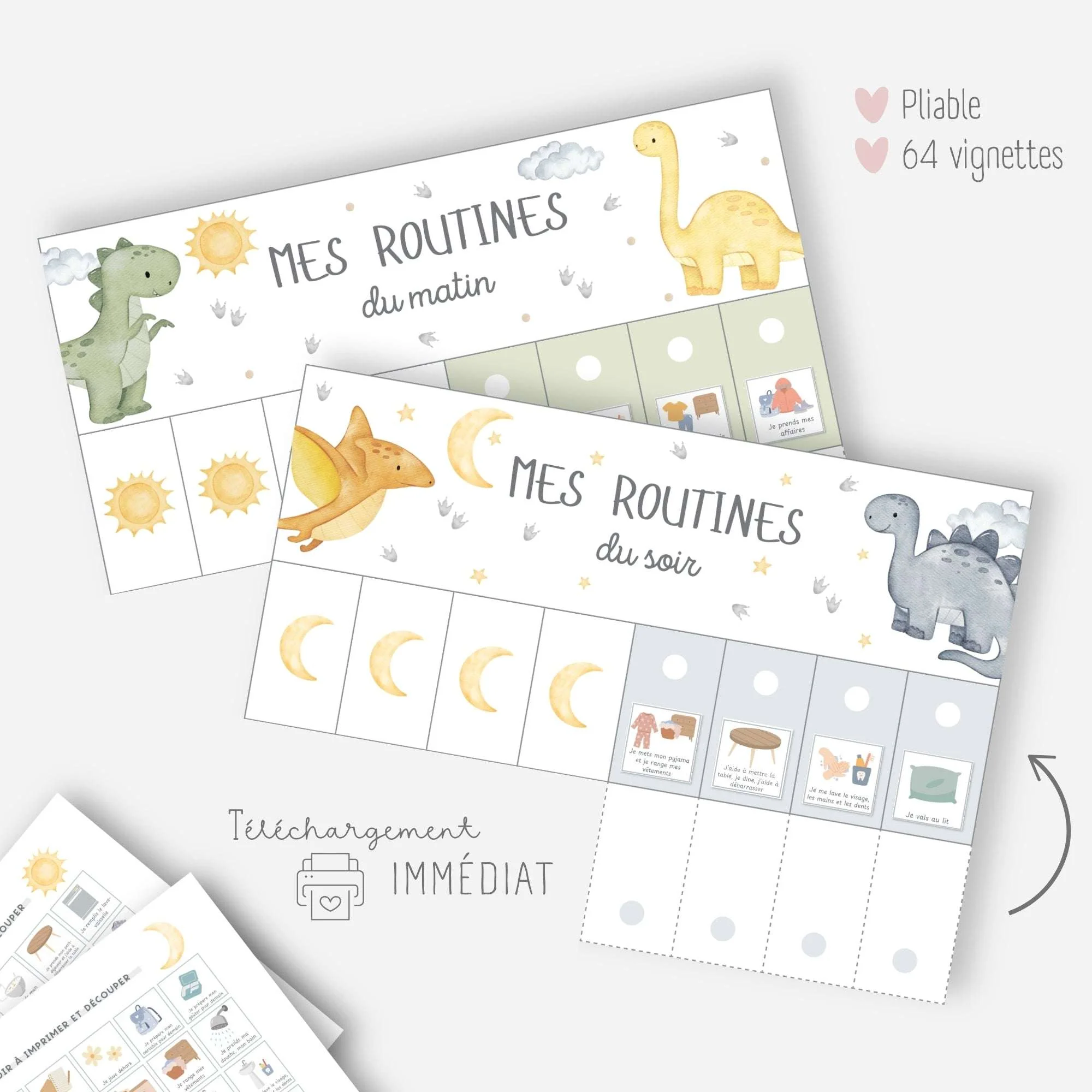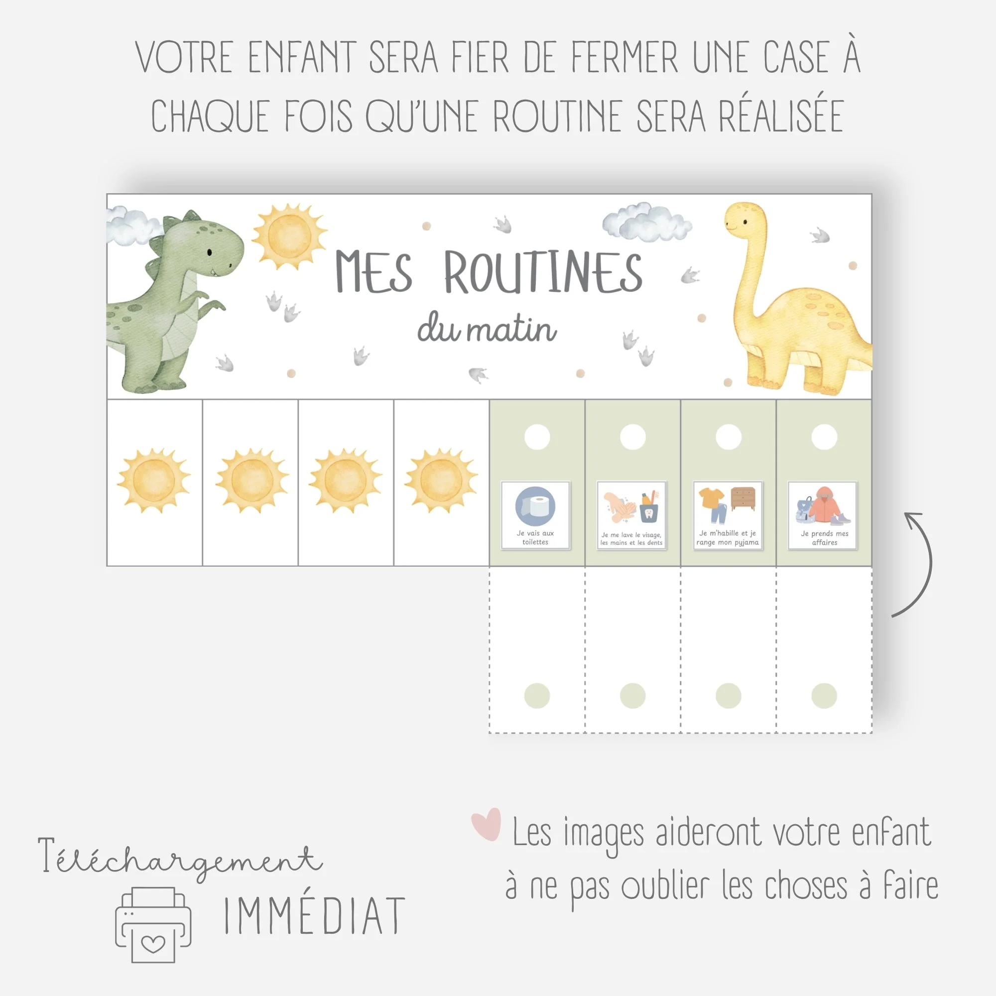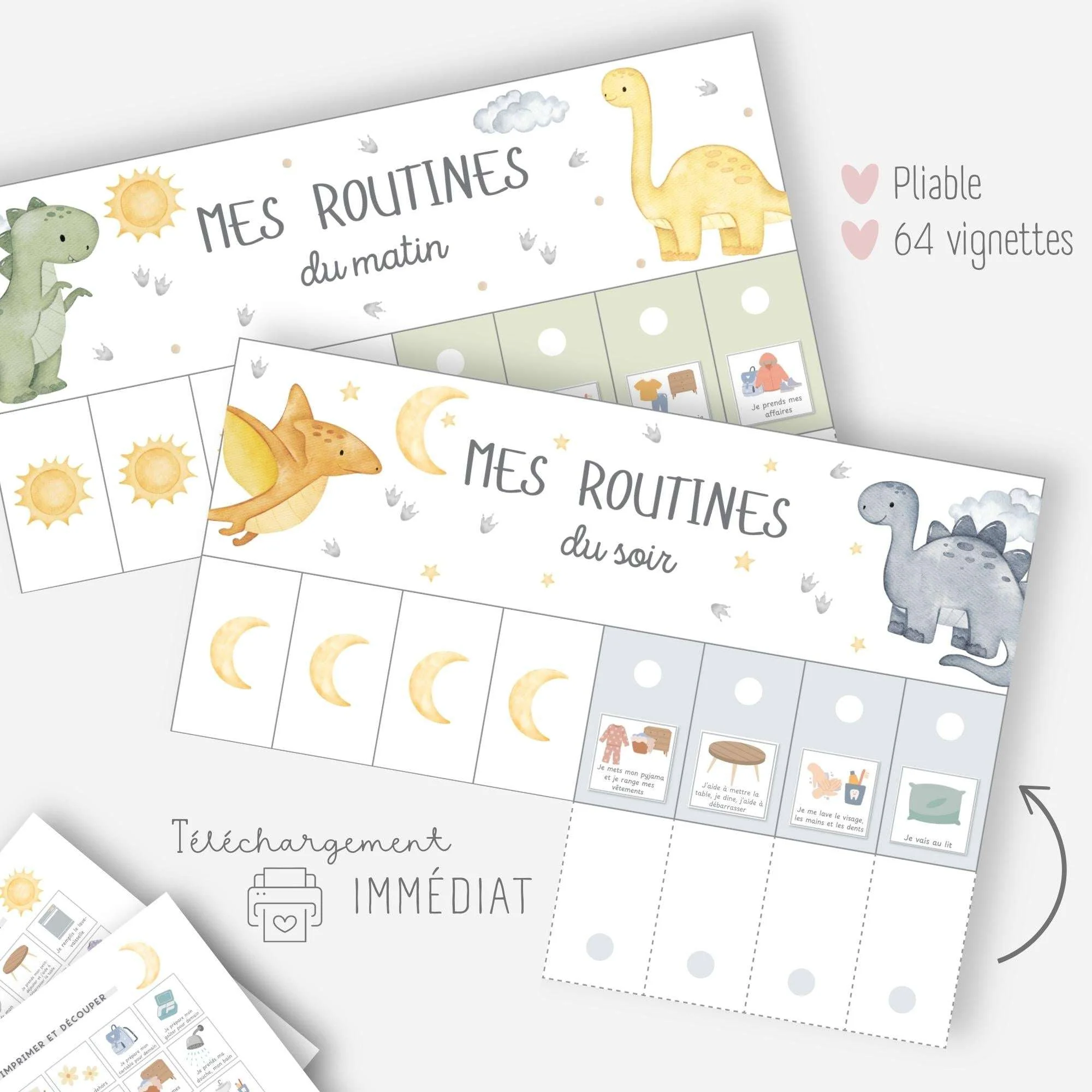 Ces tableaux de routines sur le thème des dinosaures vont permettre à votre enfant de gagner en autonomie dans les gestes du quotidien.
