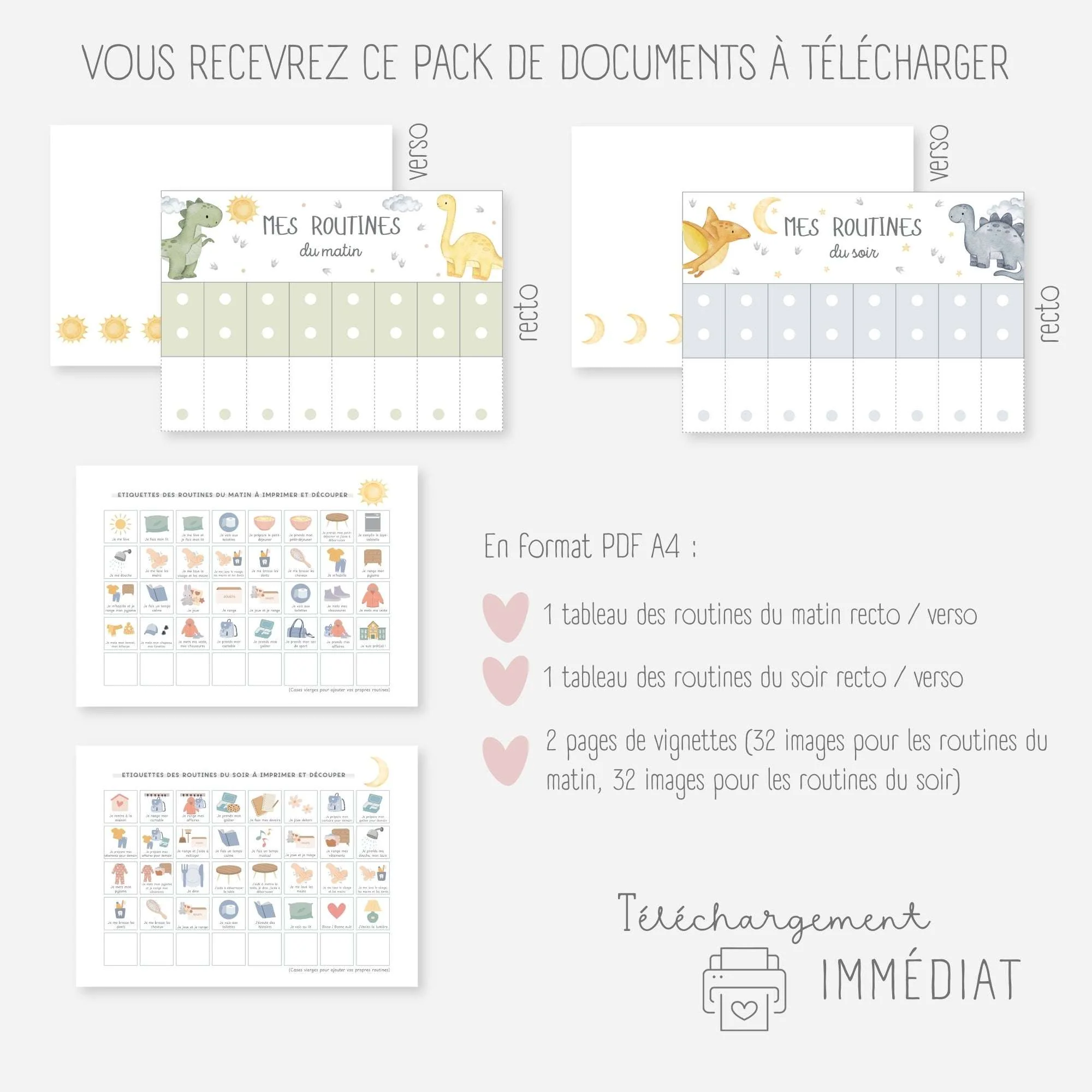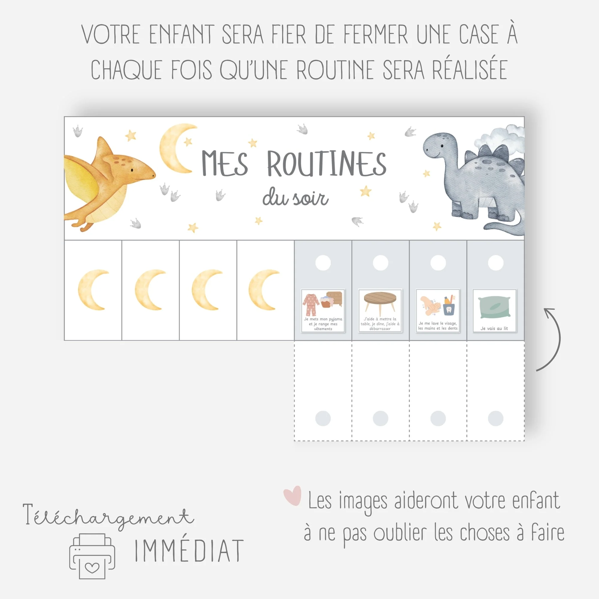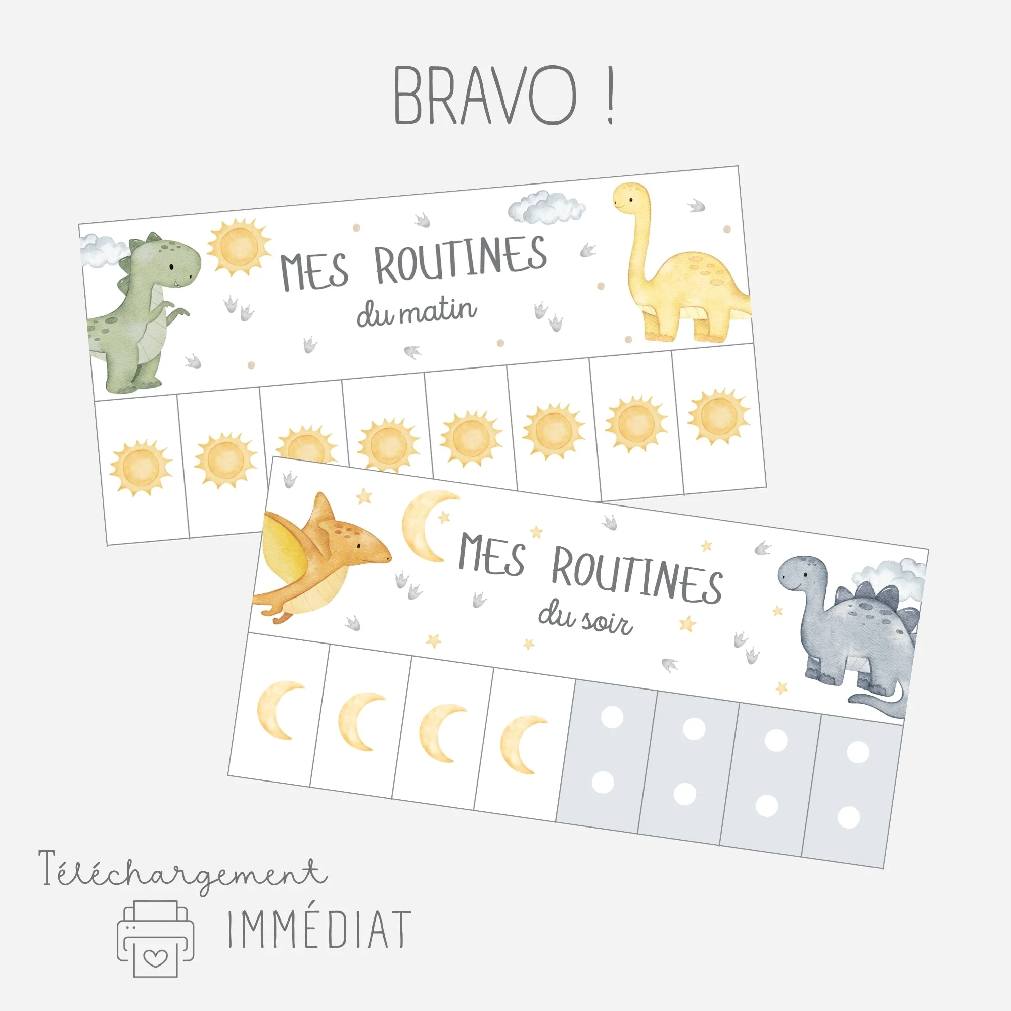 Ces tableaux de routines sur le thème des dinosaures vont permettre à votre enfant de gagner en autonomie dans les gestes du quotidien.