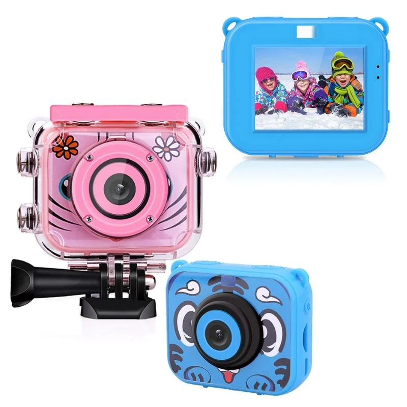 Mini caméra enfant à utiliser comme une GoPro avec un étuis de protection et étanche sous l’eau.