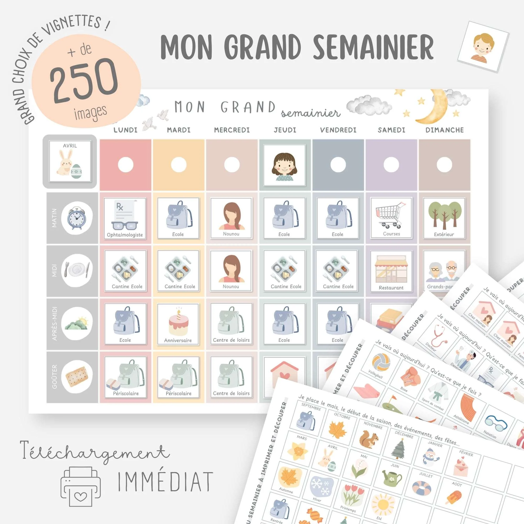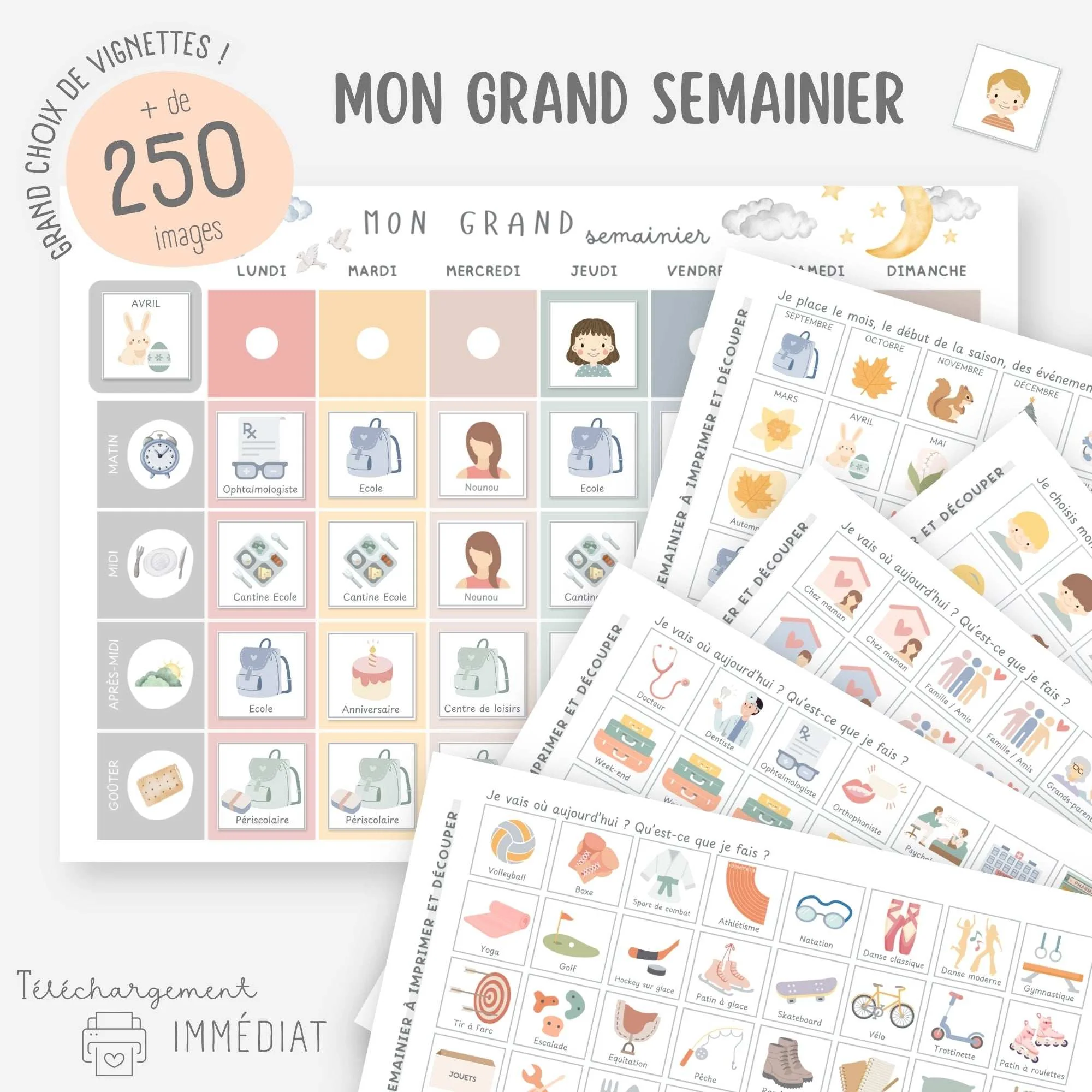 Avec ce semainier, aidez votre enfant à se préparer au déroulement de chaque journée et à se repérer dans la semaine.