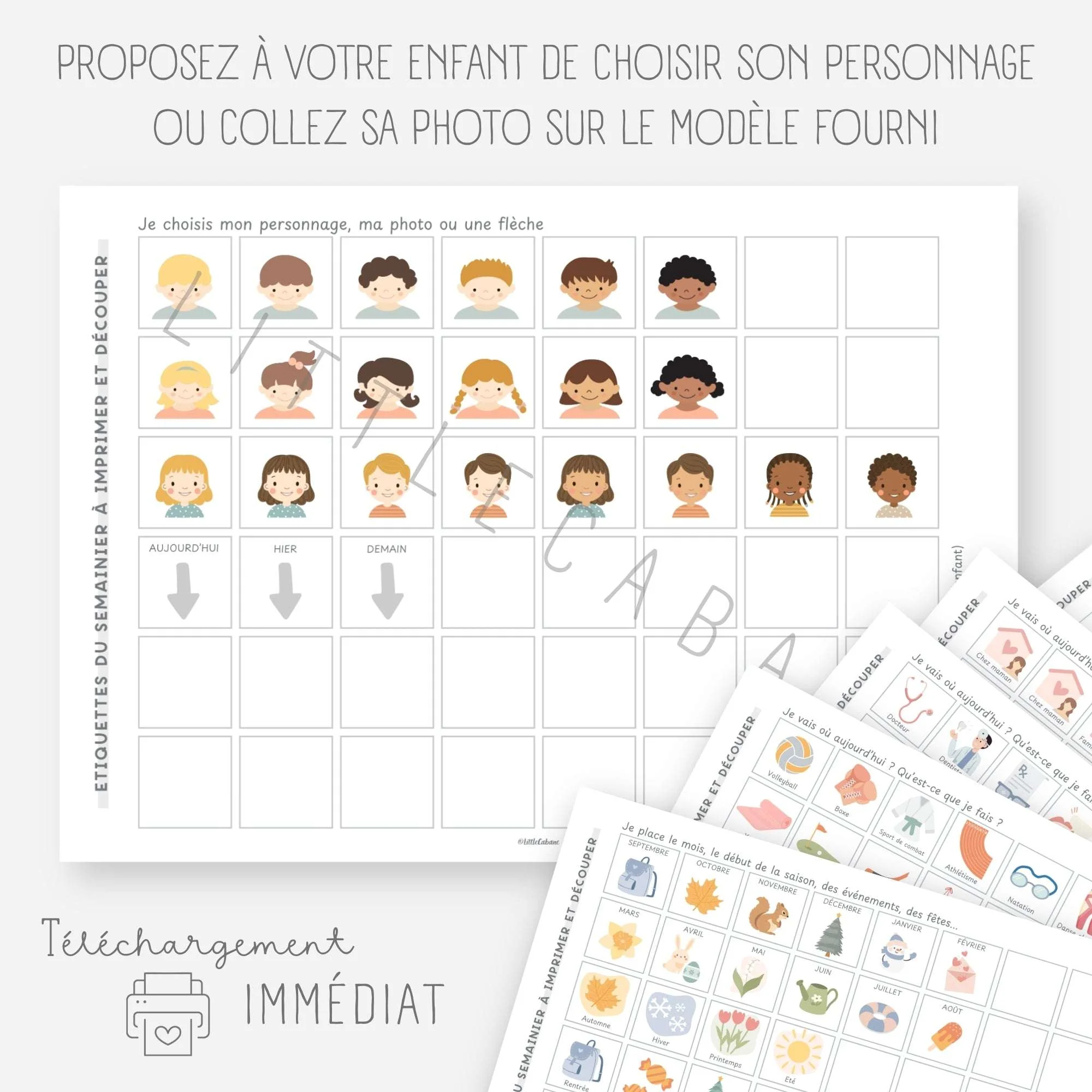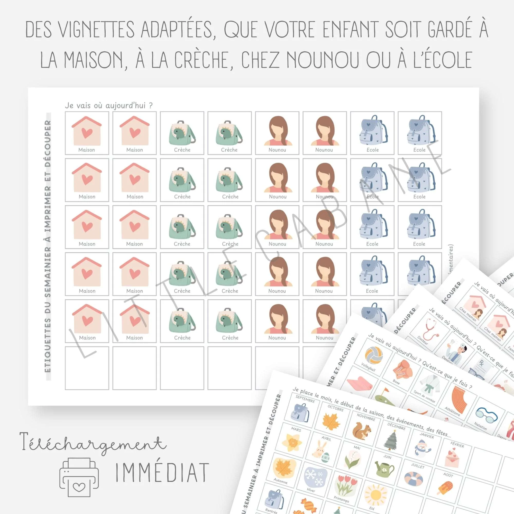 Chaque matin, votre enfant déplacera son personnage sur le tableau. Il verra où il passera sa journée (crèche, école, maison…) et qui viendra le chercher. Il sera confiant et rassuré !