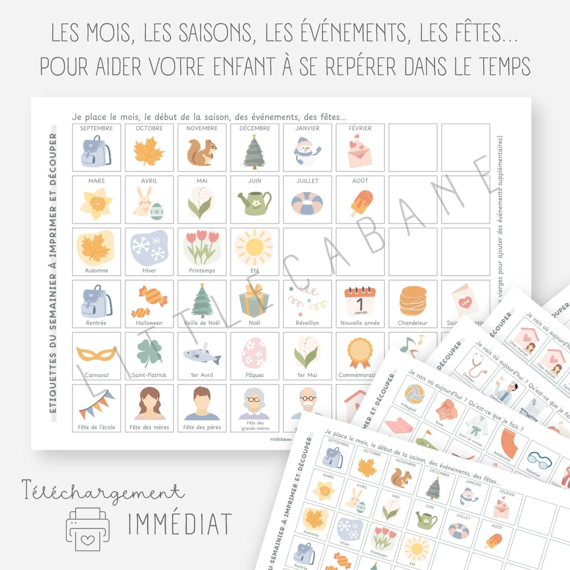 Avec ce semainier, aidez votre enfant à se préparer au déroulement de chaque journée et à se repérer dans la semaine.Chaque matin, votre enfant déplacera son personnage sur le tableau. Il verra où il passera sa journée (crèche, école, maison…) et qui viendra le chercher. Il sera confiant et rassuré ! Inclus : + de […]